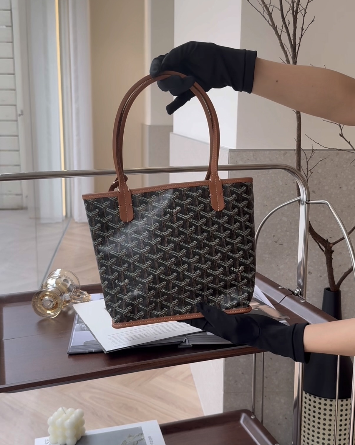 【GOYARD】ANJOU 迷你托特包 黑棕色