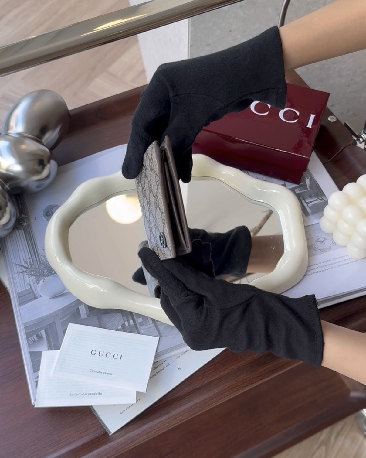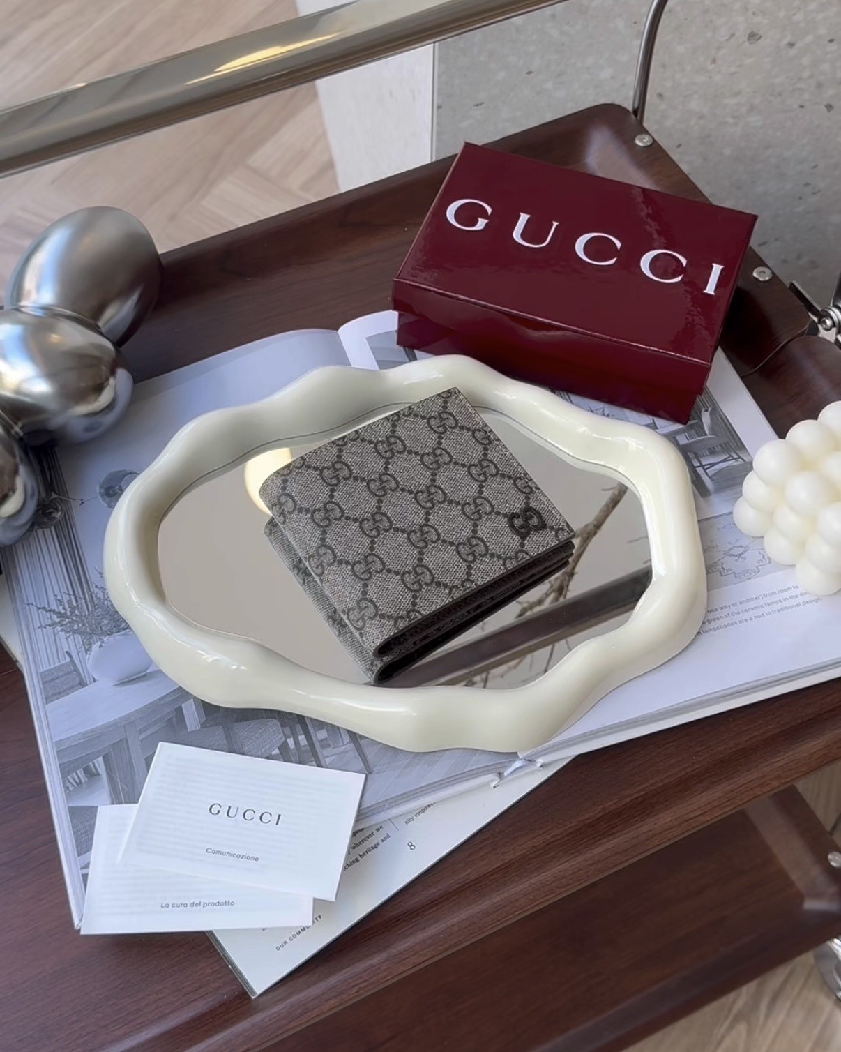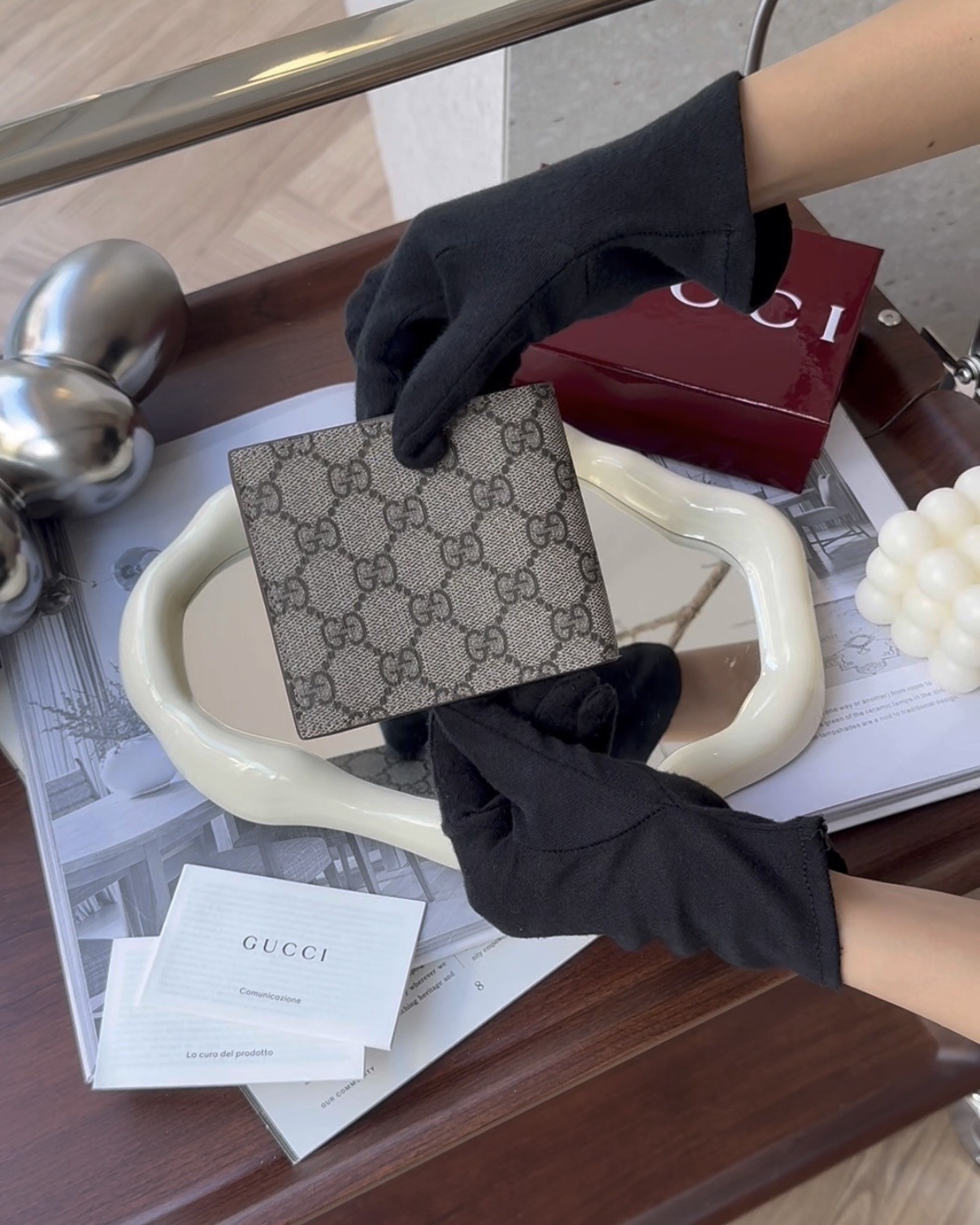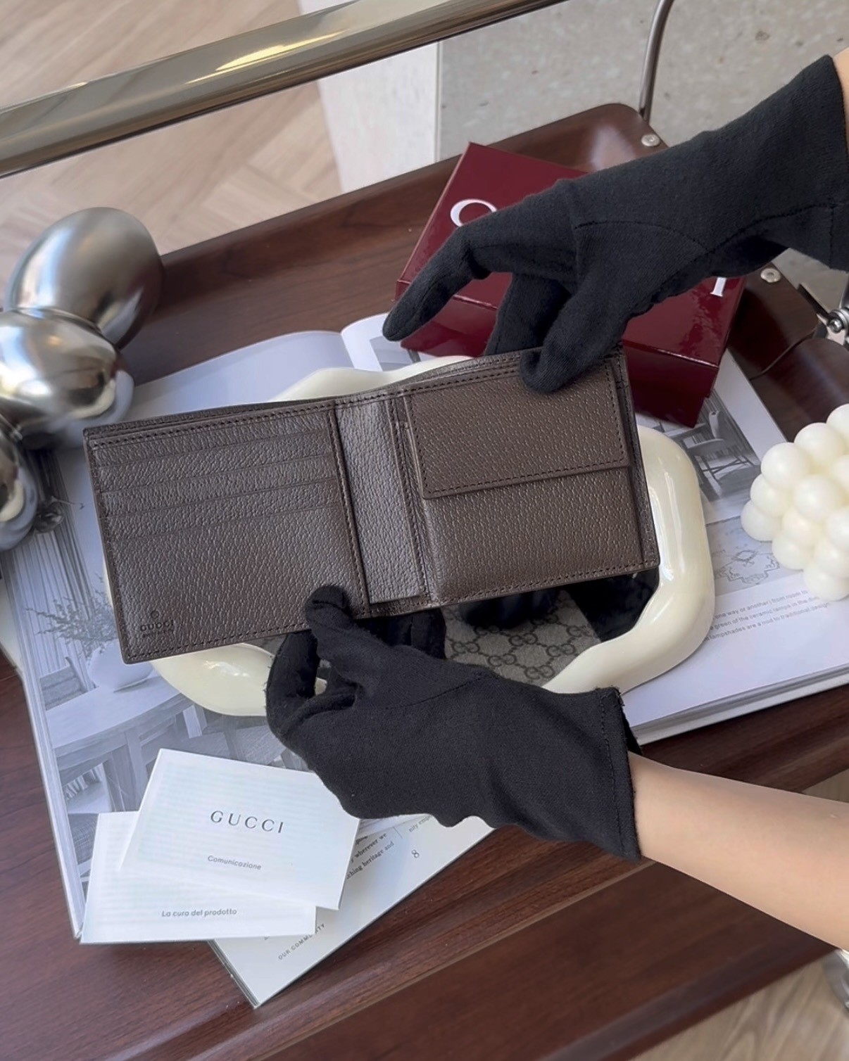 【GUCCI】GG 經典內零錢袋雙折短夾 棕色老花
