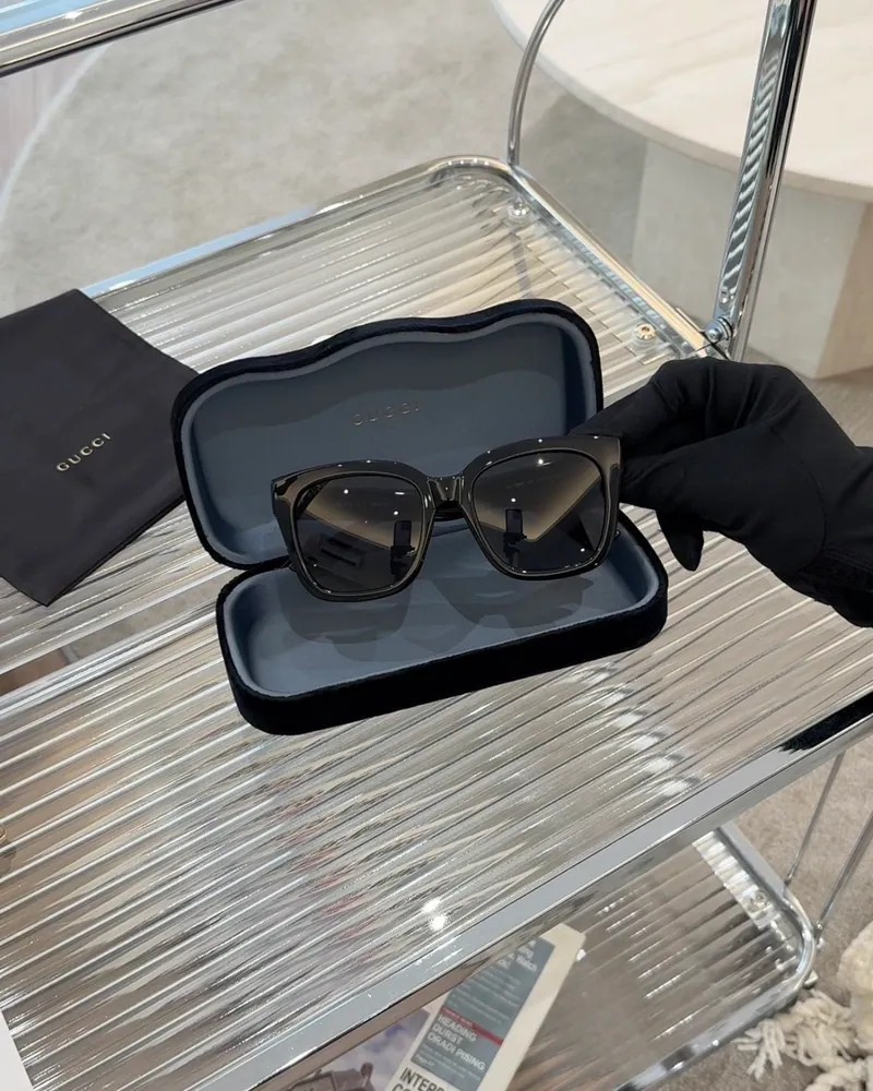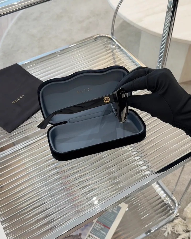 【GUCCI】GG LOGO金扣墨鏡 黑色