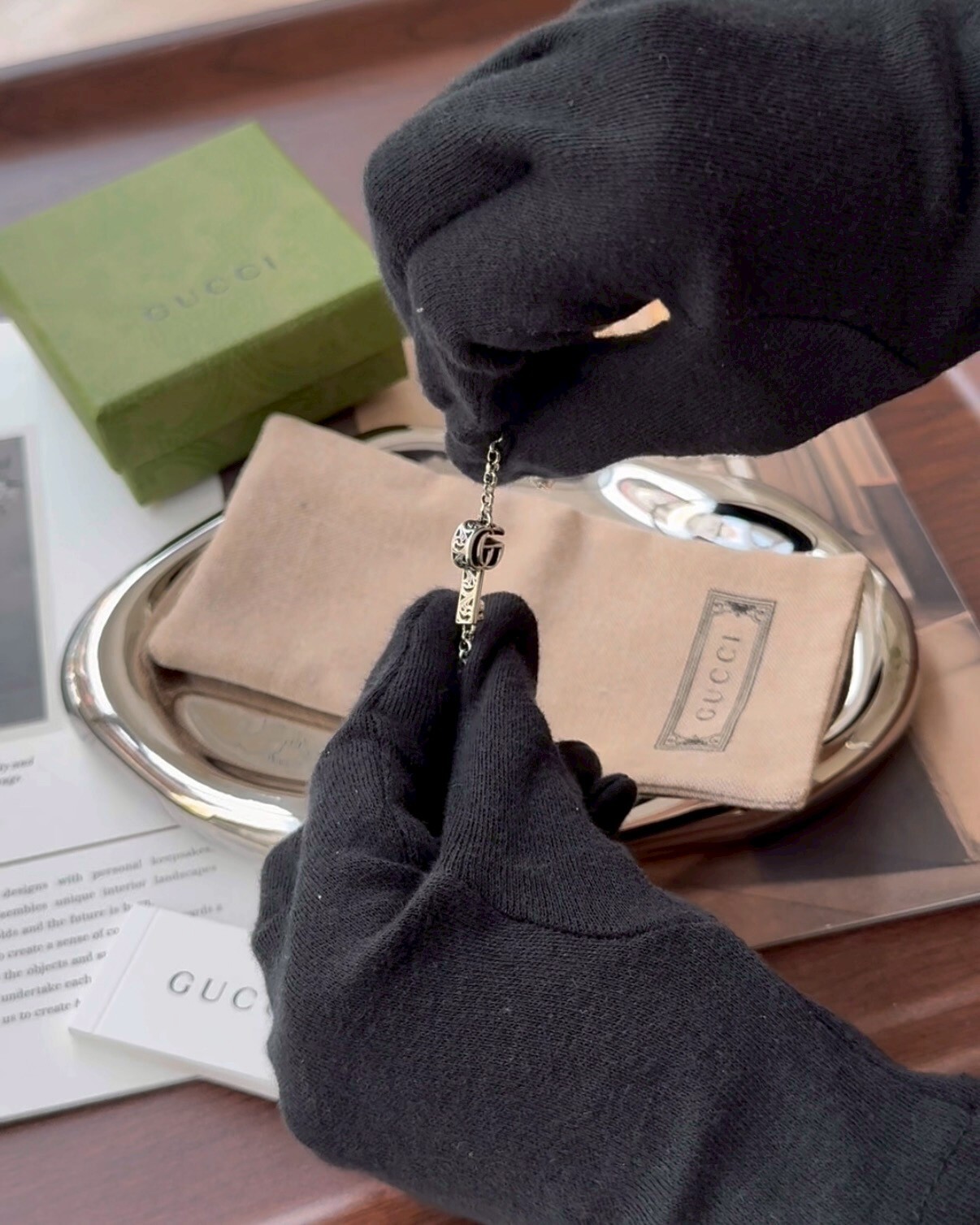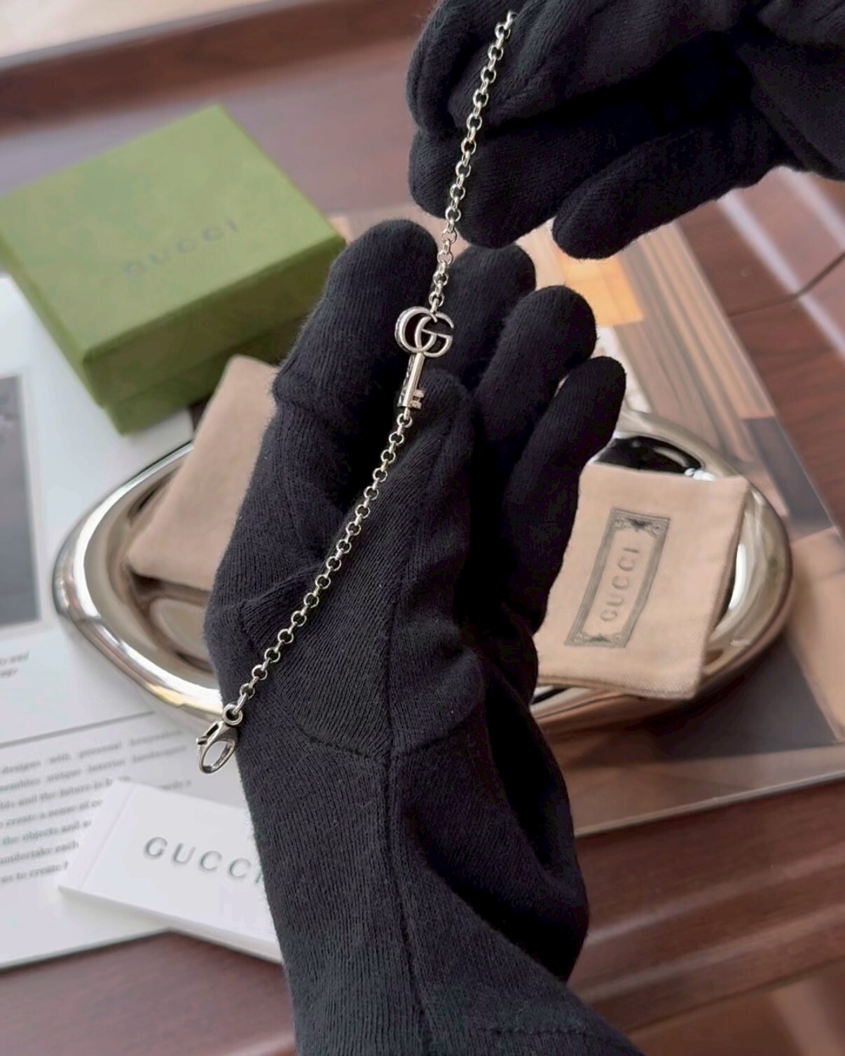 【GUCCI】GG MARMONT G鑰匙吊墜手鍊 銀色
