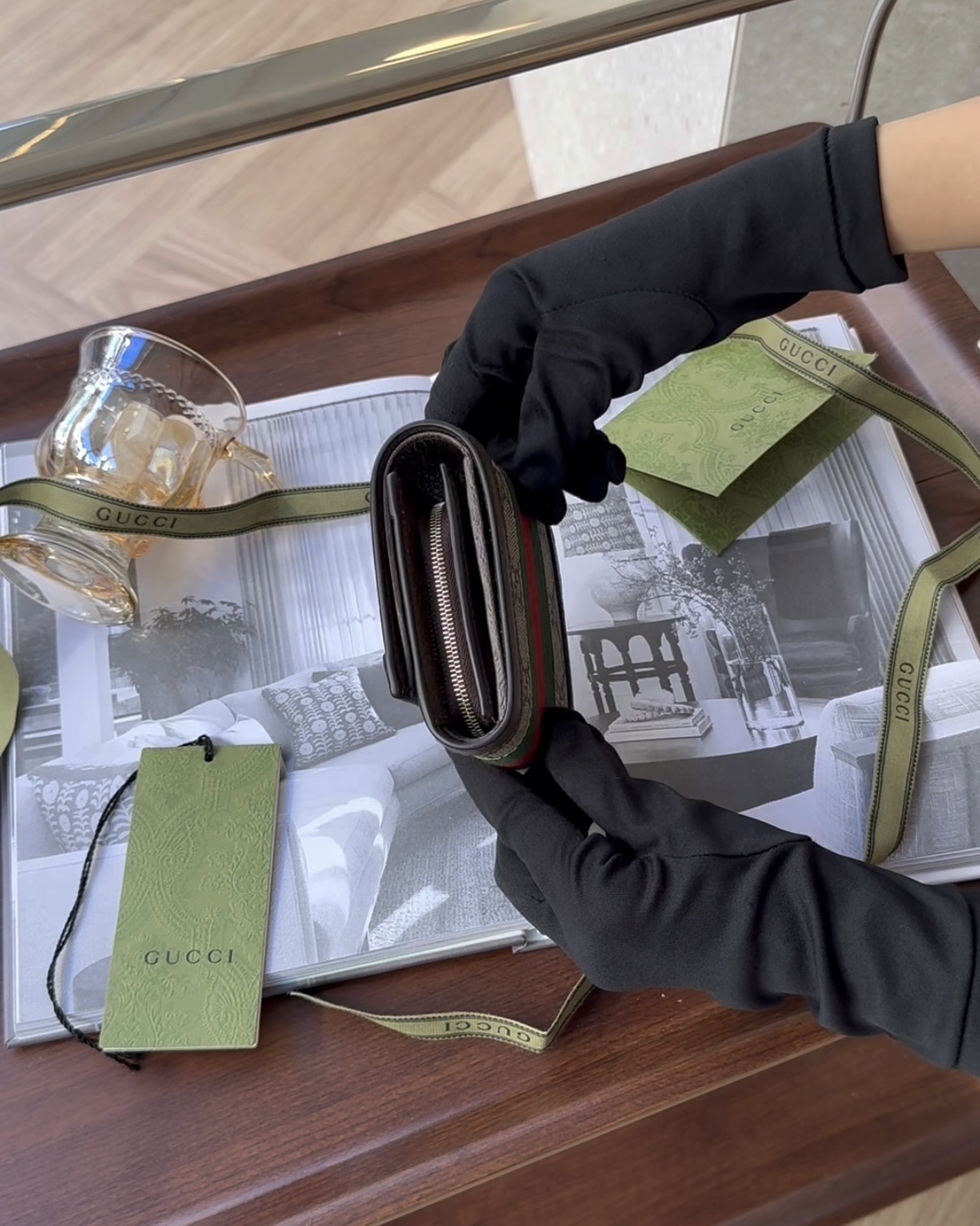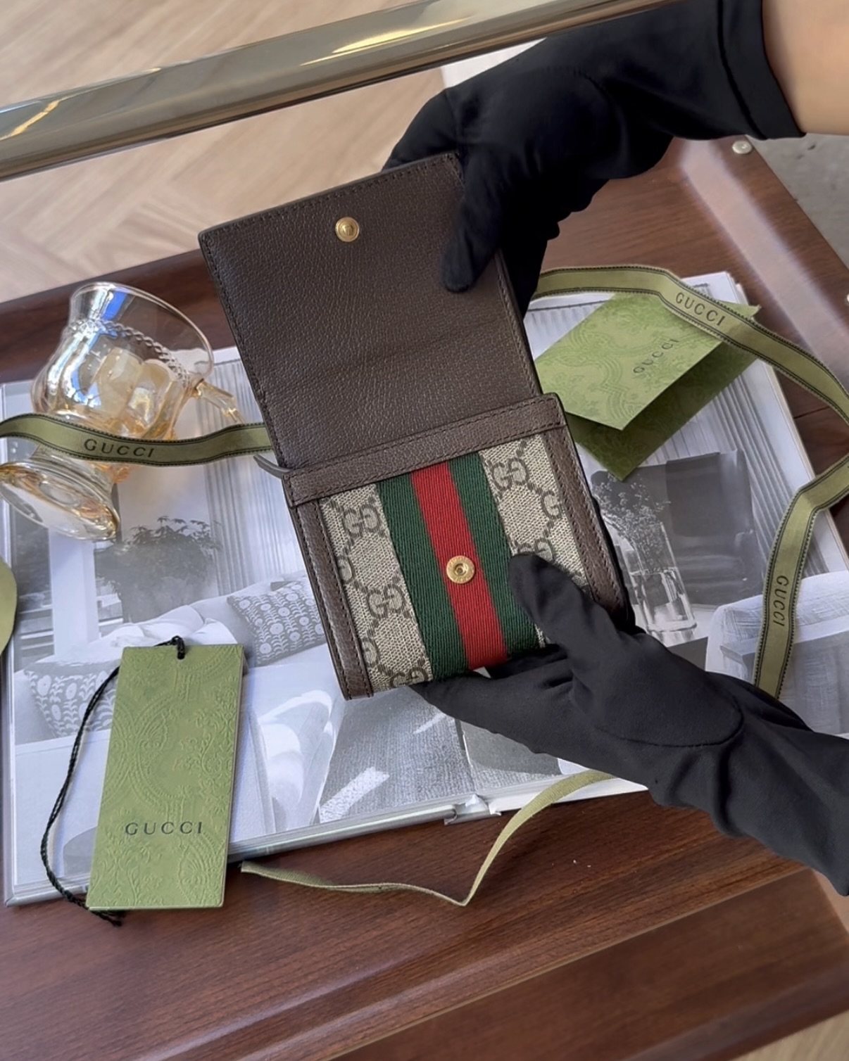 【GUCCI】GG OPHIDIA 翻蓋短夾 老花