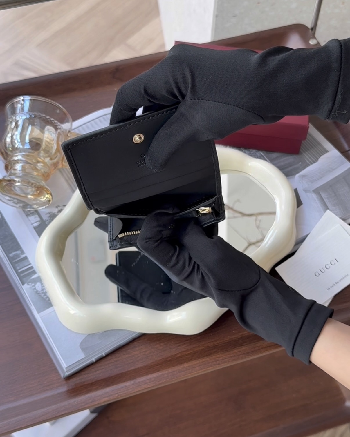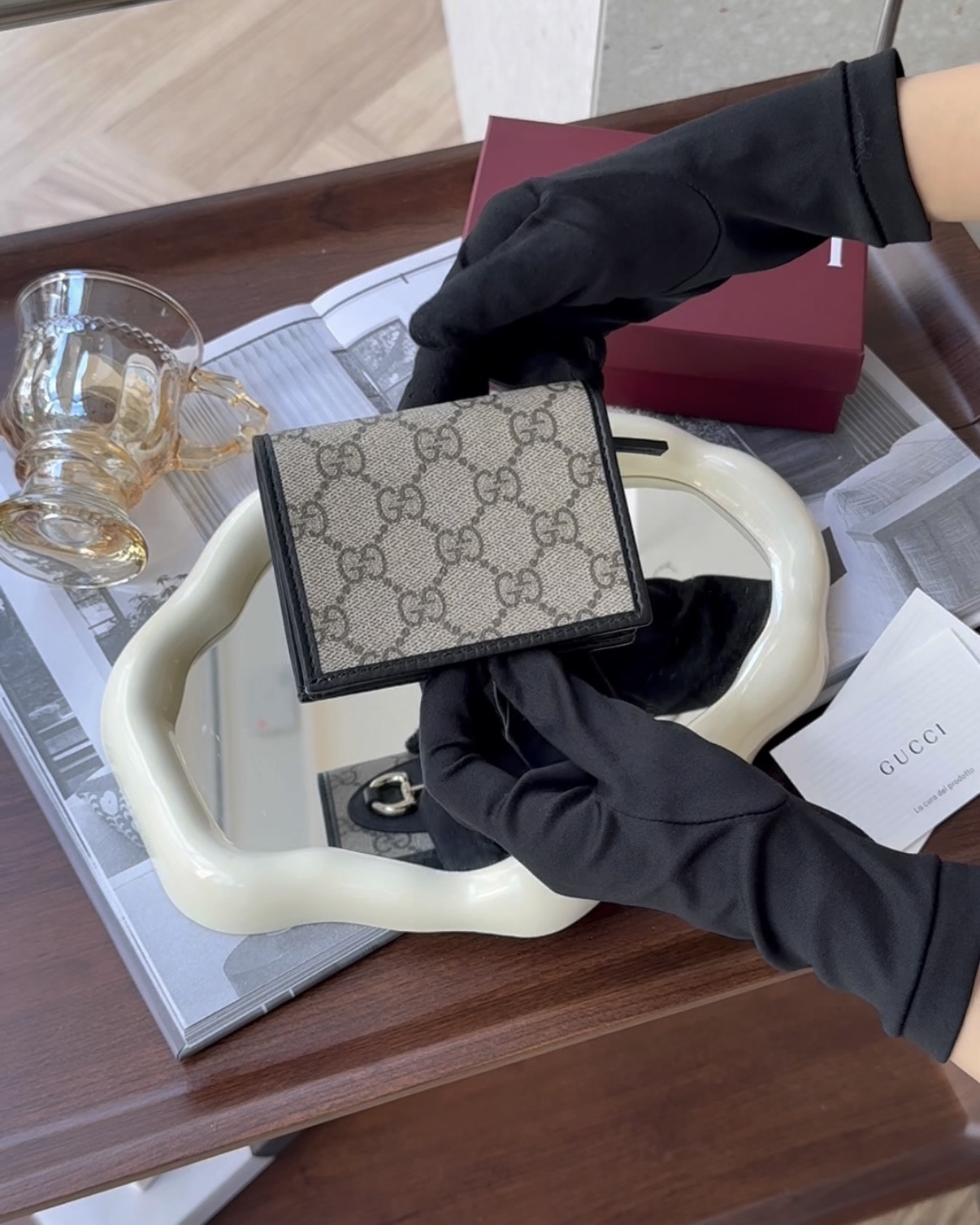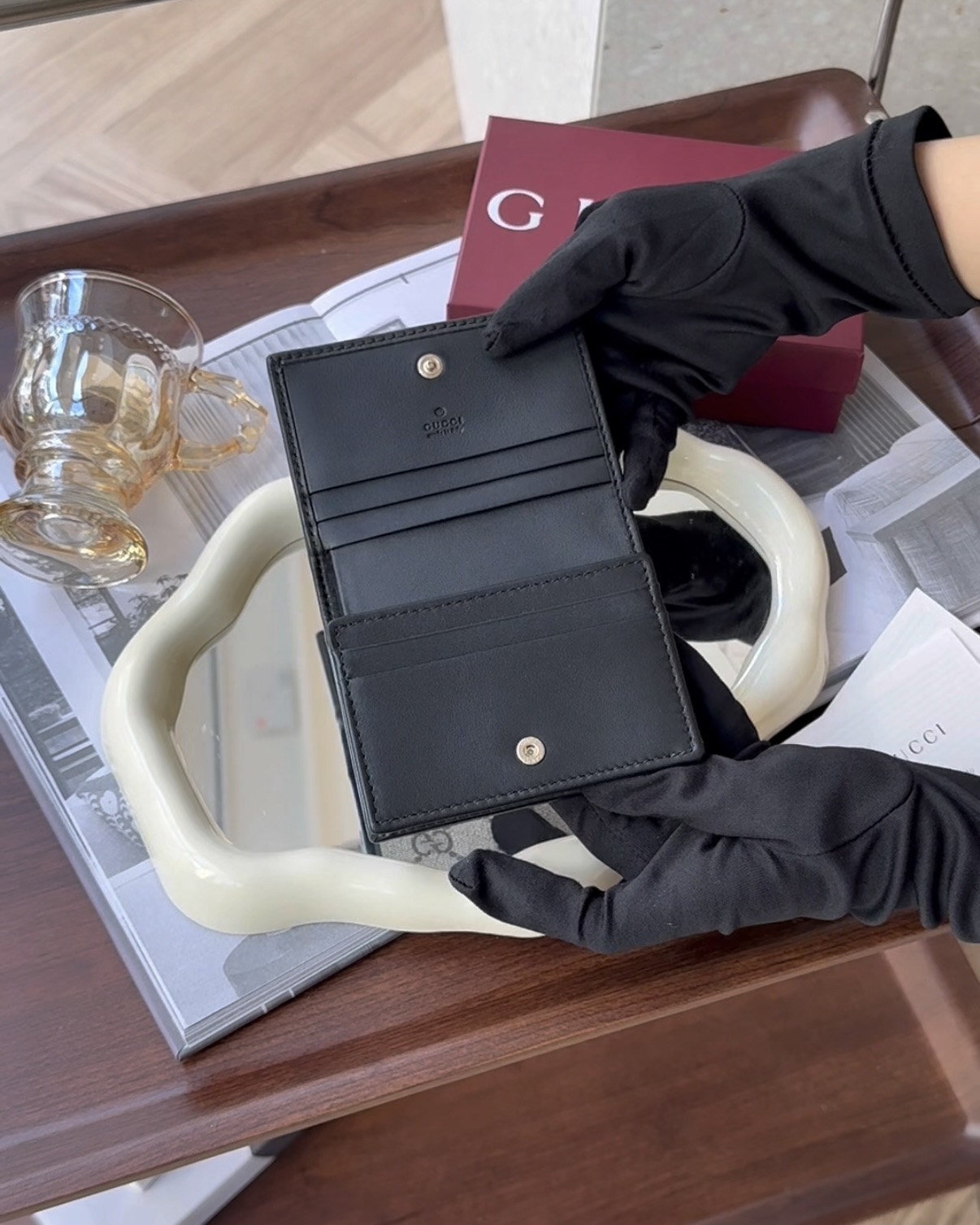 【GUCCI】HORSEBIT 1955 對開短夾 黑色老花