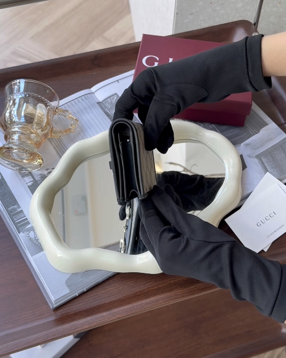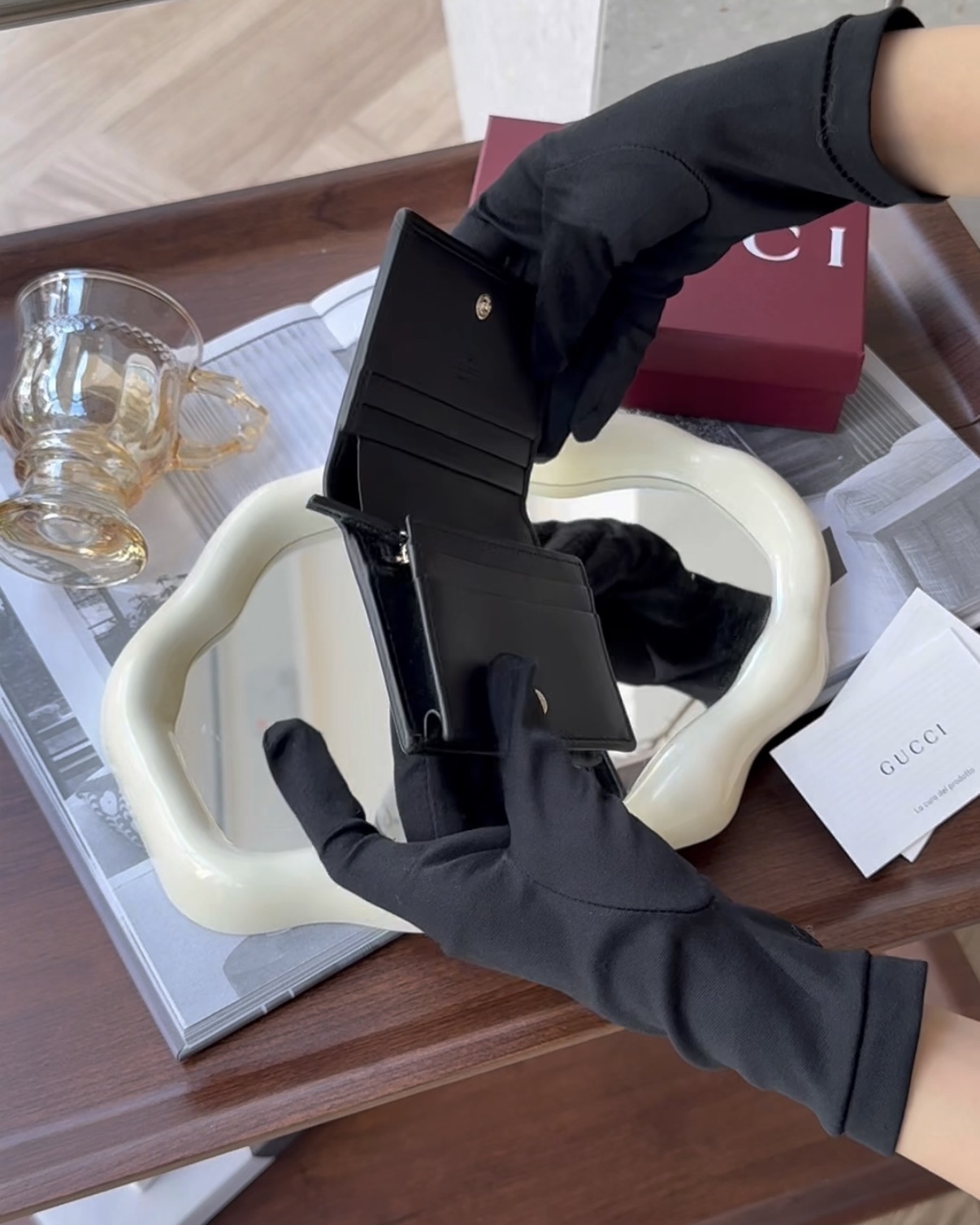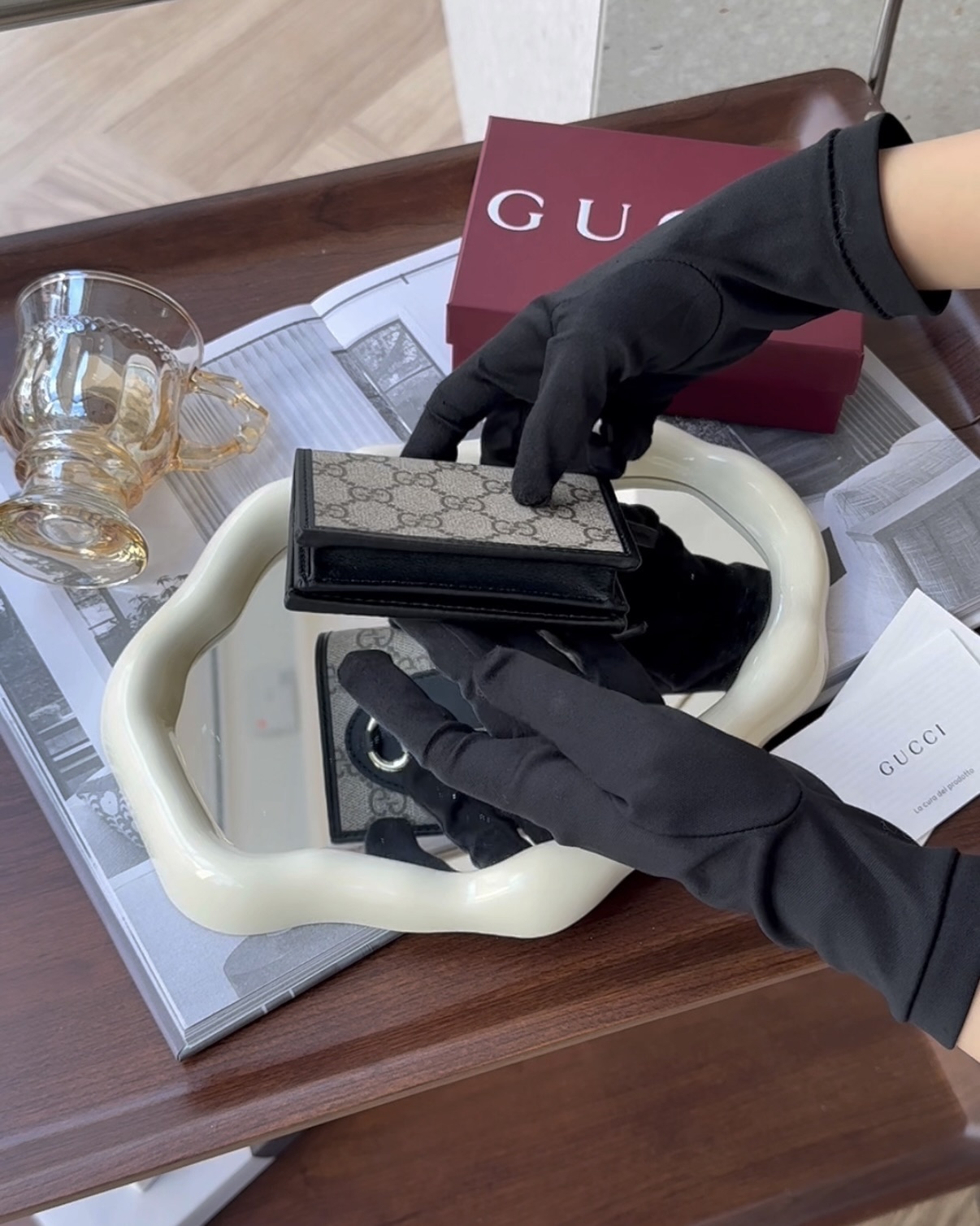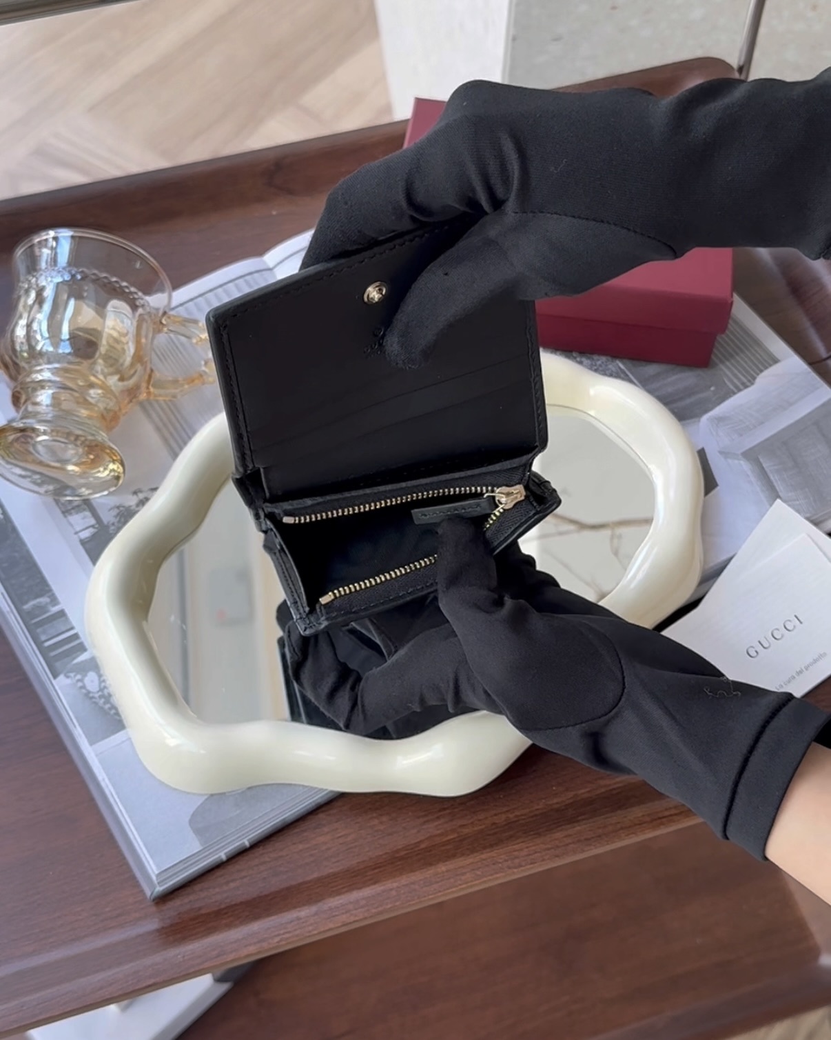 【GUCCI】HORSEBIT 1955 對開短夾 黑色老花