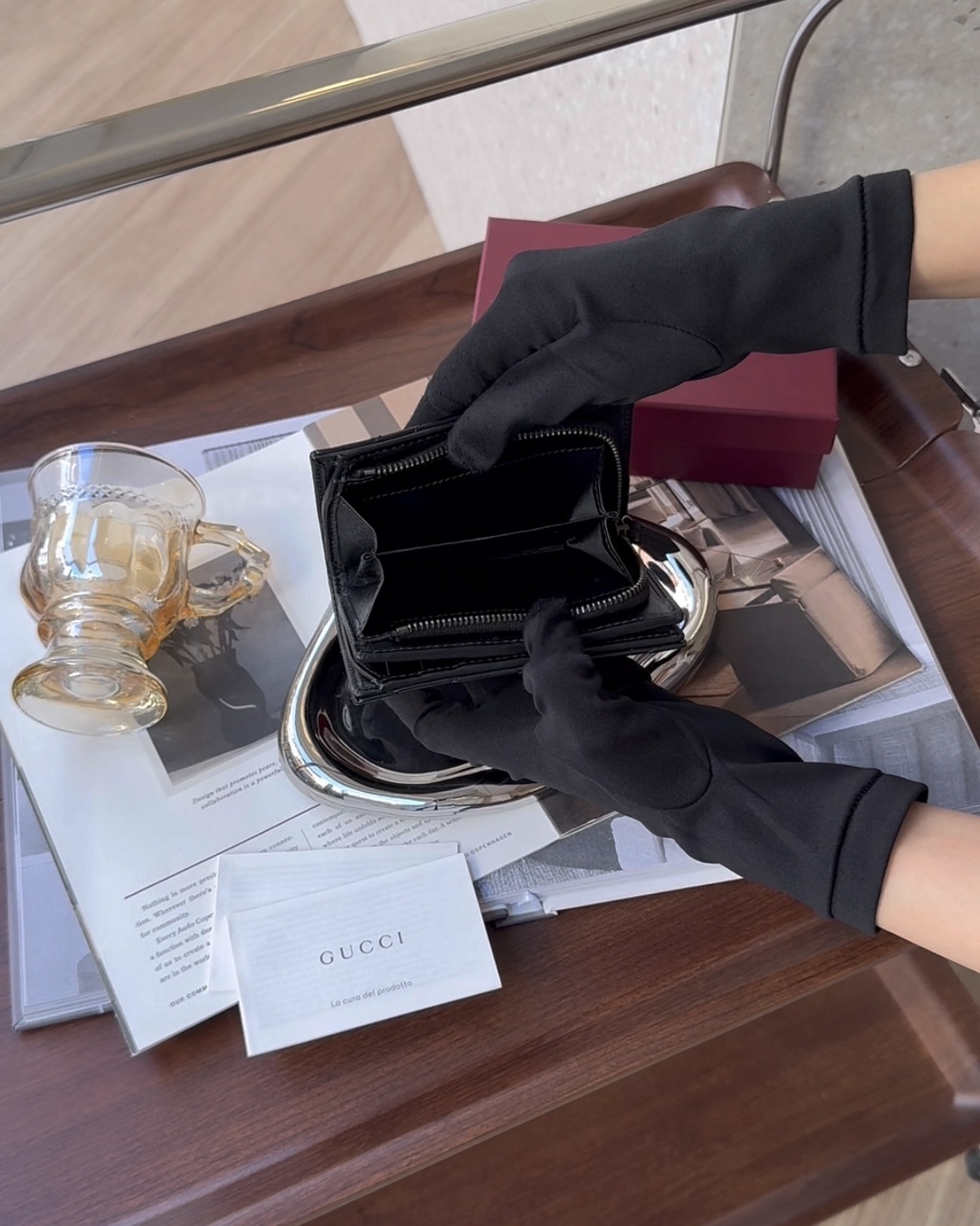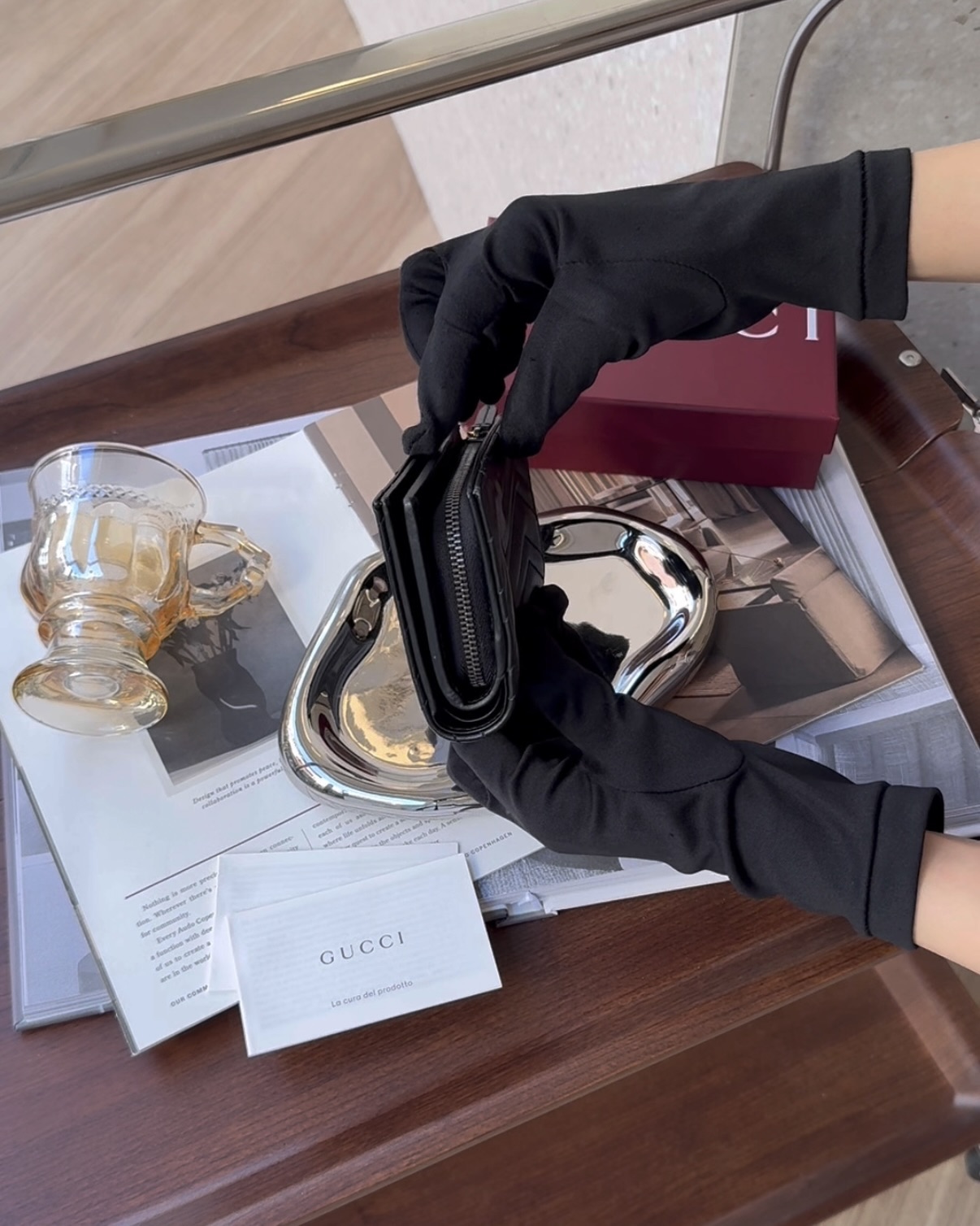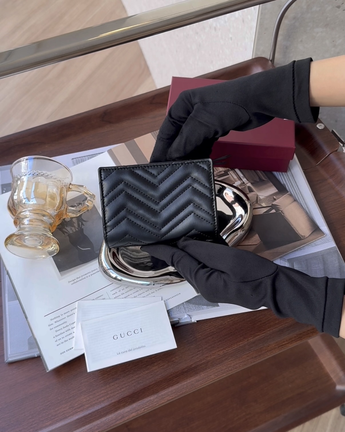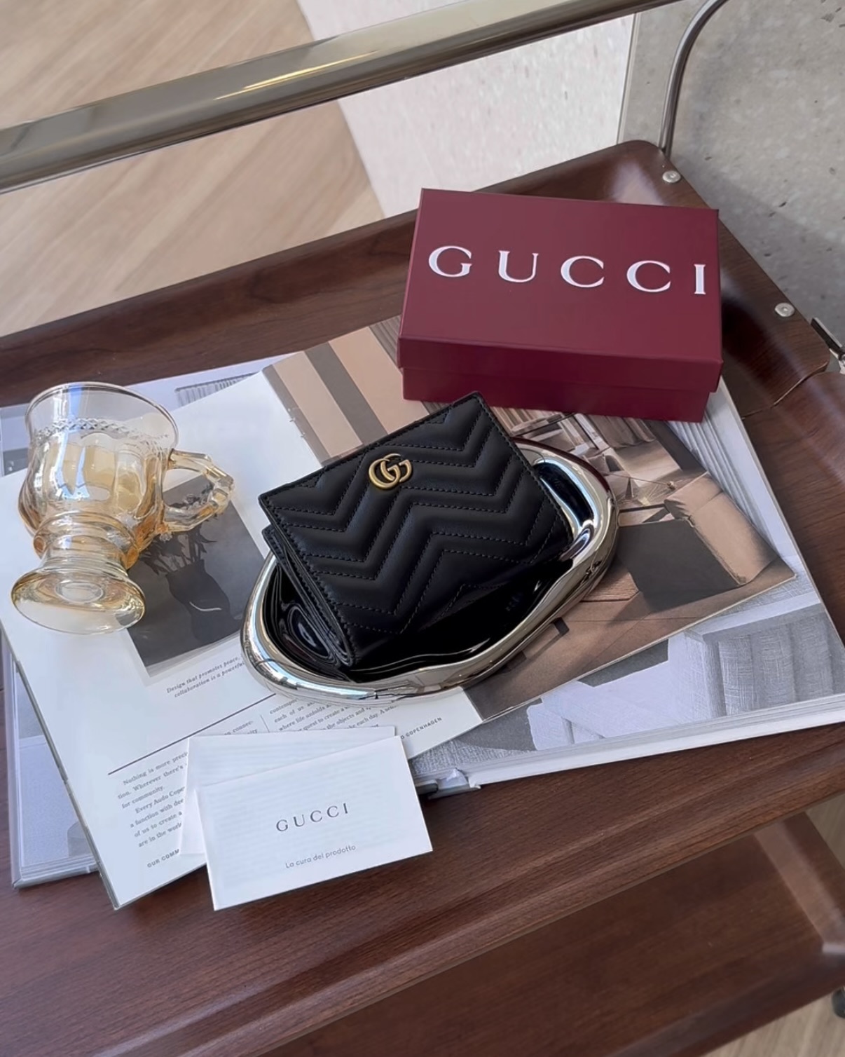 【GUCCI】MARMONT 對開短夾 黑色