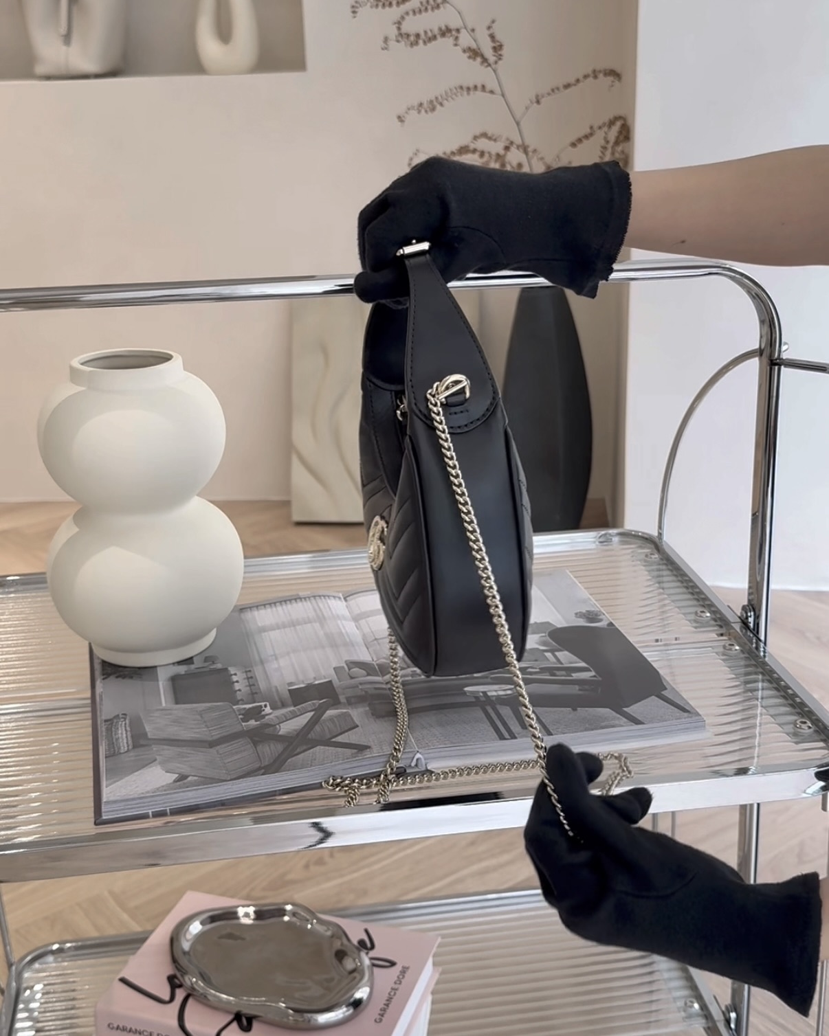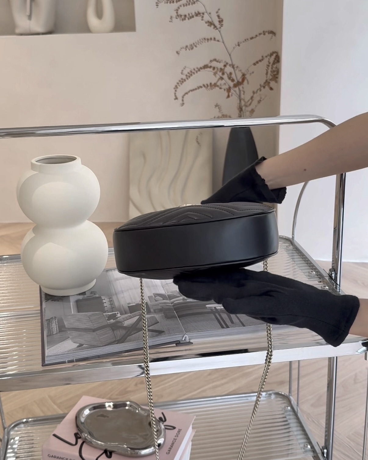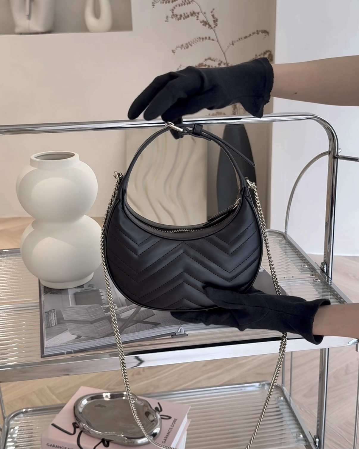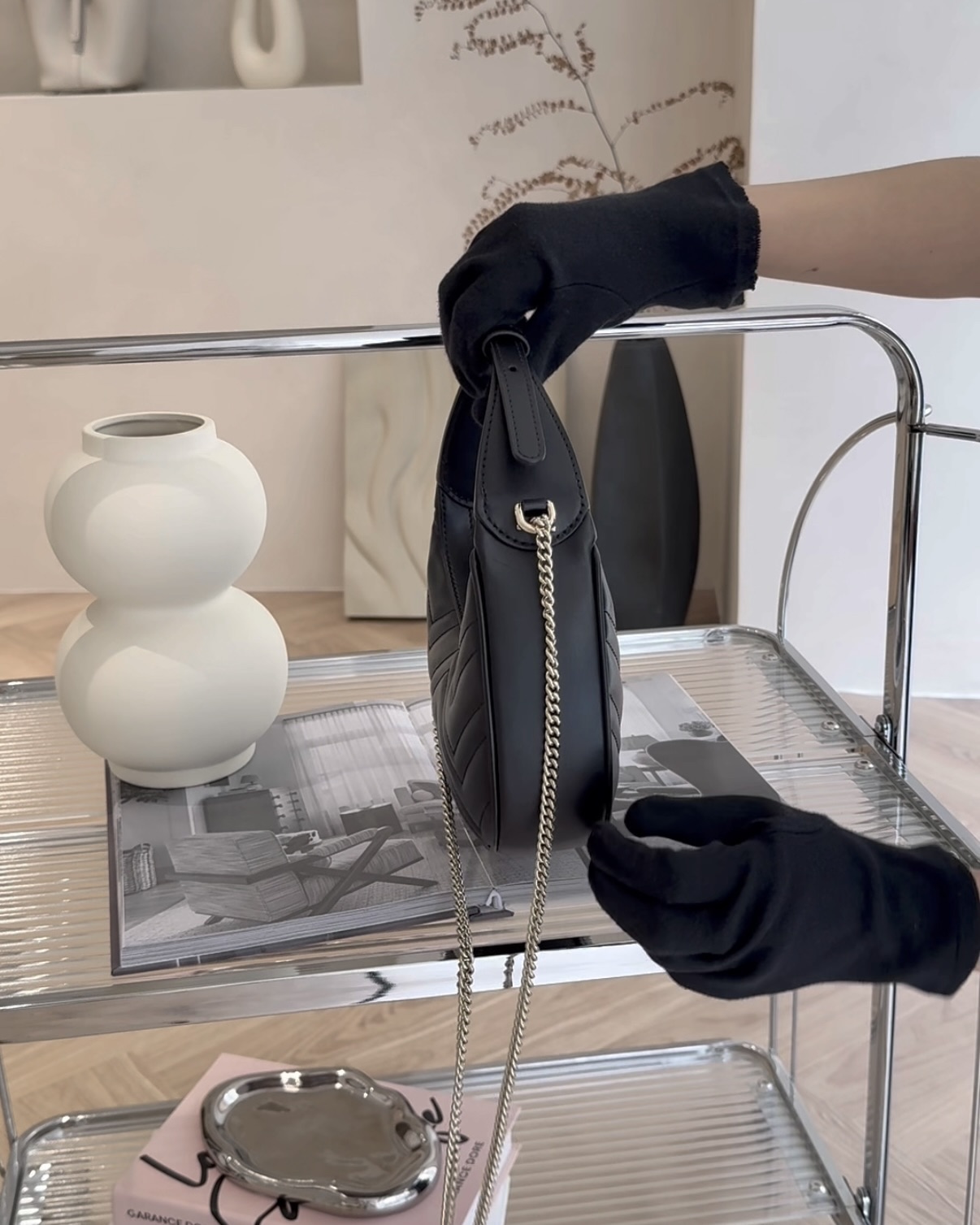 【GUCCI】MARMONT 月牙包 黑色淡金扣