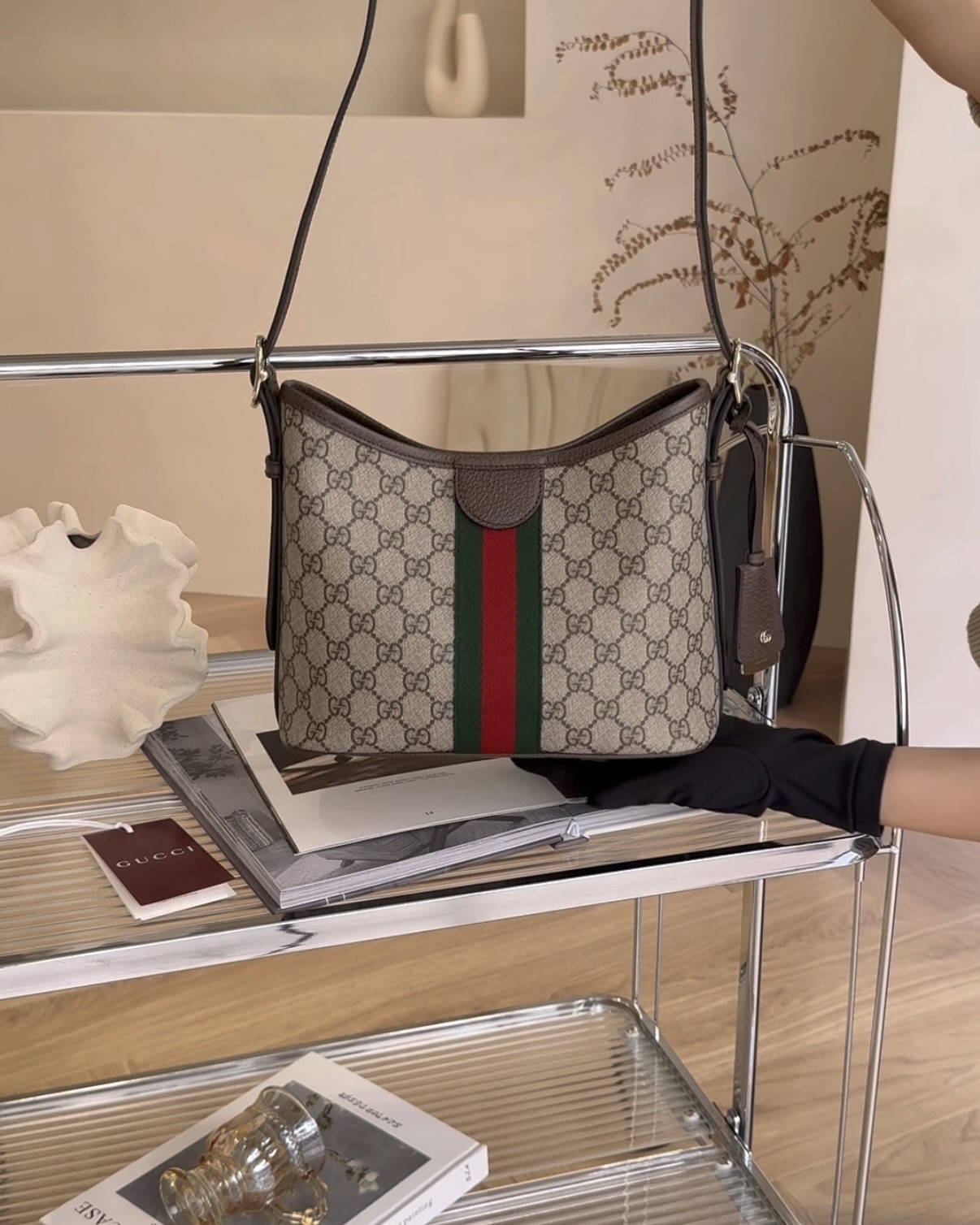 【GUCCI】OPHIDIA 小號肩背包 經典老花
