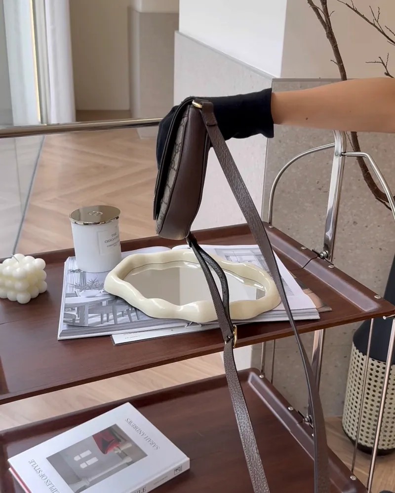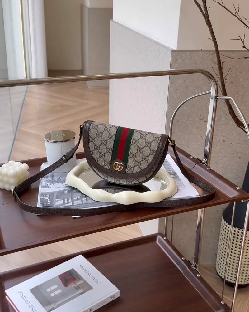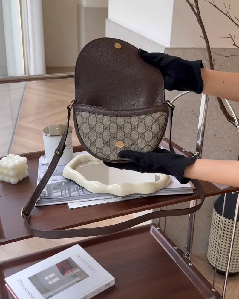 【GUCCI】OPHIDIA 馬鞍半月包 經典老花