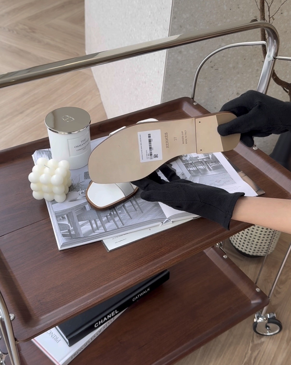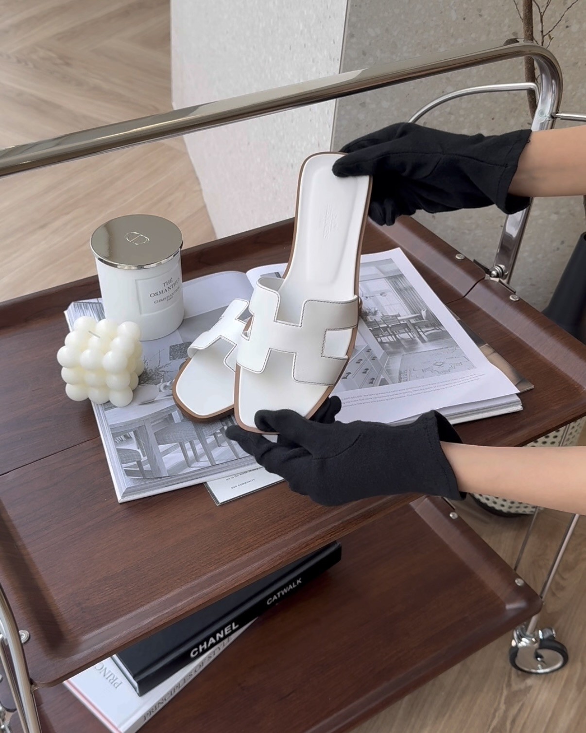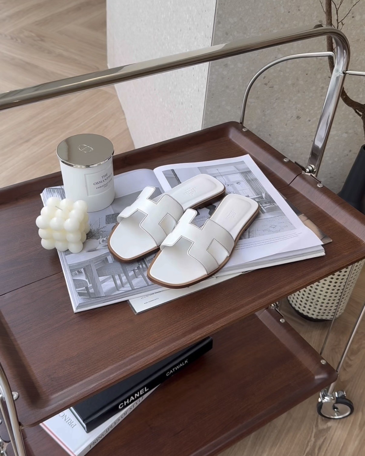 【HERMES】經典 ORAN H拖鞋 白色/棕底