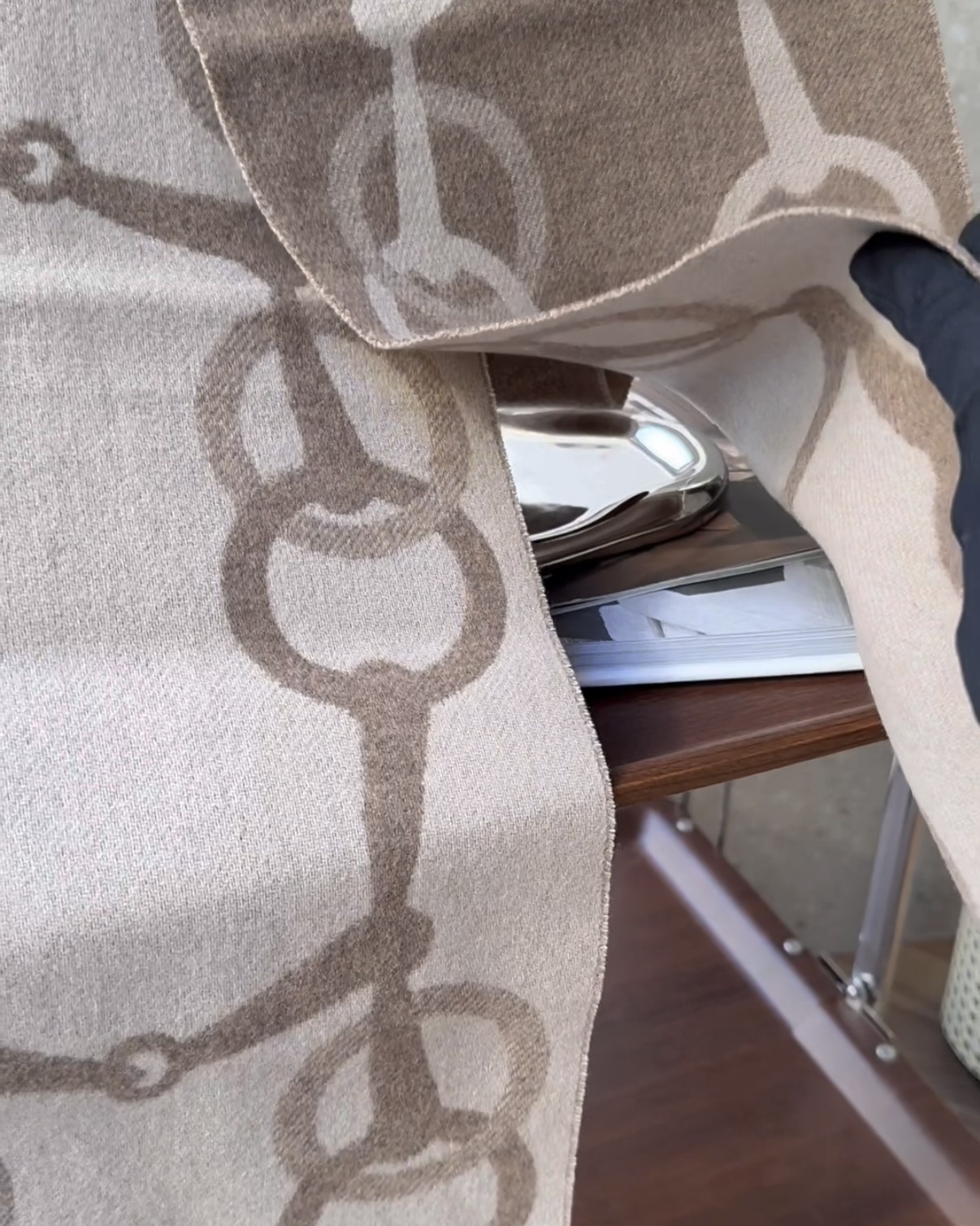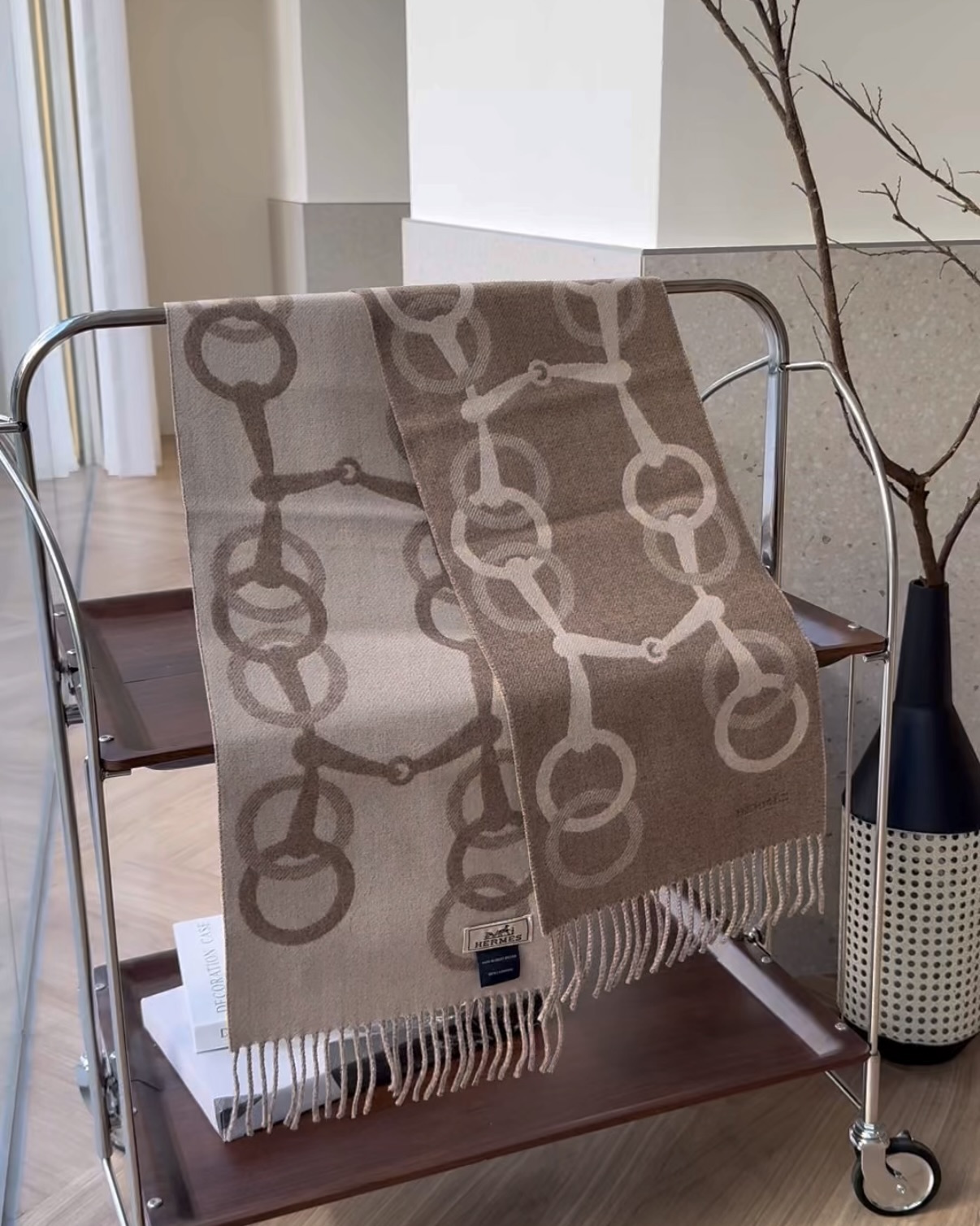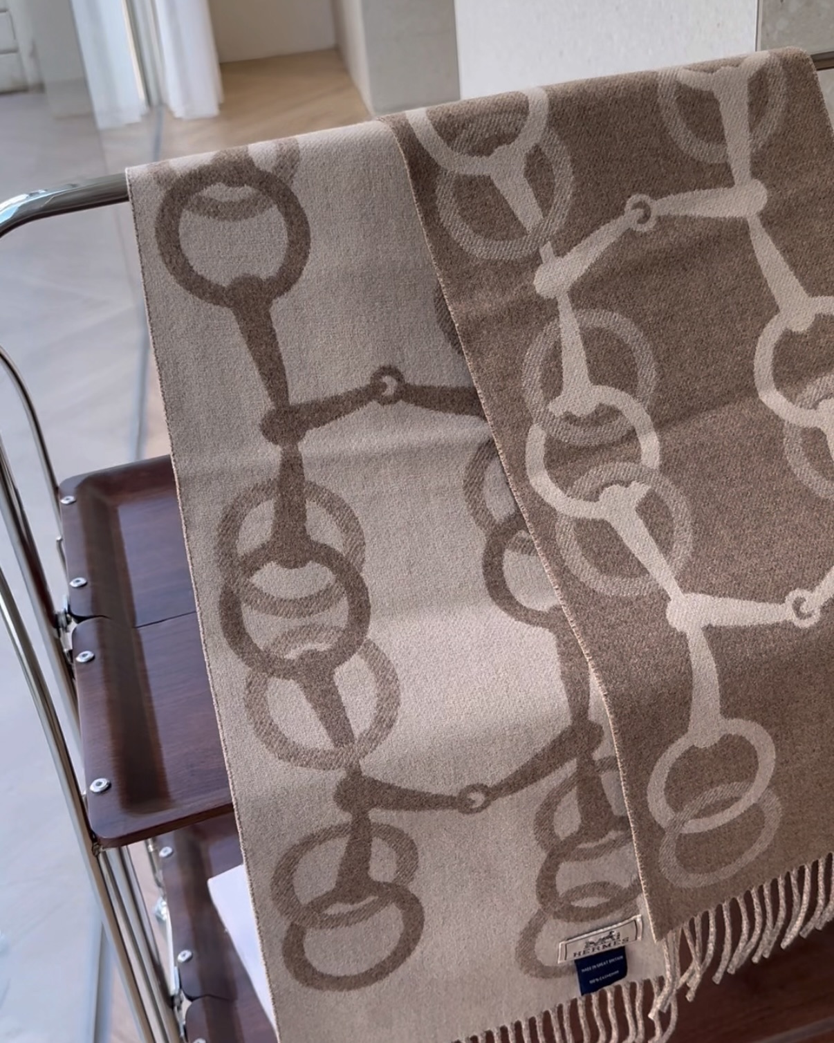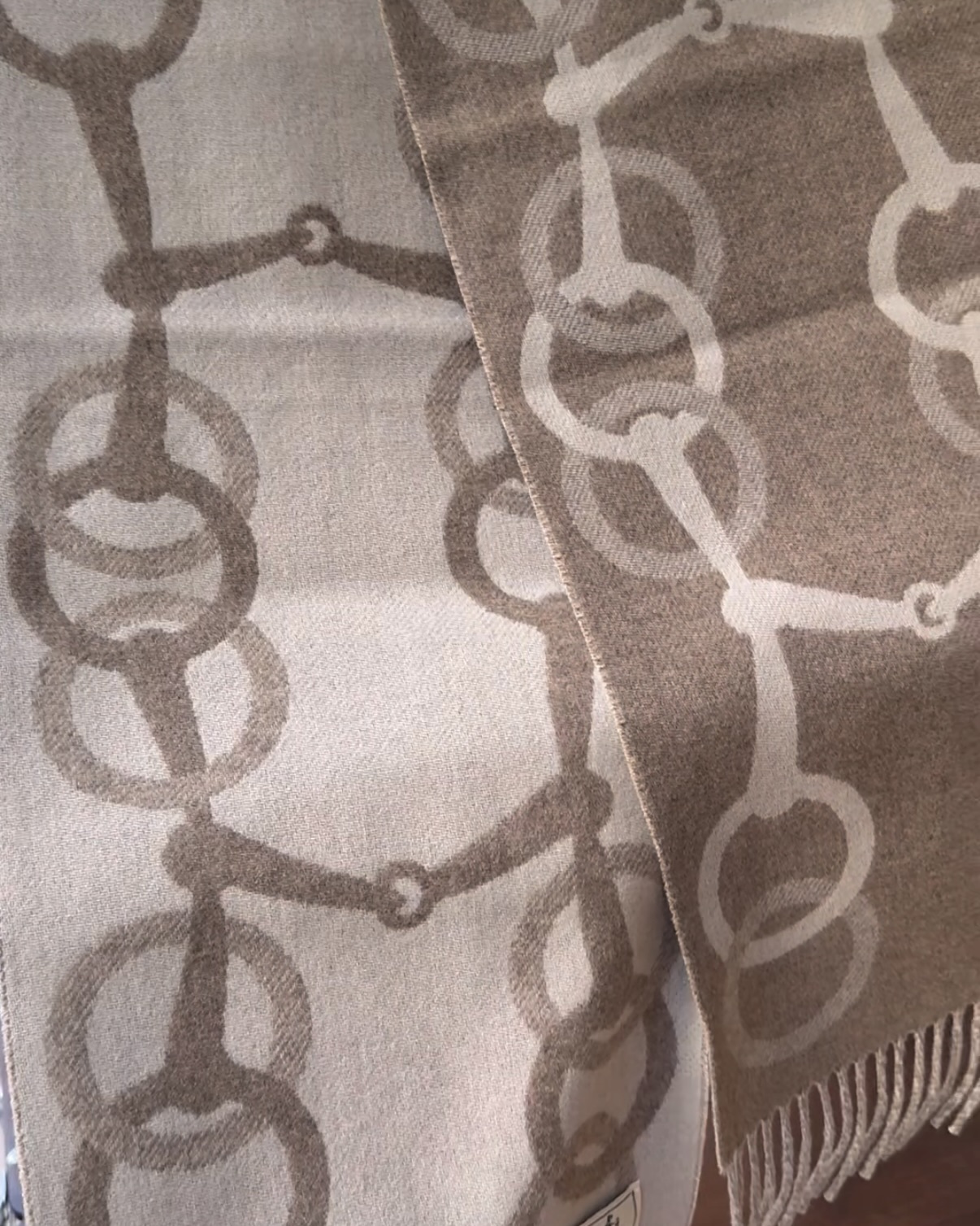 【HERMES】馬銜扣羊絨圍巾 奶茶色