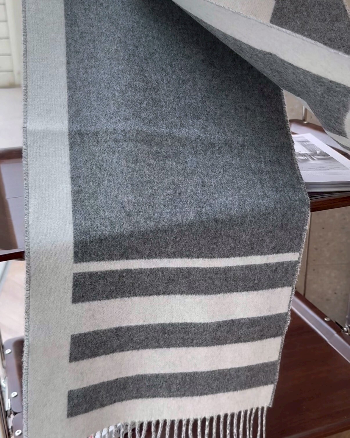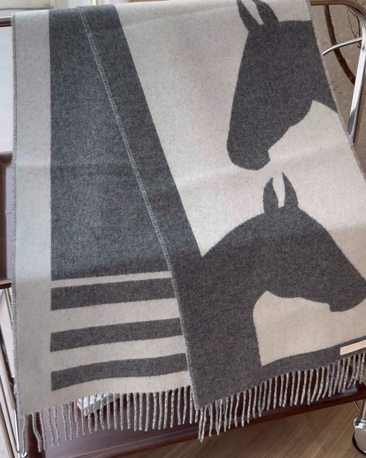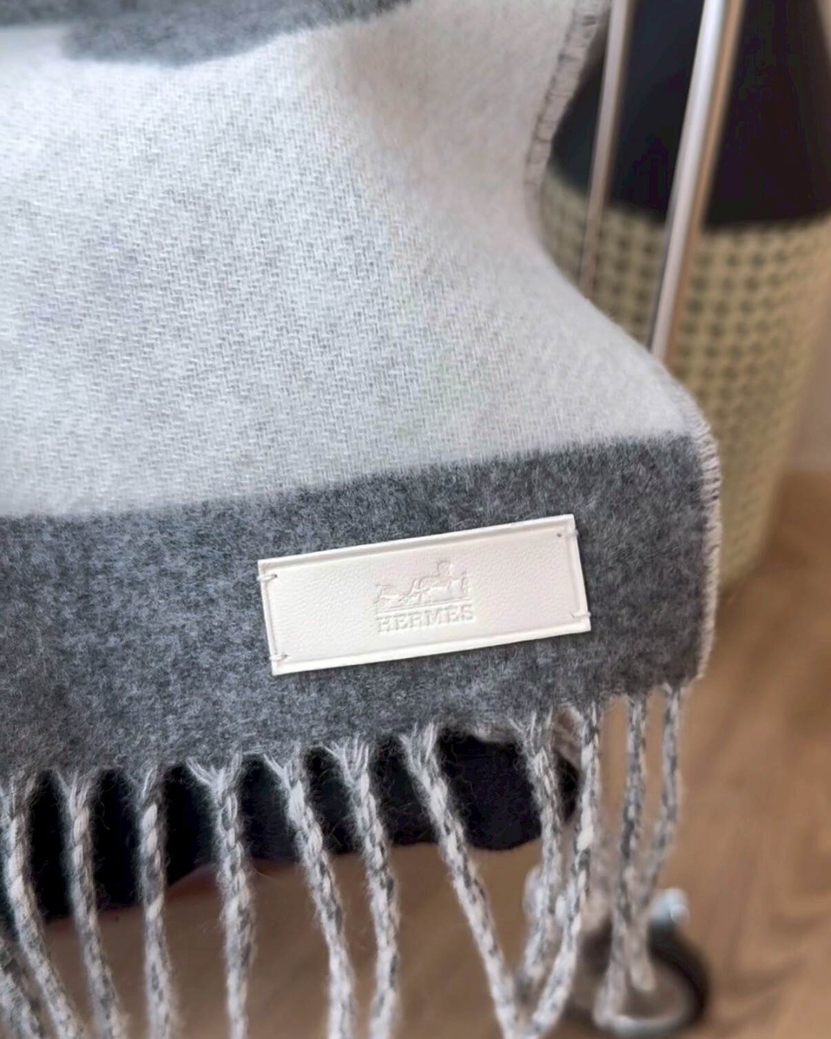 【HERMES】LOVE STORY 圍巾 淺灰色 皮標新款