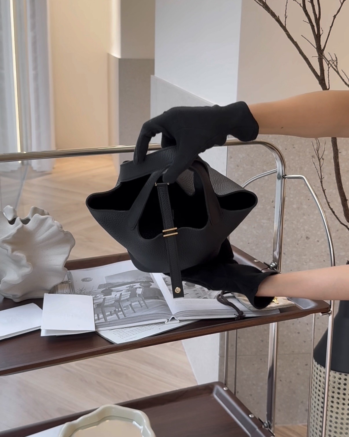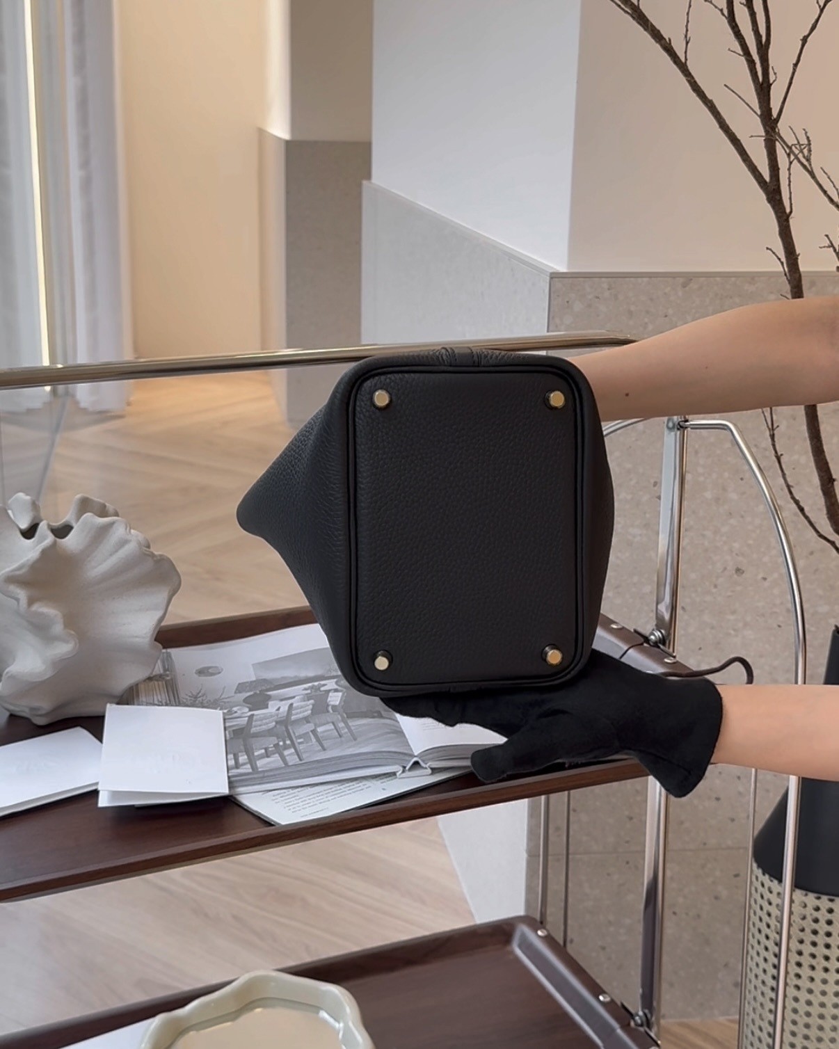 【HERMES】P18 菜籃子 黑金TC皮 K刻