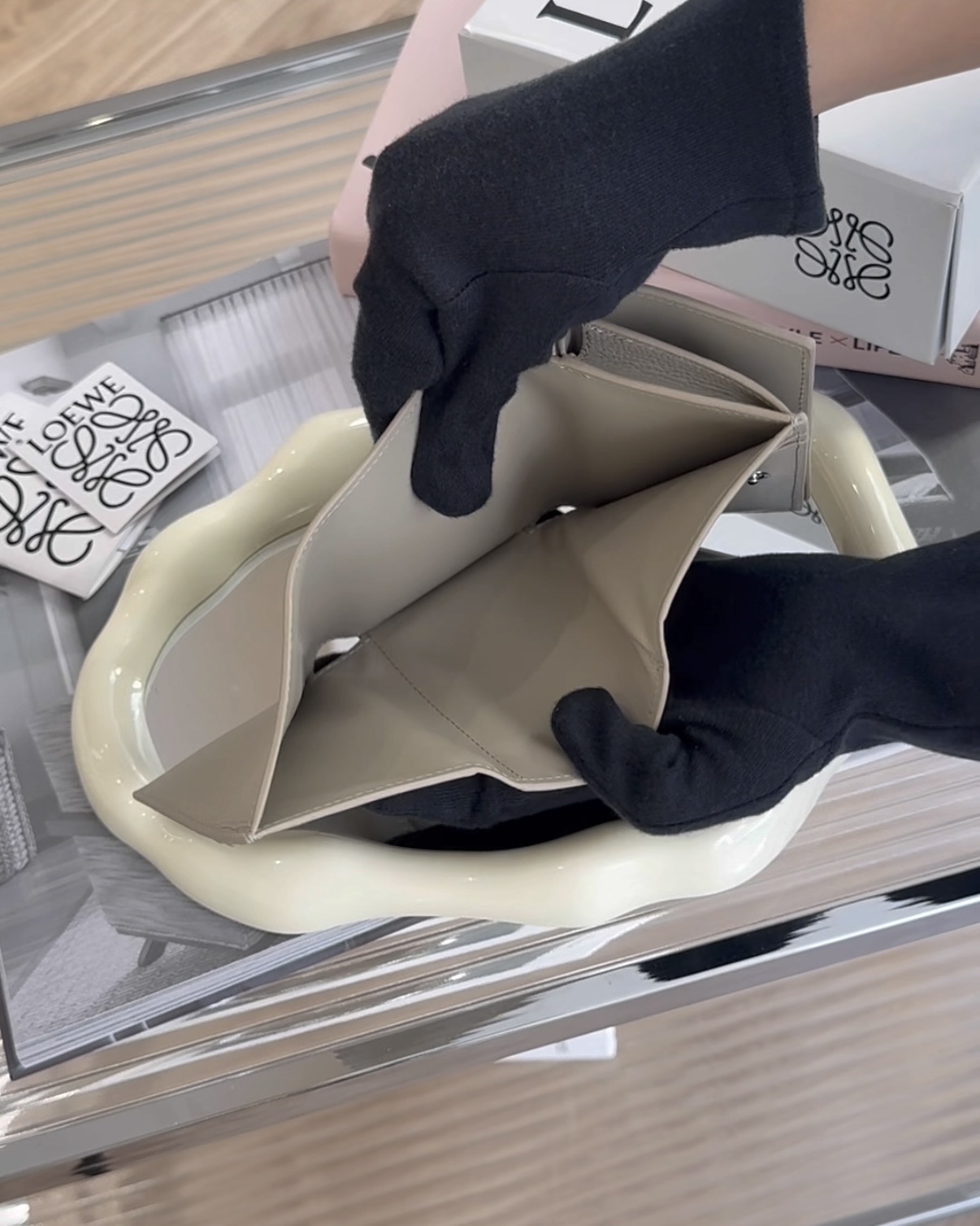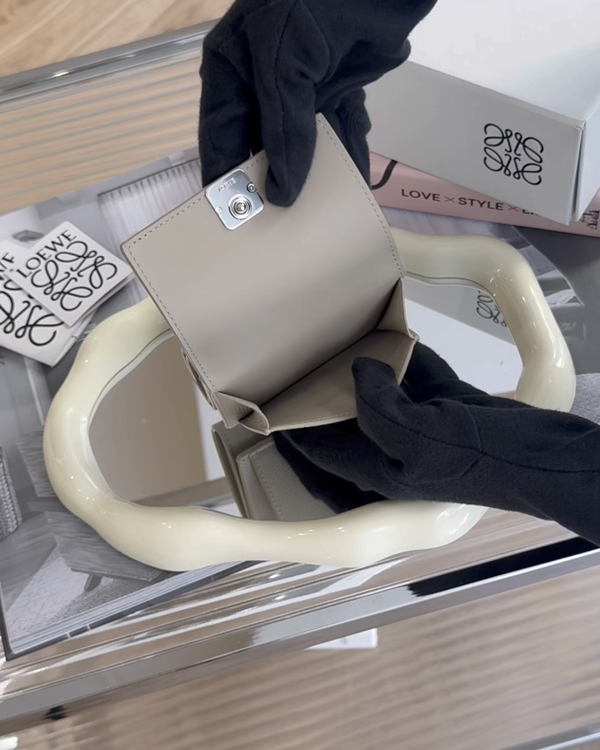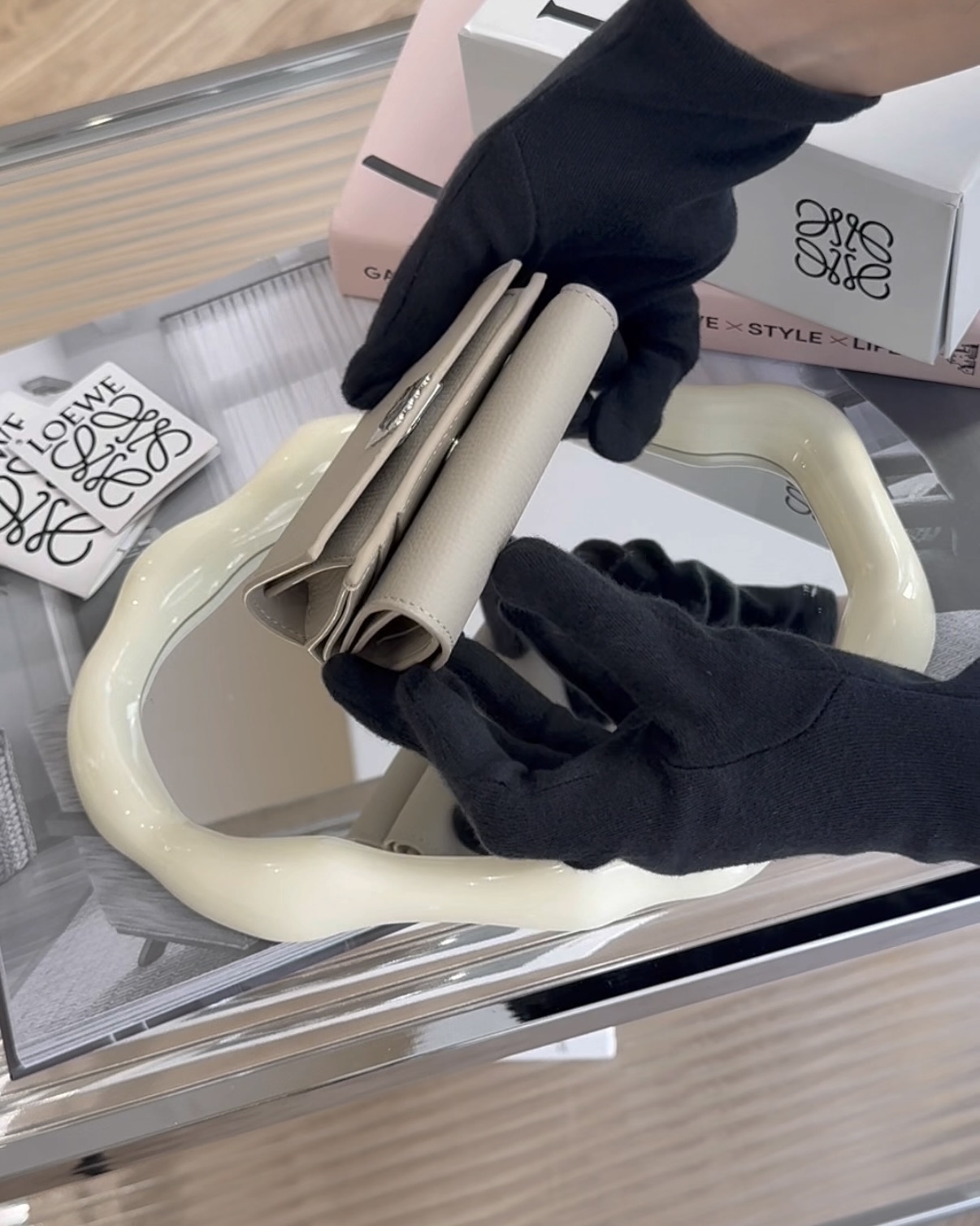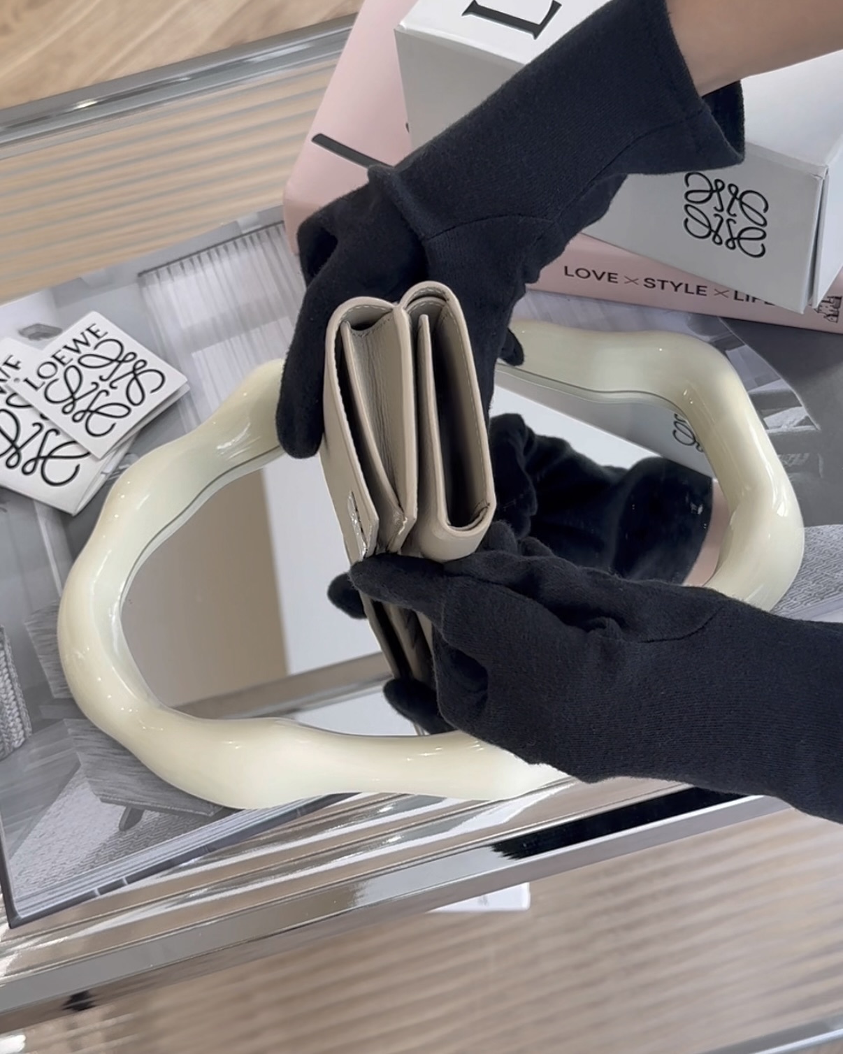 【LOEWE】卵石紋小牛皮按扣三折短夾 黏土色