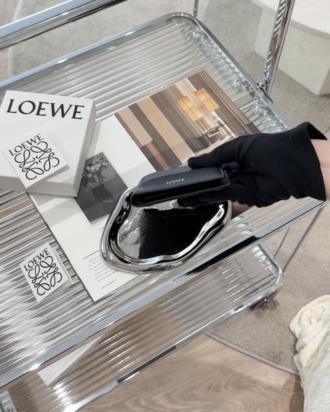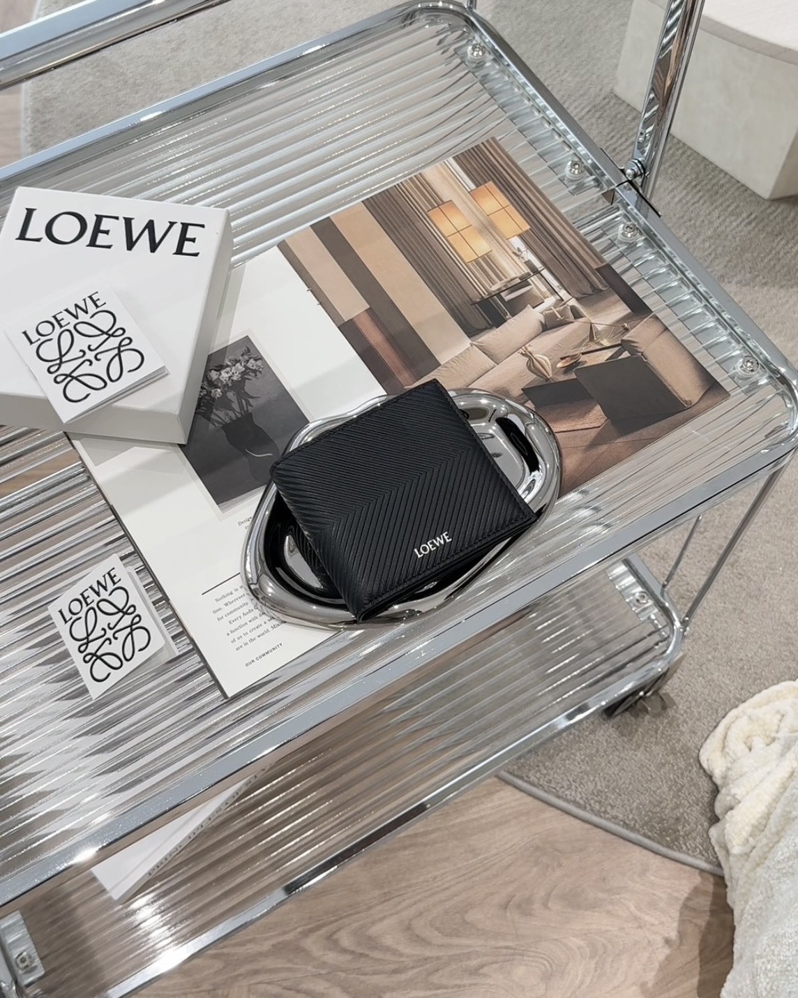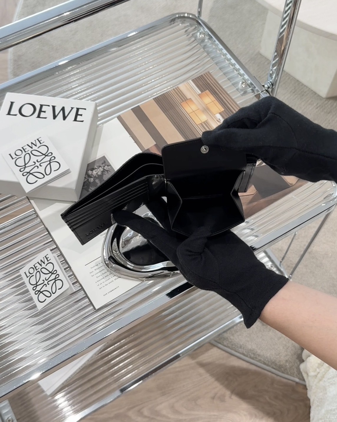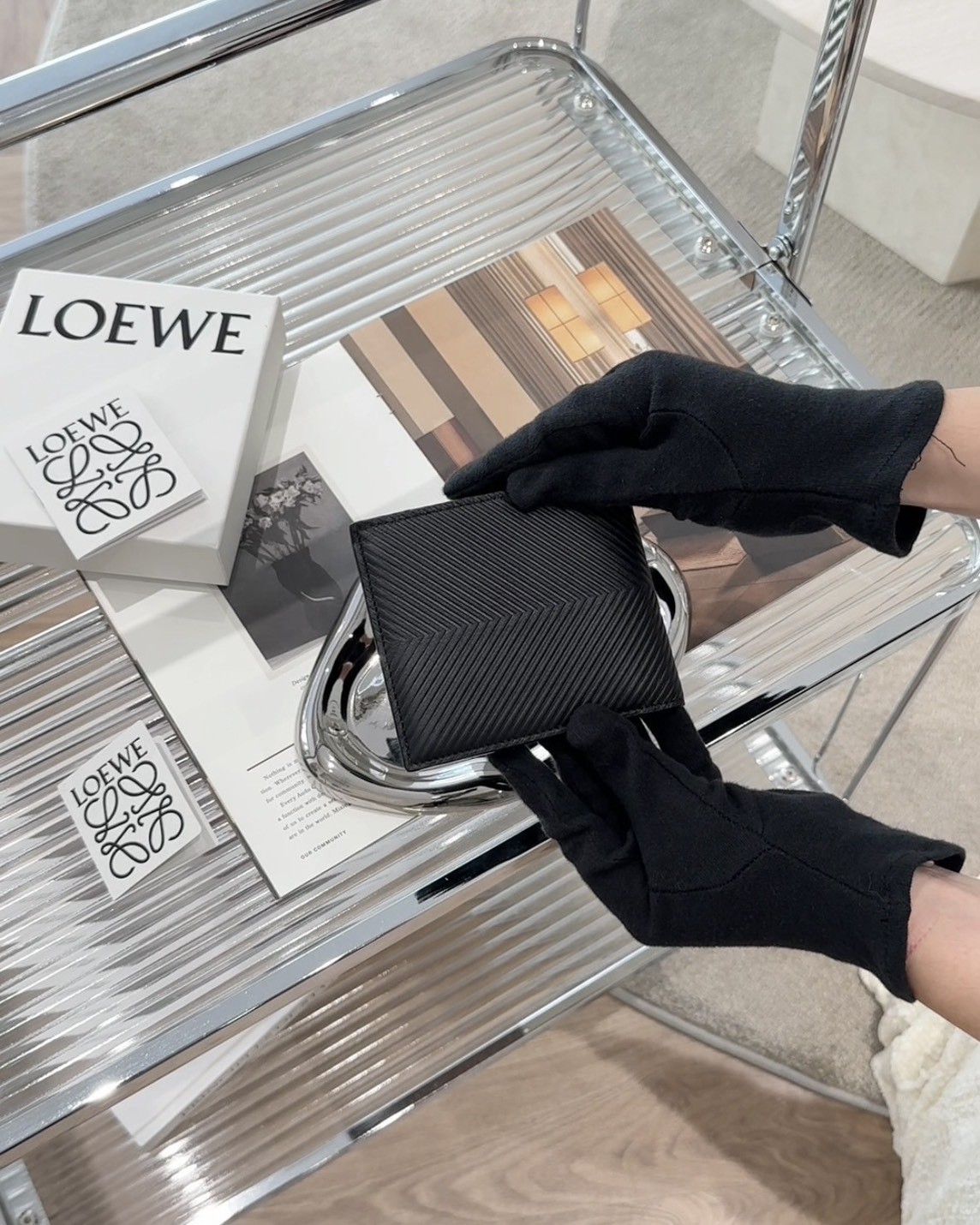 【LOEWE】壓紋皮革內零錢袋短夾 黑色