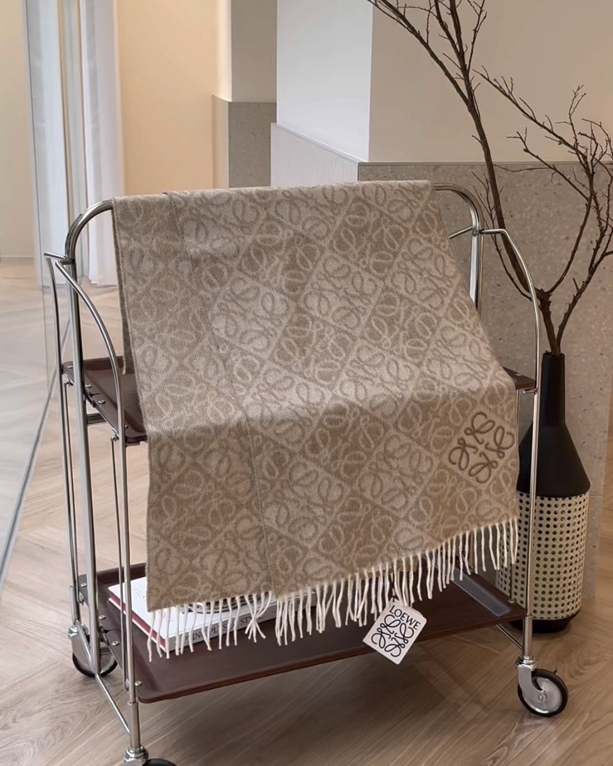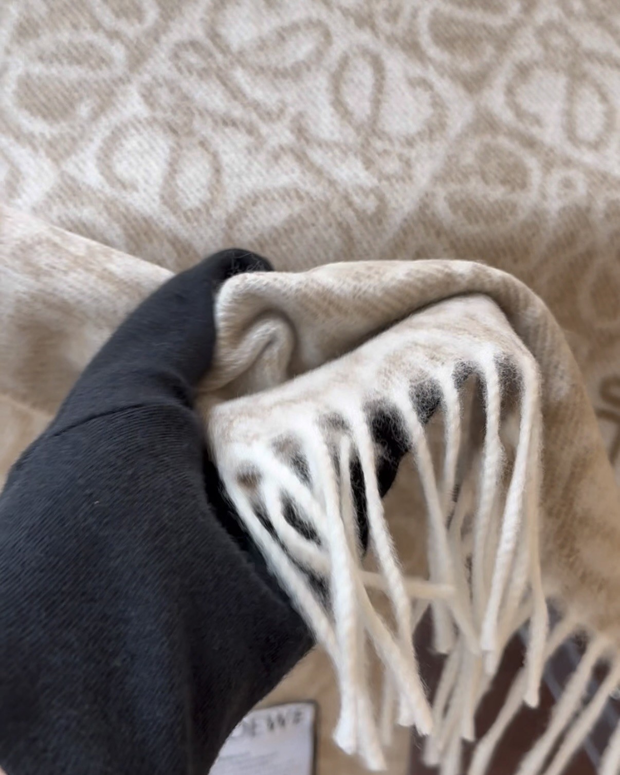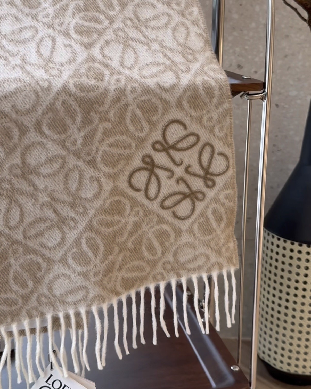 【LOEWE】浮雕ANAGRAM 羊絨圍巾 燕麥色