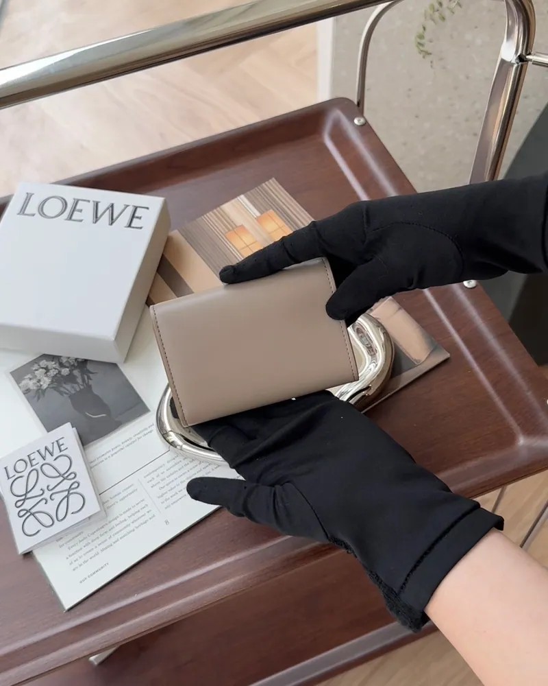 【LOEWE】納帕小牛皮 PEBBLE 小型直式錢包/沙色