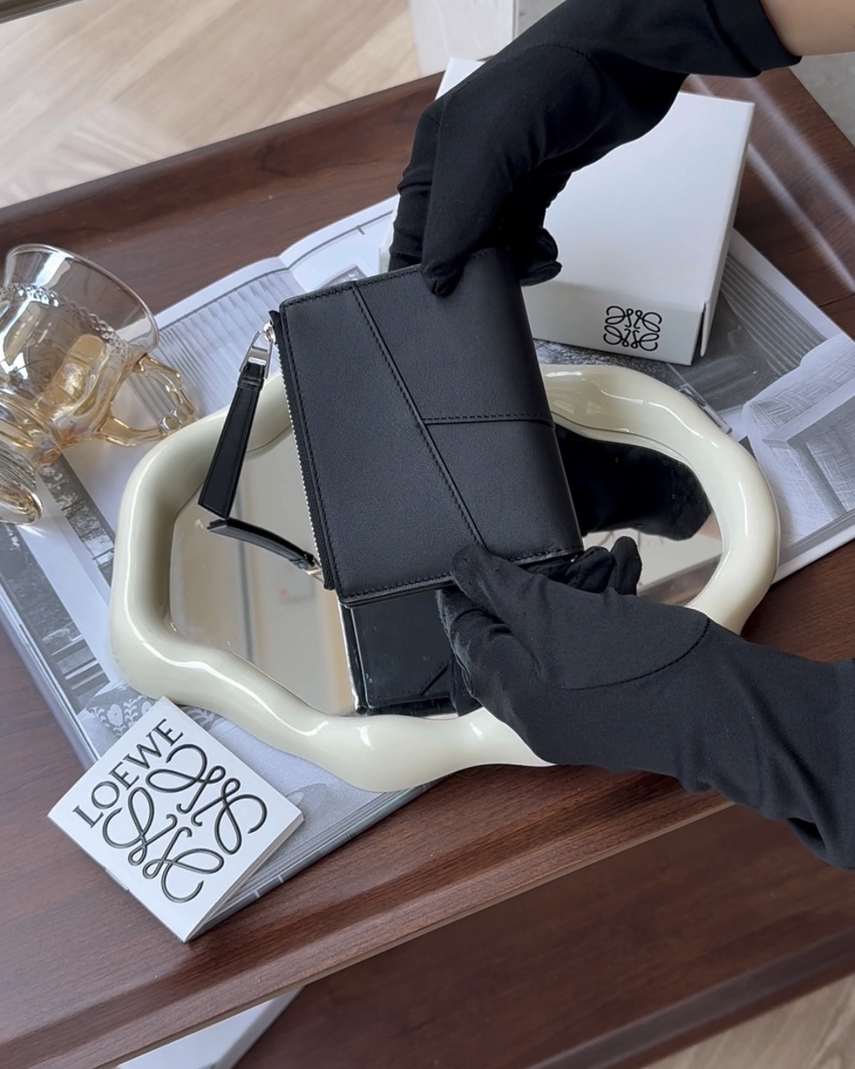 【LOEWE】經典小牛皮PUZZLE對開短夾 黑色