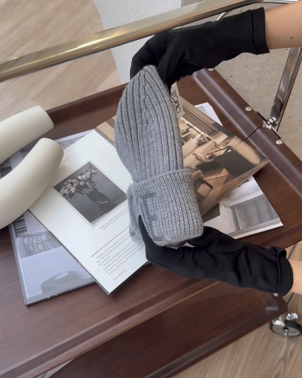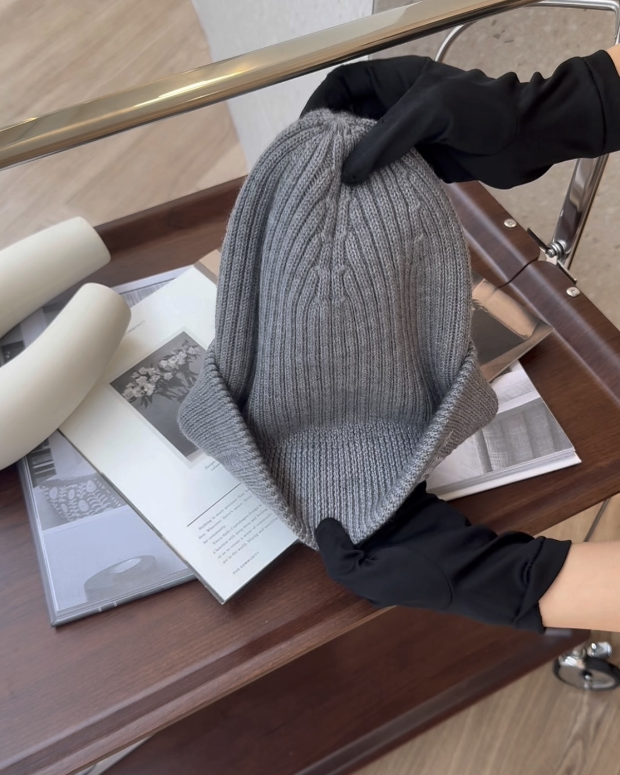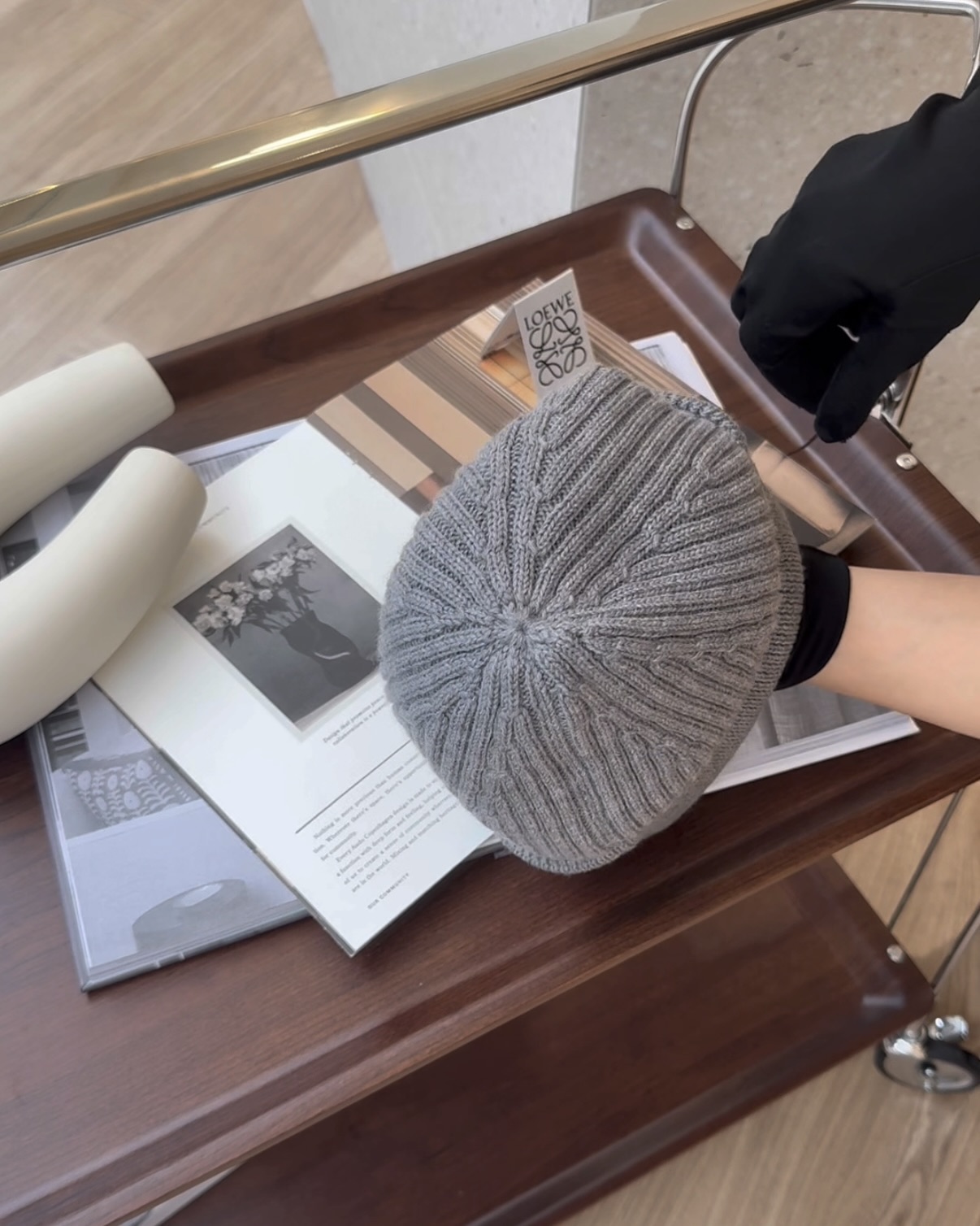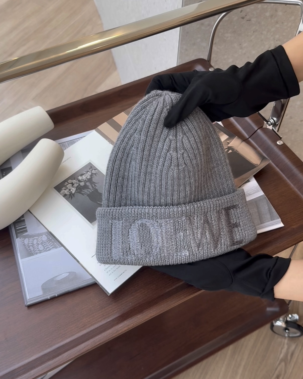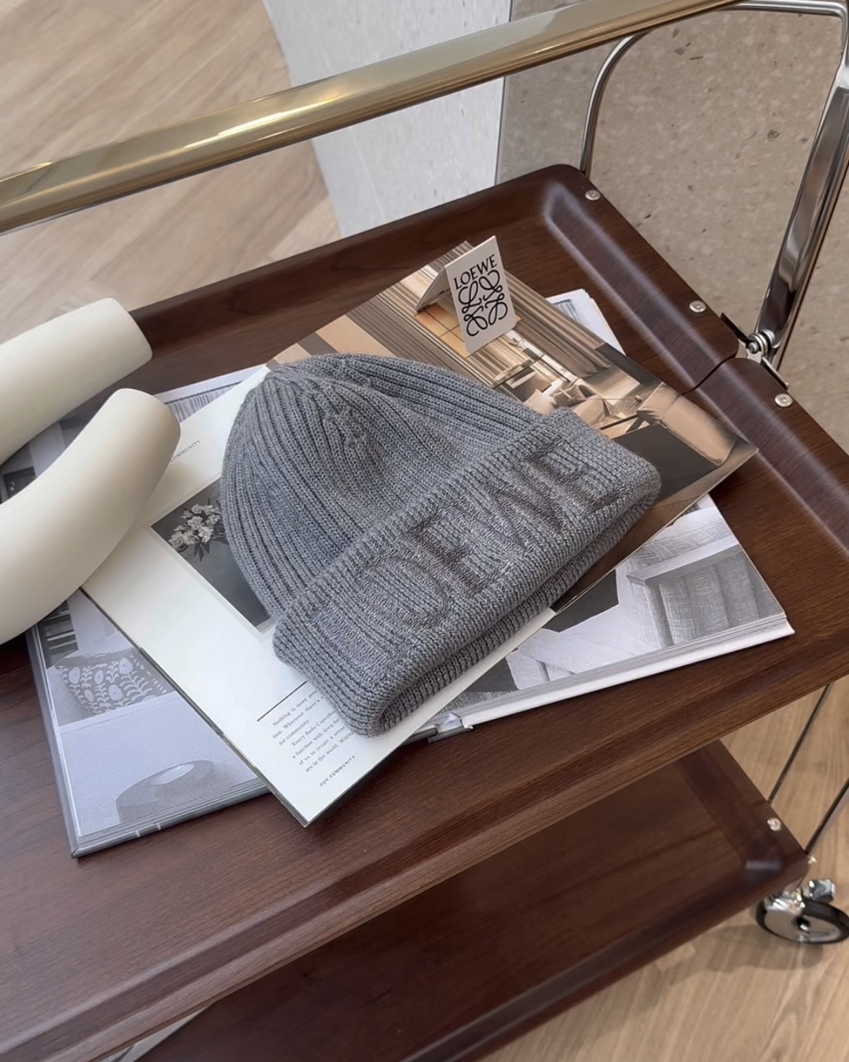【LOEWE】羊毛毛線帽 灰色