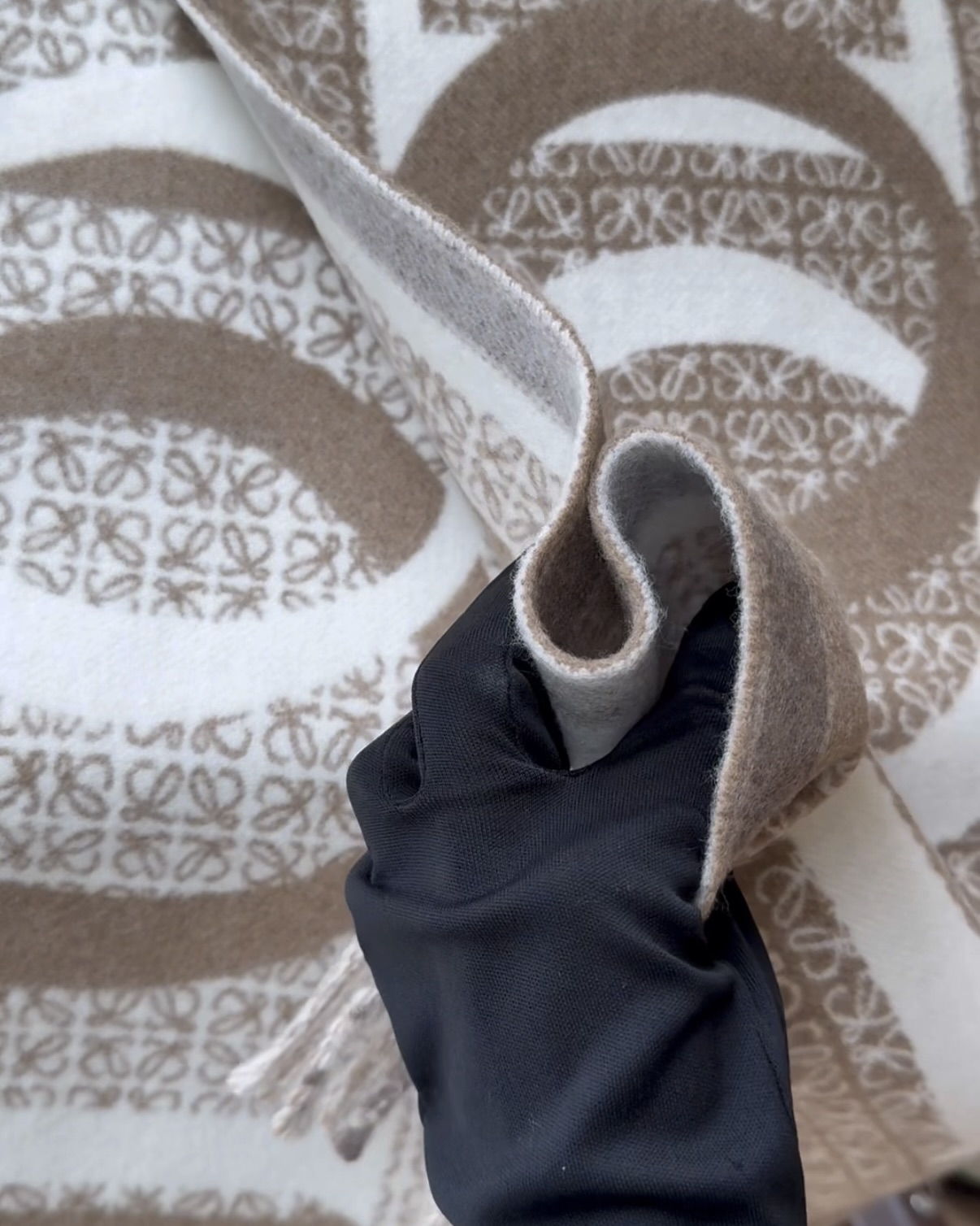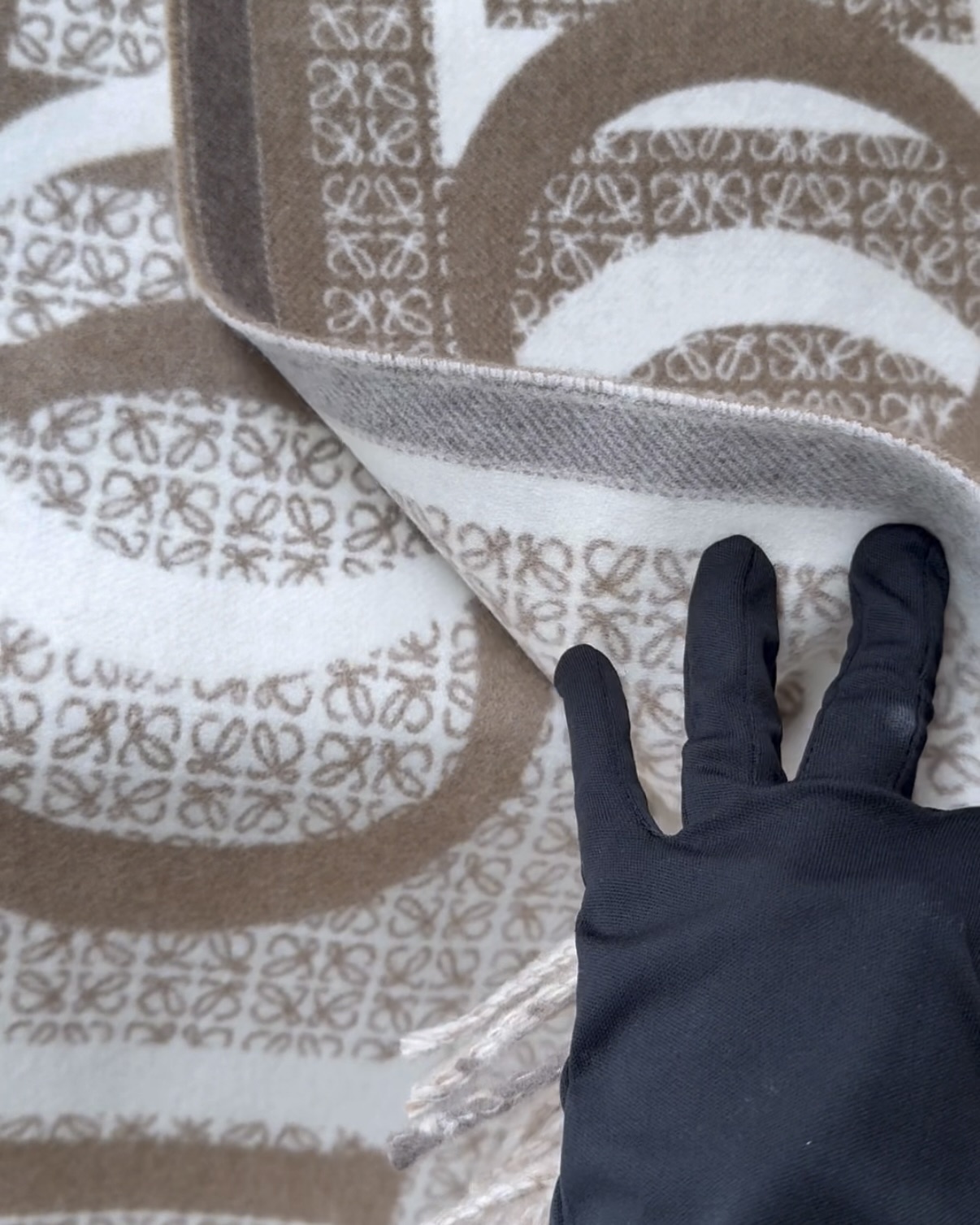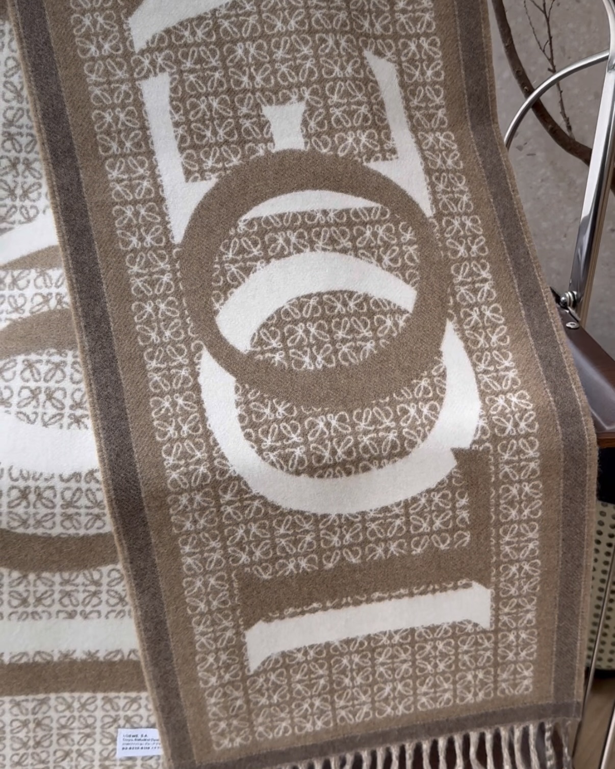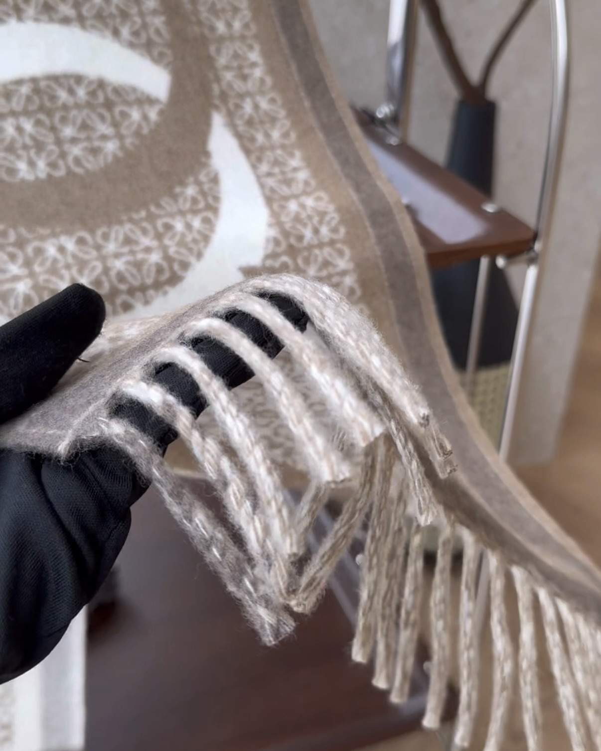 【LOEWE】羊絨羊毛雙面字體圍巾 奶茶色