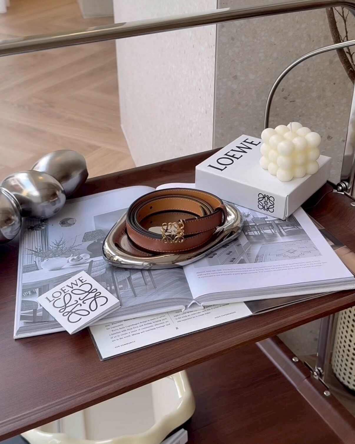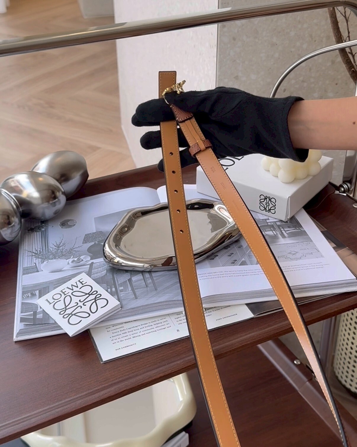 【LOEWE】鵝卵石紋ANAGRAM皮帶 焦糖棕