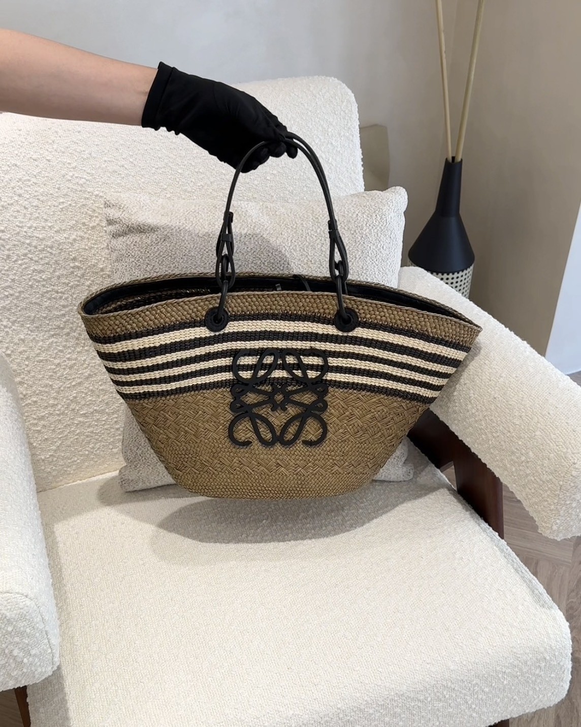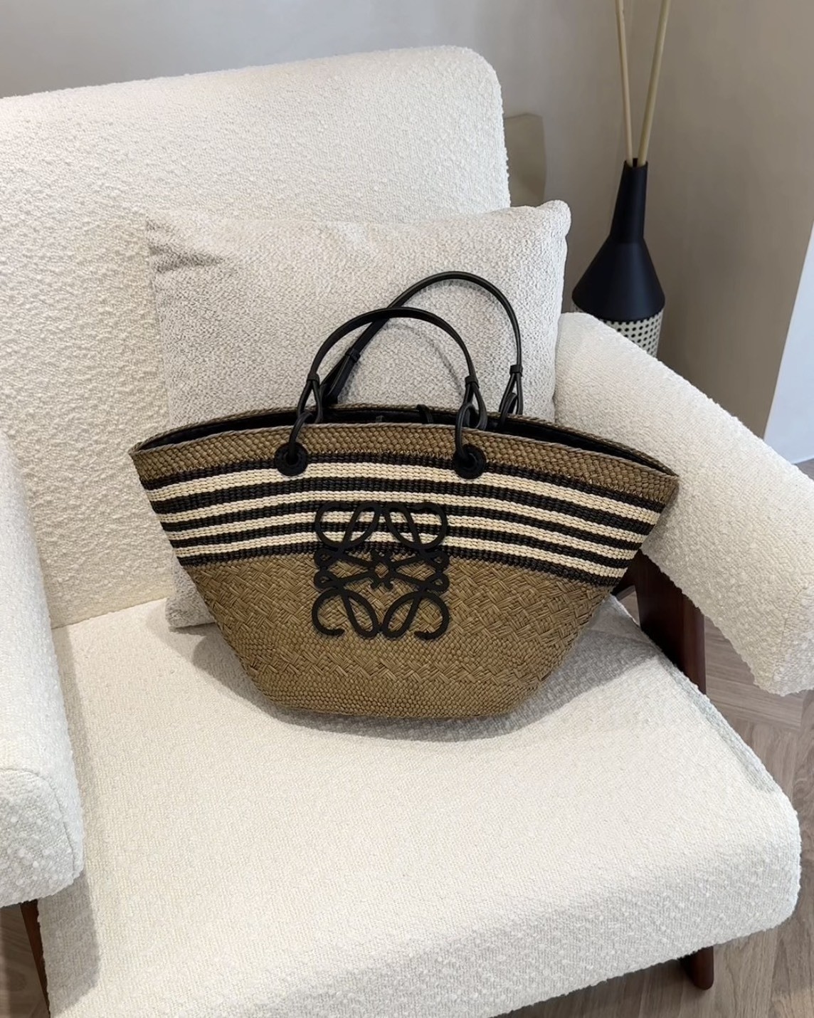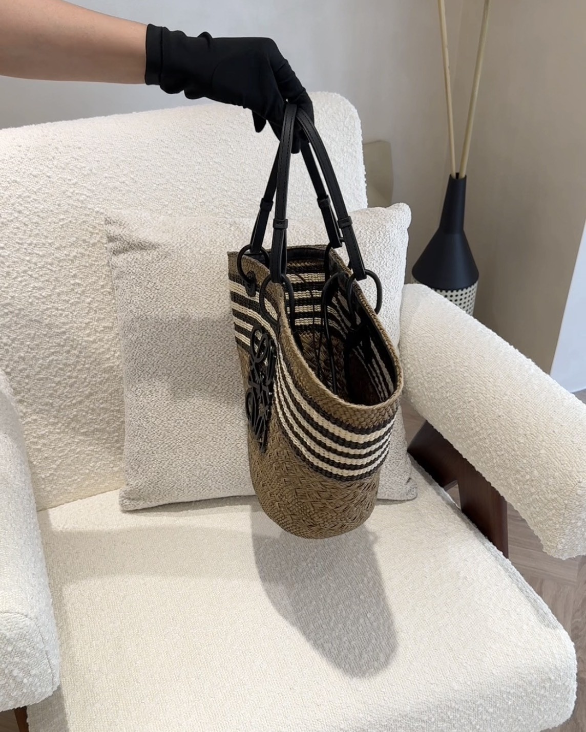 【LOEWE】ANAGRAM 中號菜籃子 深卡其色/黑色