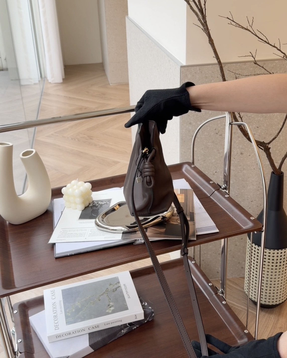 【LOEWE】Flameno 迷你福袋包 巧克力色