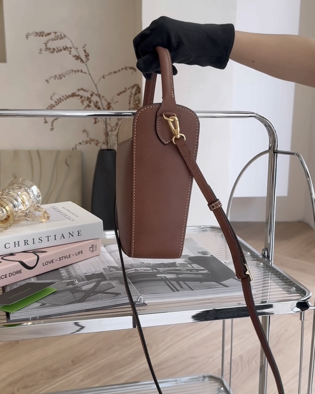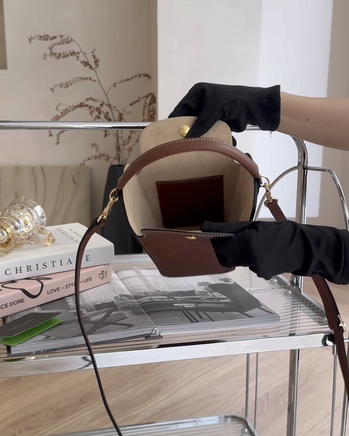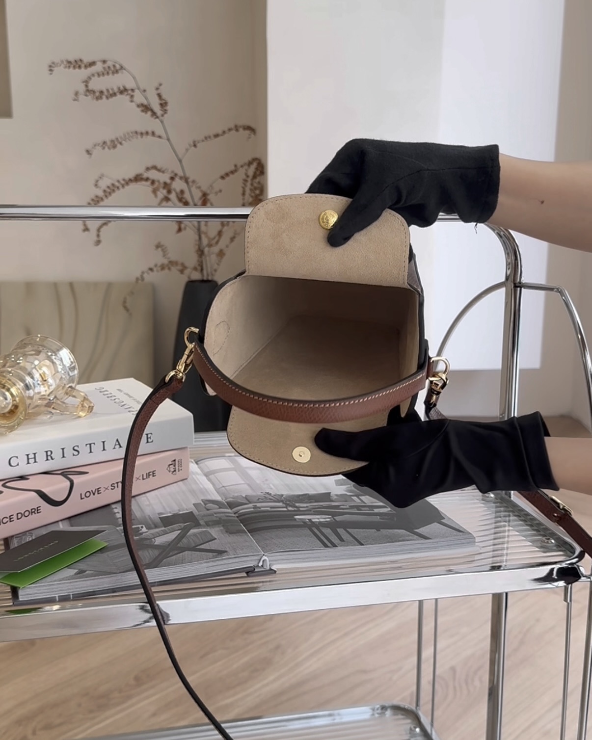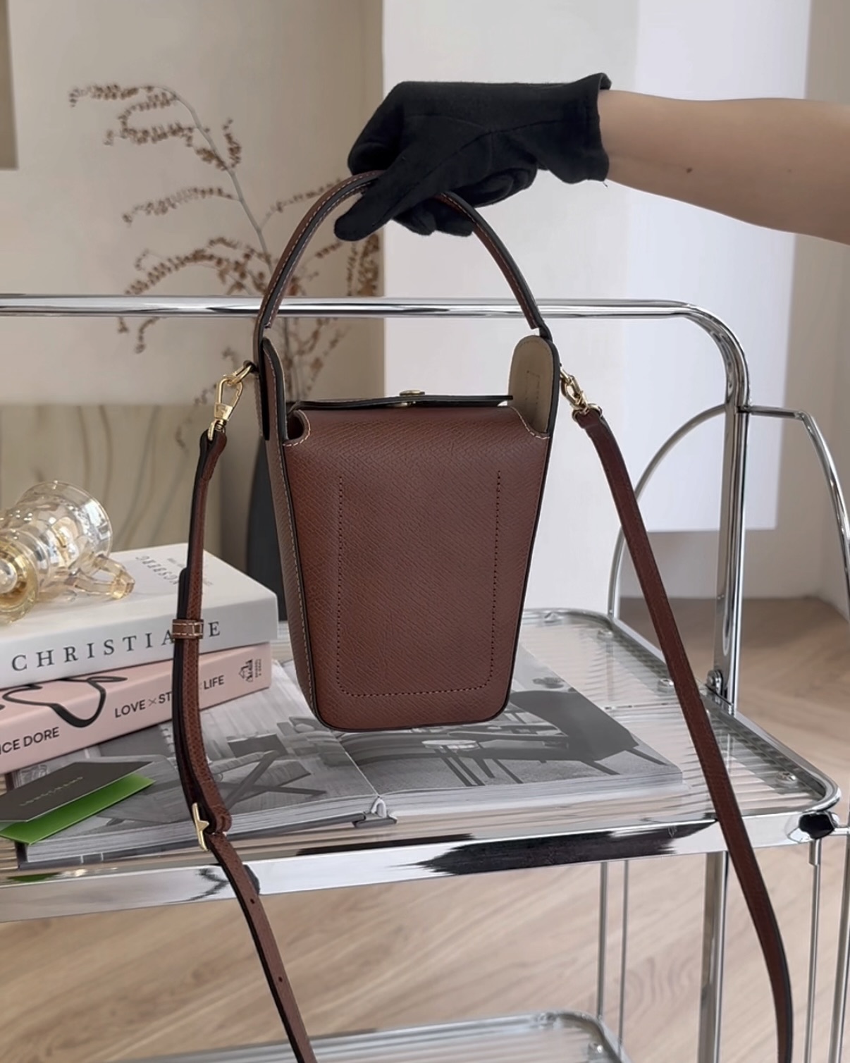 【LONGCHAMP】牛皮爆米花桶包 棕色