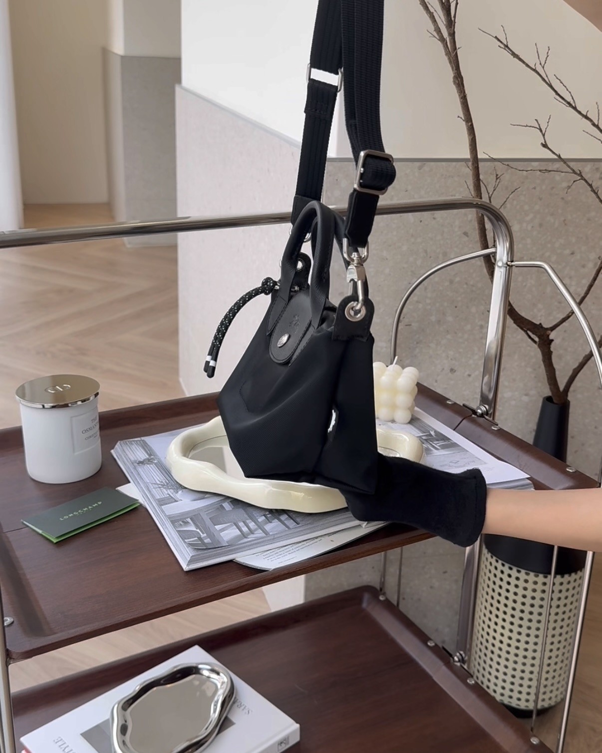 【LONGCHAMP】ENERGY 迷你手提斜跨包 黑色