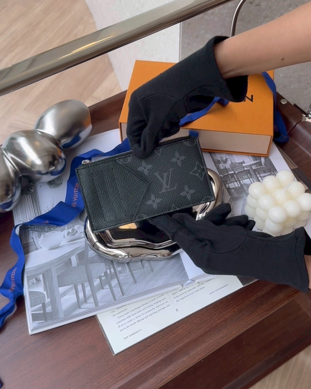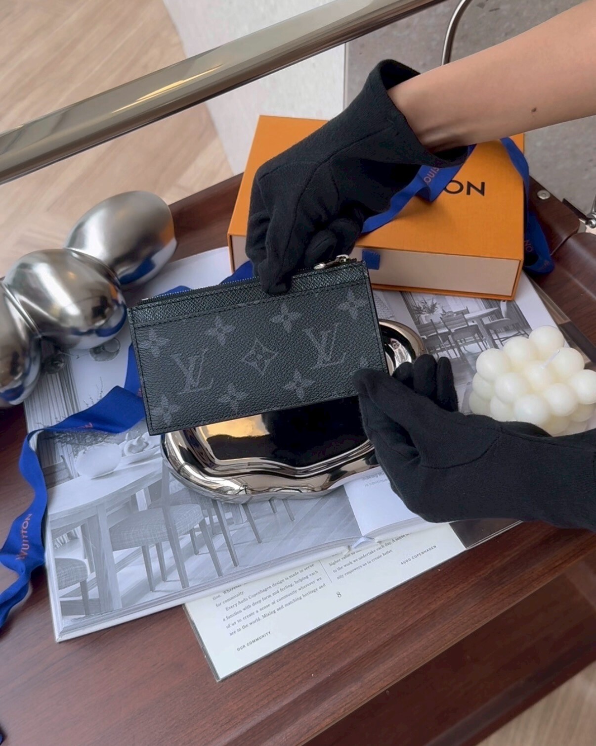 【LV】一字拉鍊零錢卡夾 黑色老花 M30271