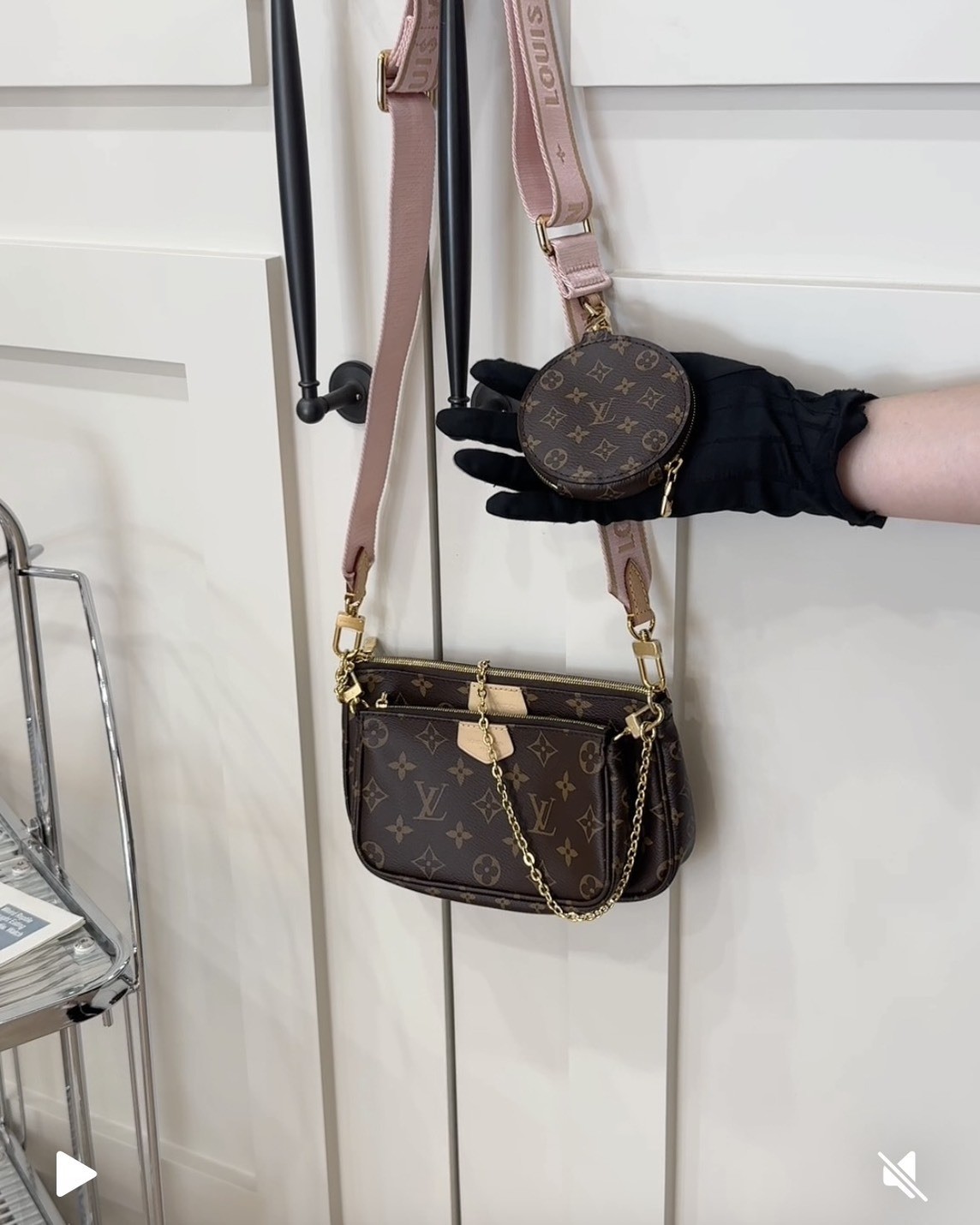 【LV】五合一棕色老花麻將包 粉色背帶 M44840