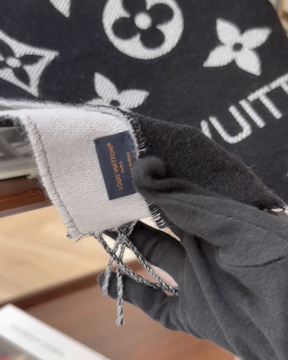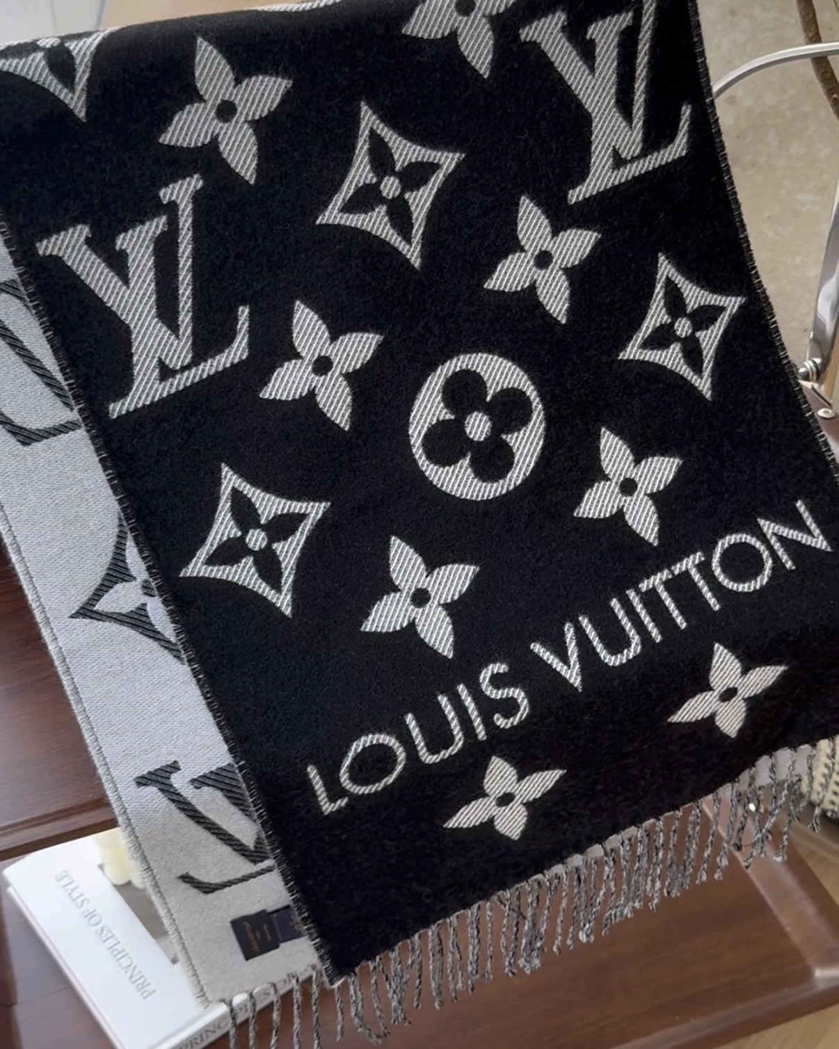 【LV】ESSENTIAL 雙面圍巾 黑灰色 M77853