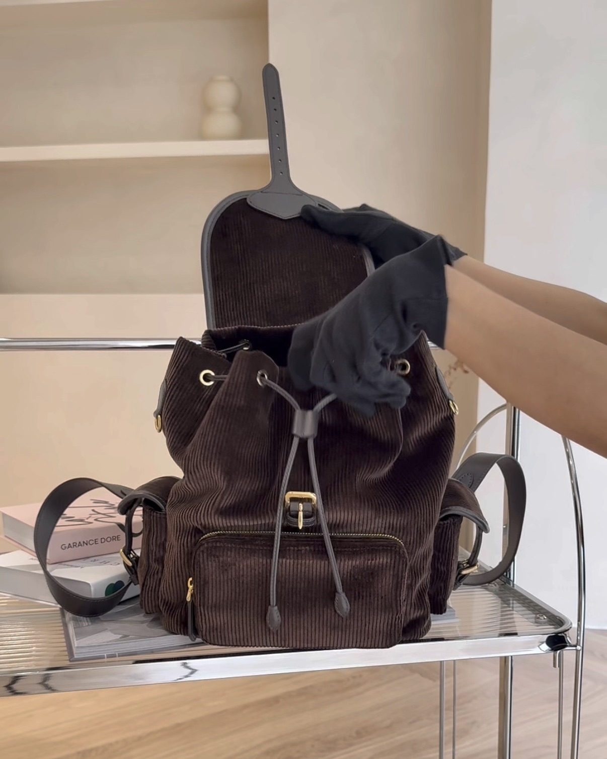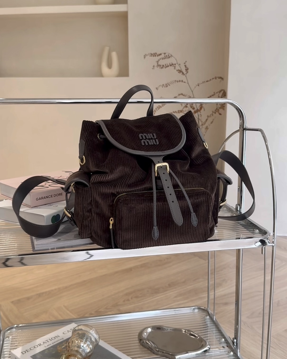 【MIUMIU】燈芯絨背包 大號 黑壇色