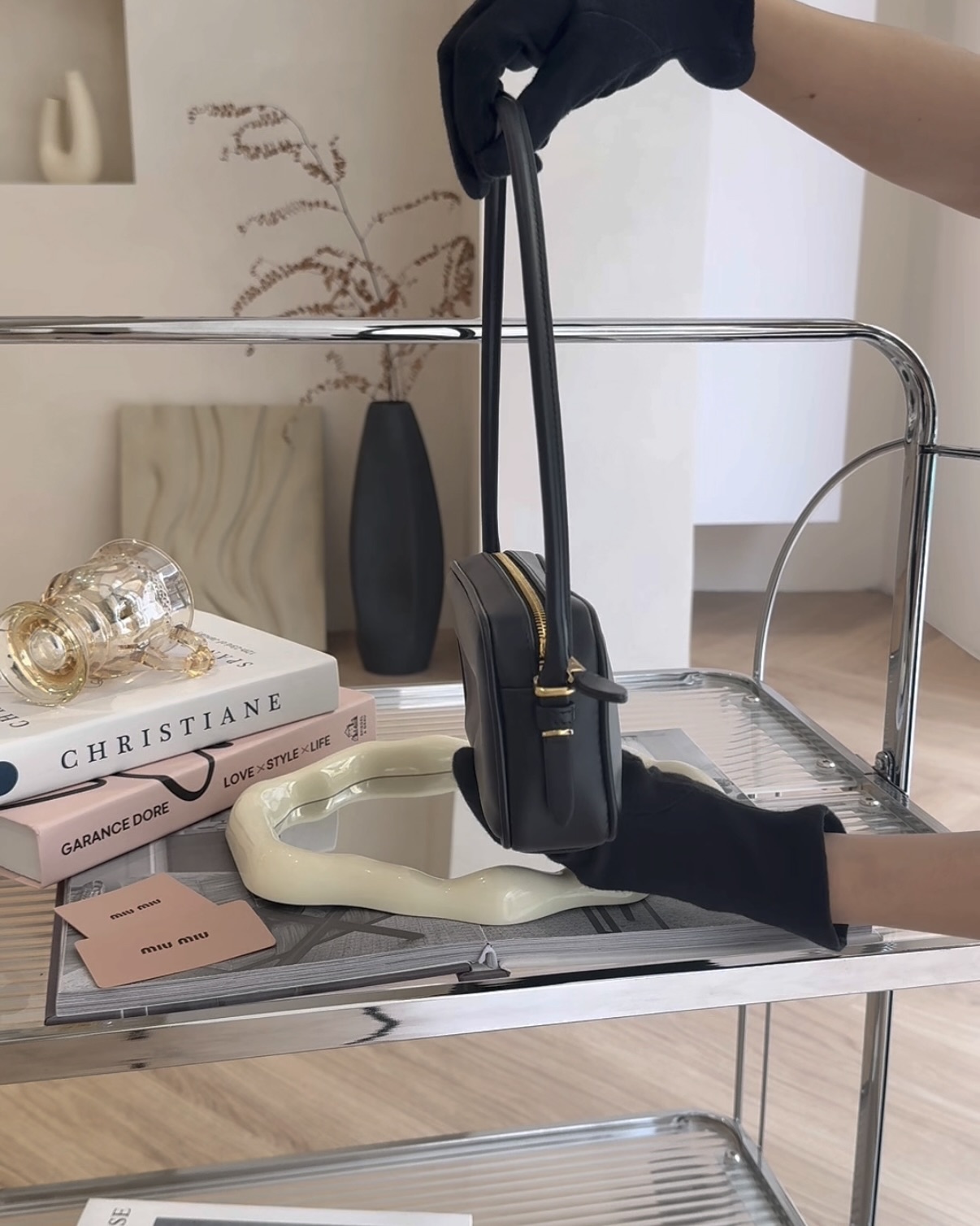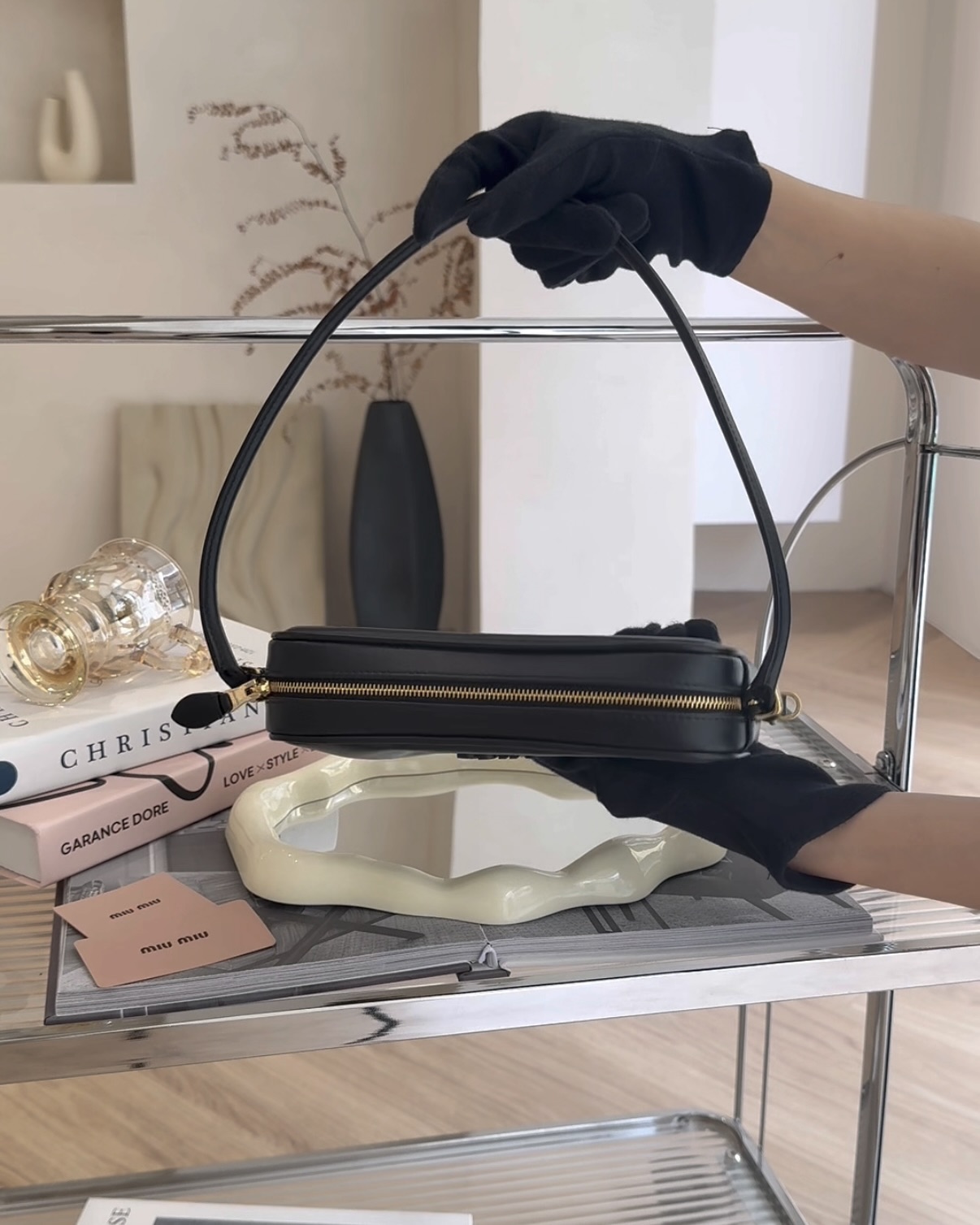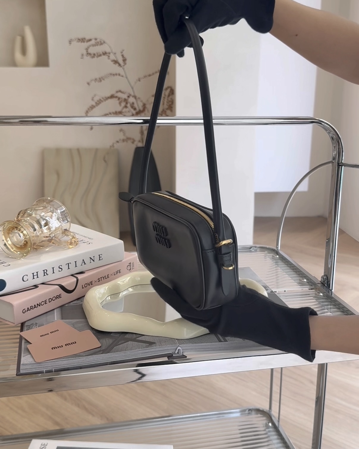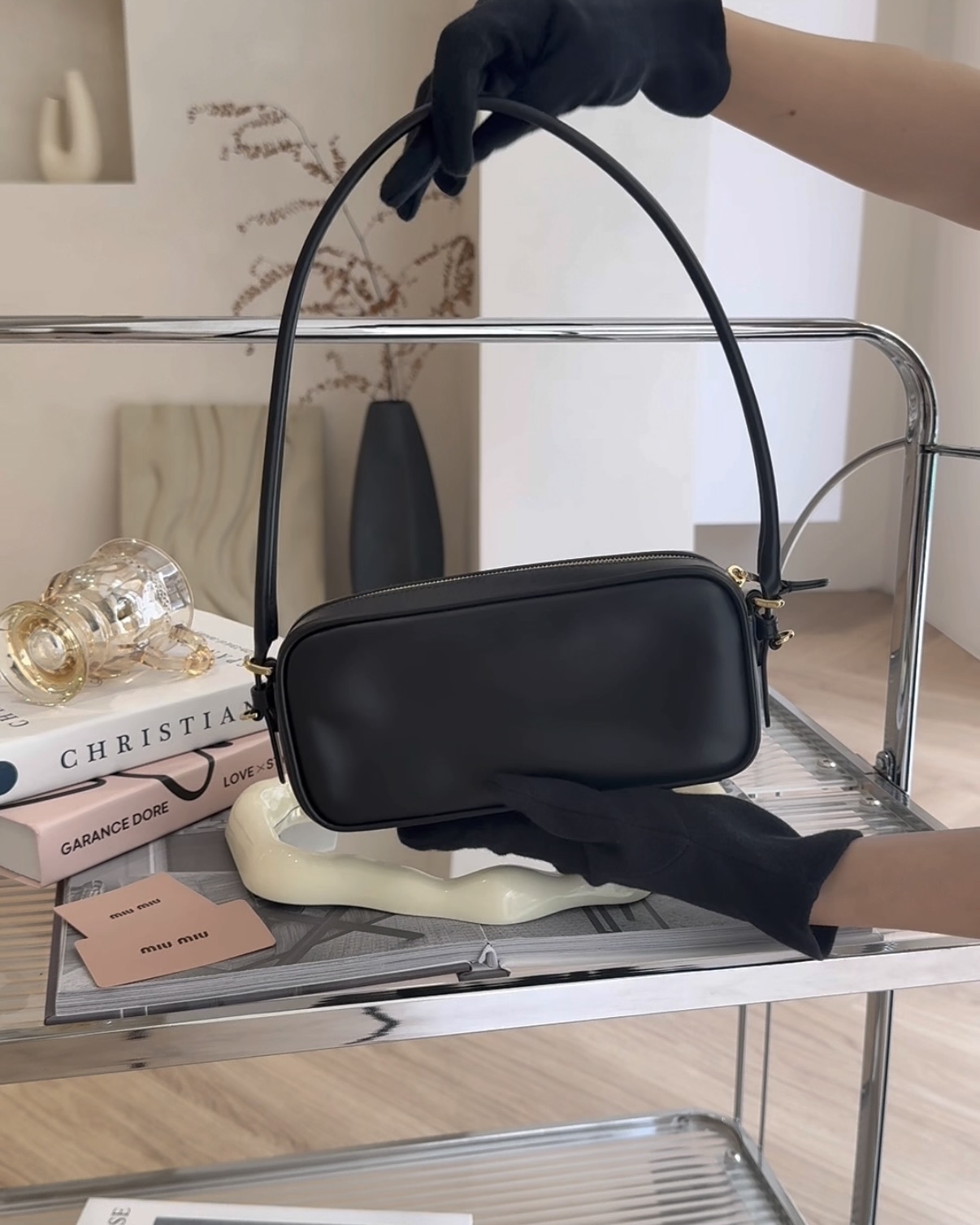 【MIUMIU】皮革腋下包 黑色