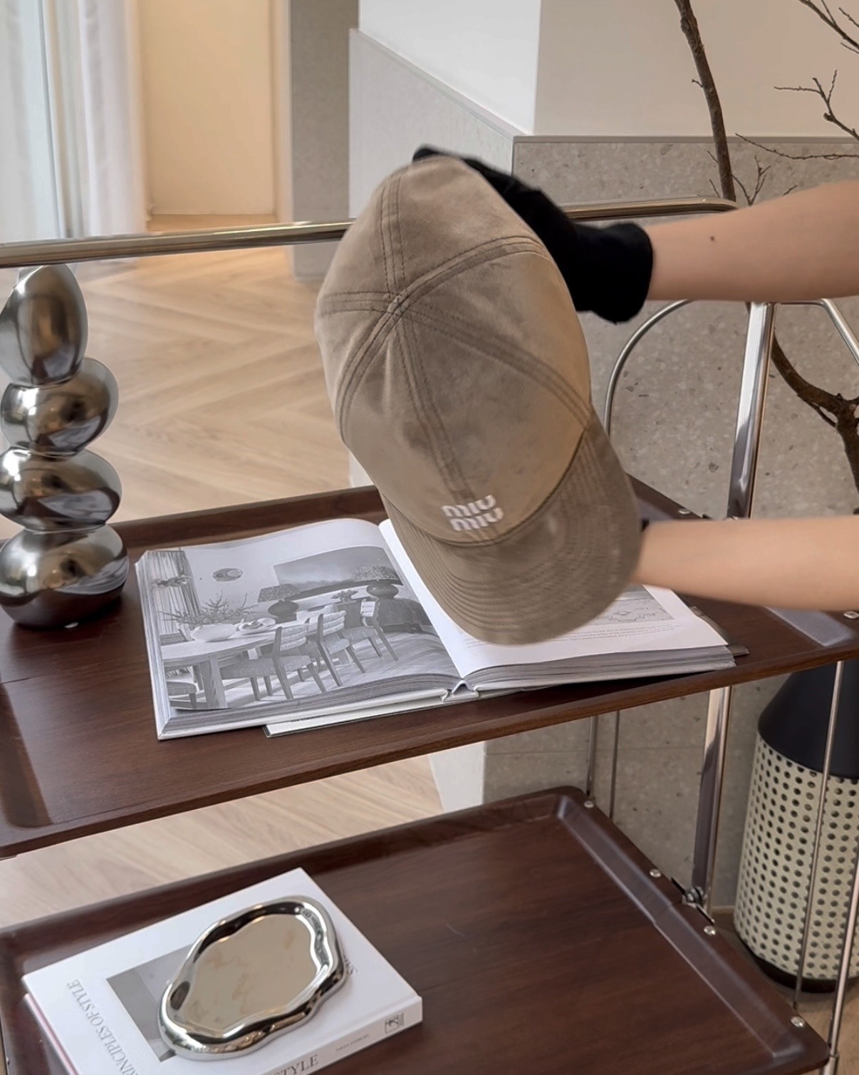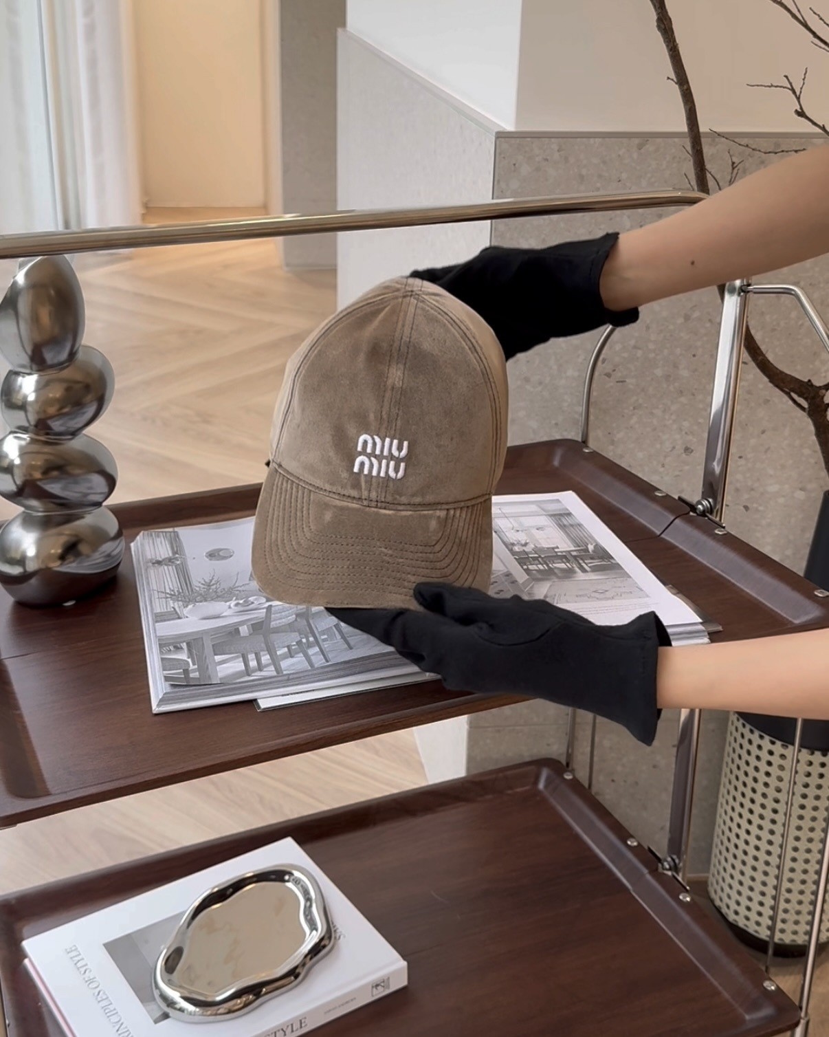 【MIUMIU】繩結棒球帽 淺棕色