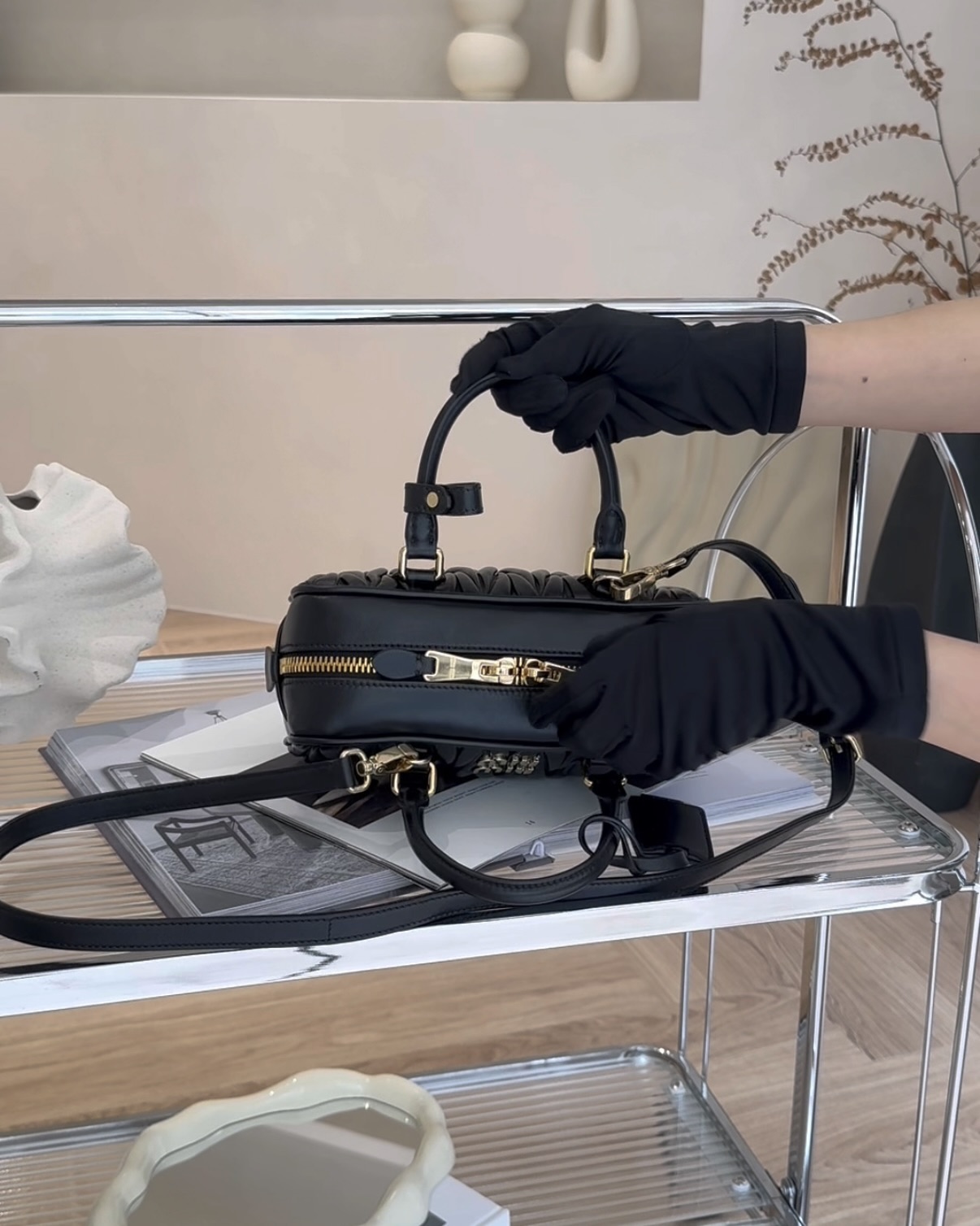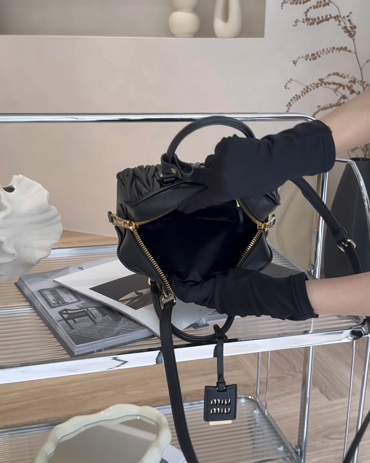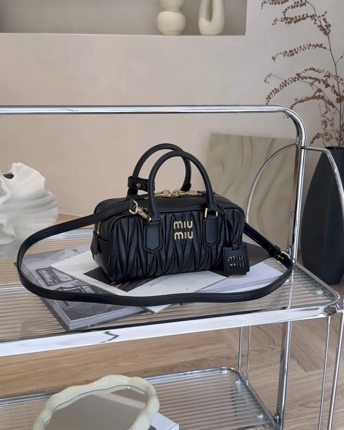 【MIUMIU】ARCADIE 納帕保齡球包 黑色 標準尺寸