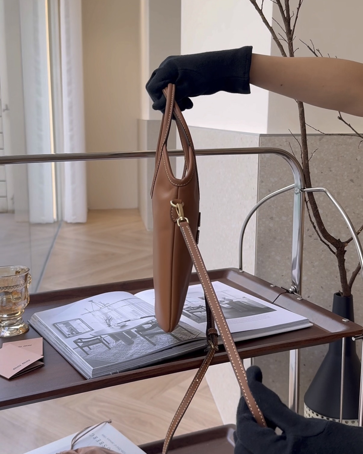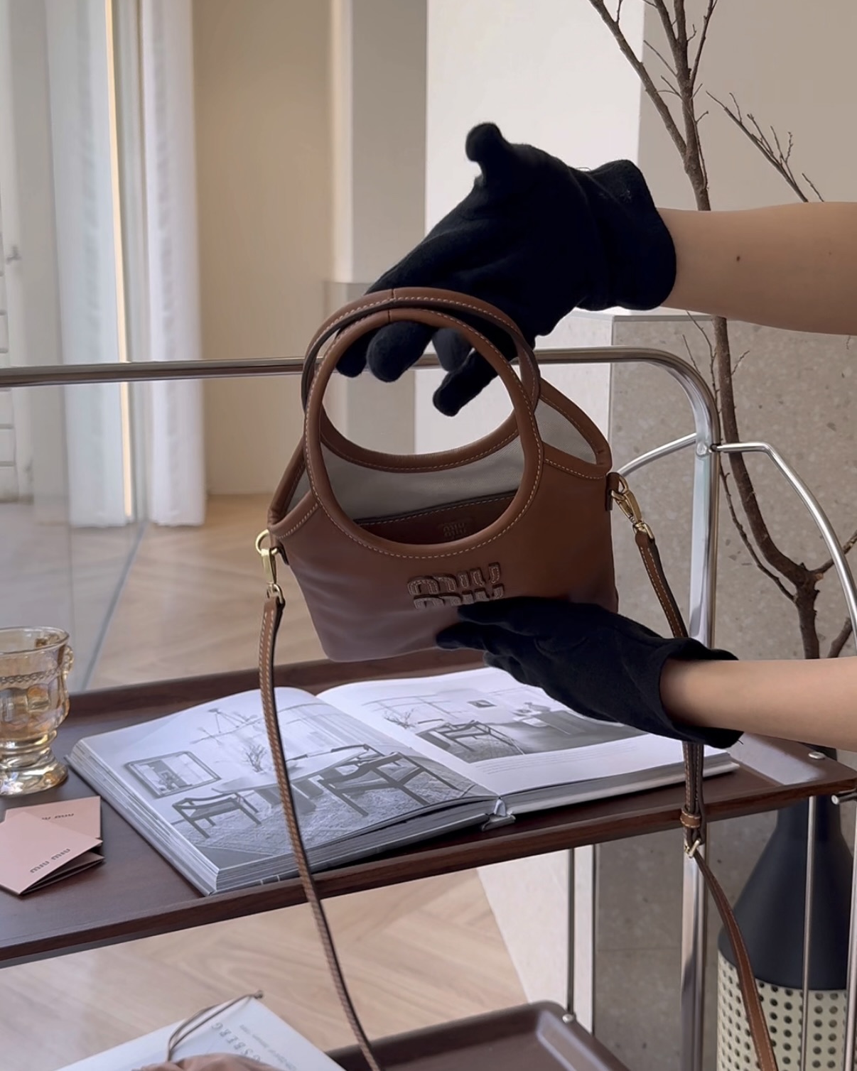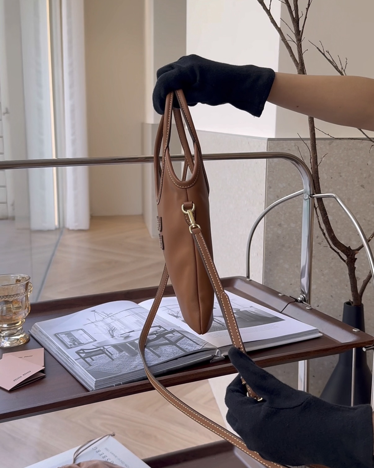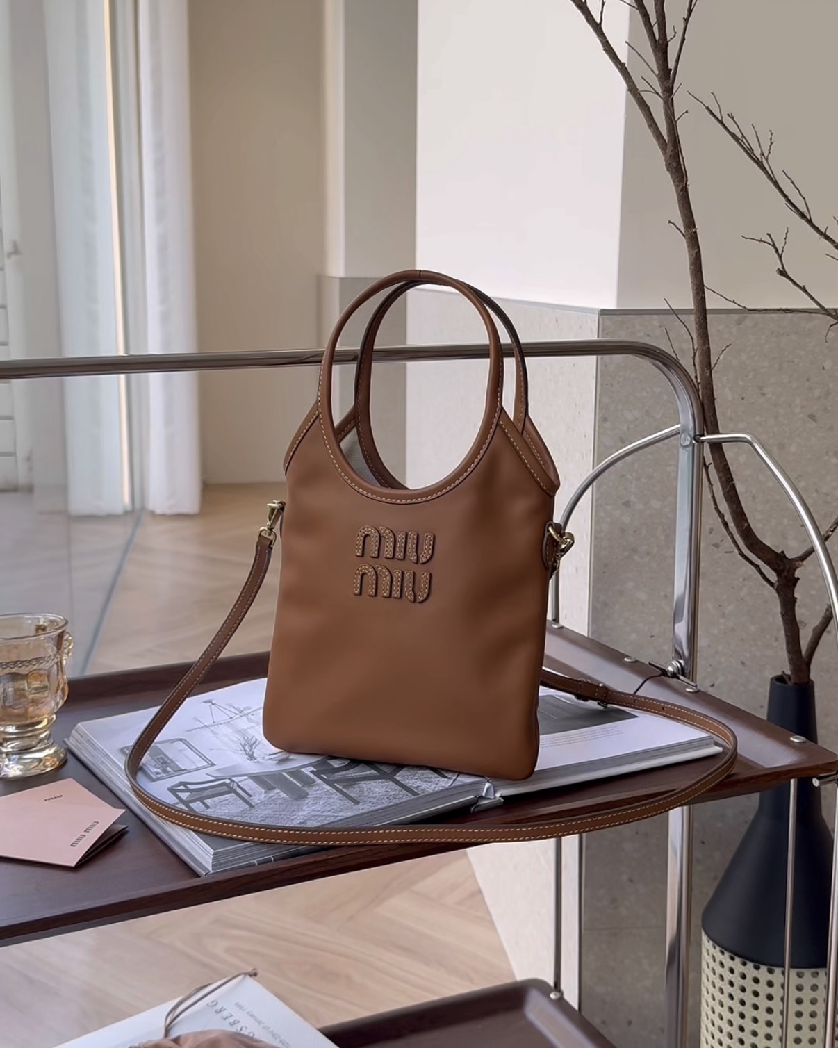 【MIUMIU】IVY 皮革迷你托特包 干邑色