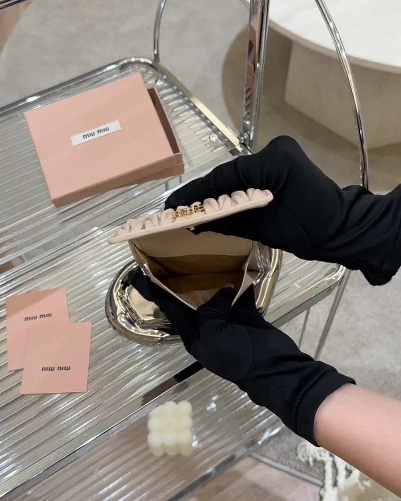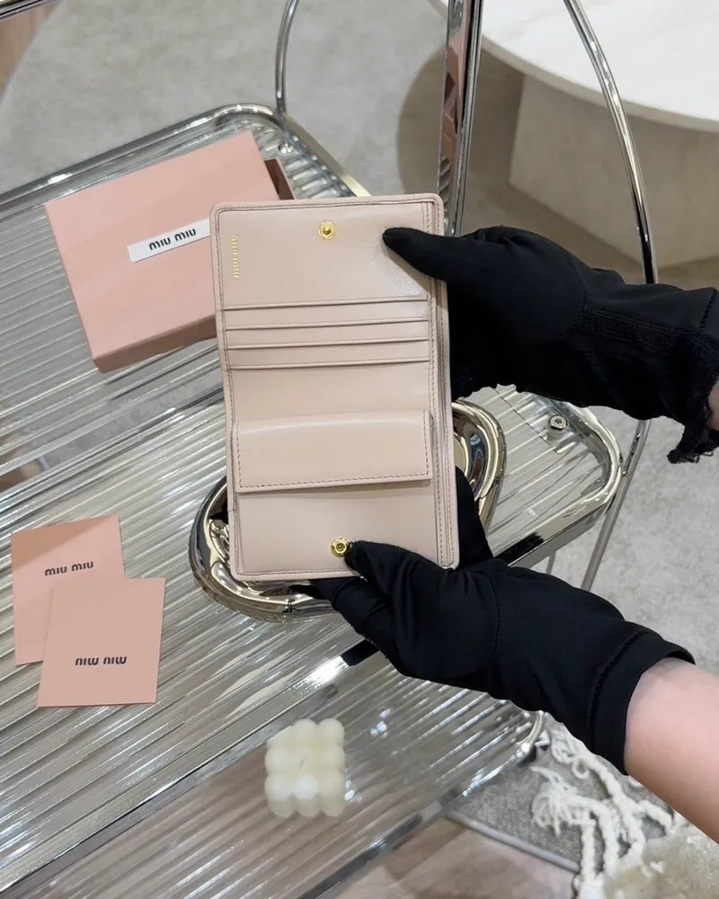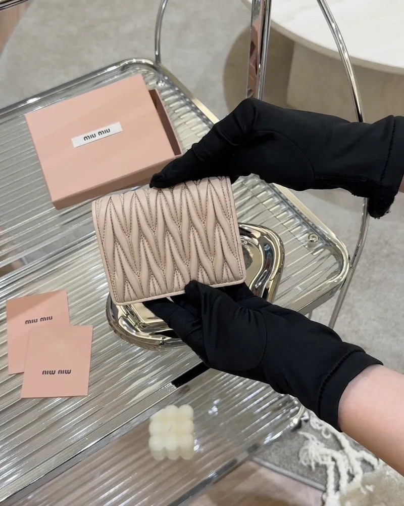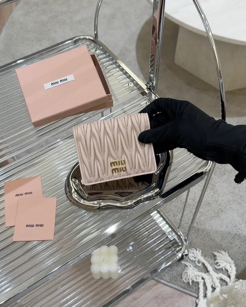 【MIUMIU】MATELASSE 納帕對開短夾 粉紅色