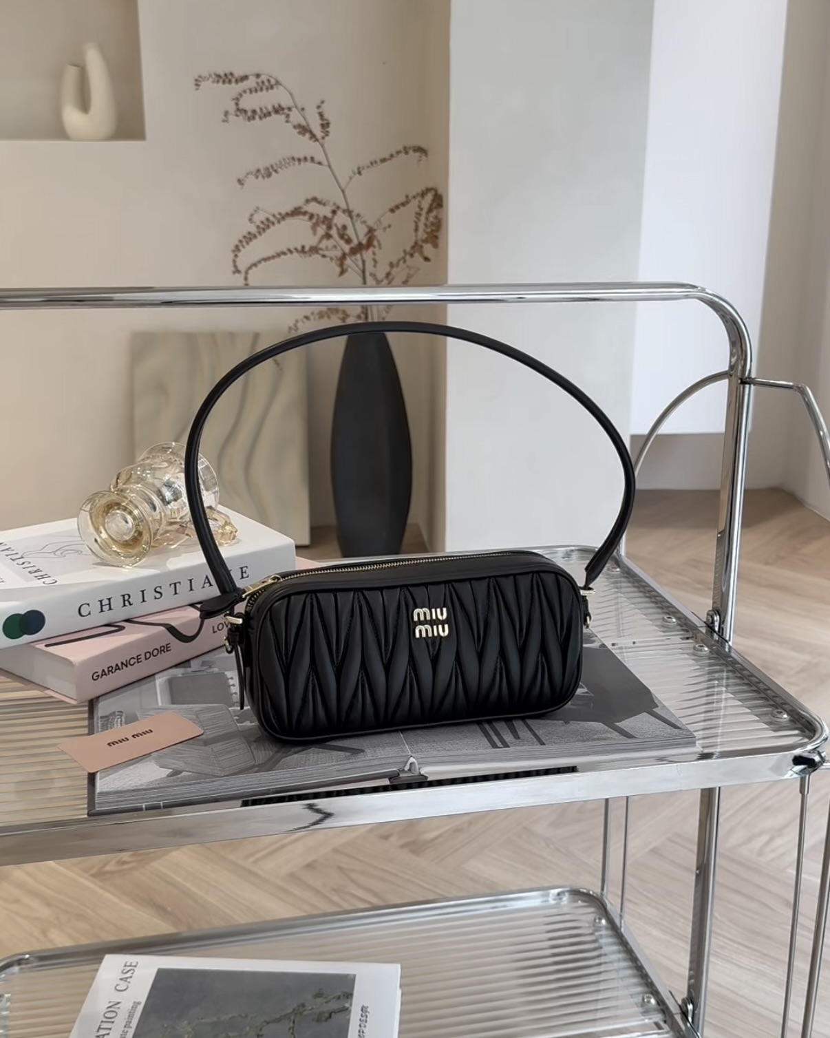 【MIUMIU】MATELASSE 麻將腋下包 黑色