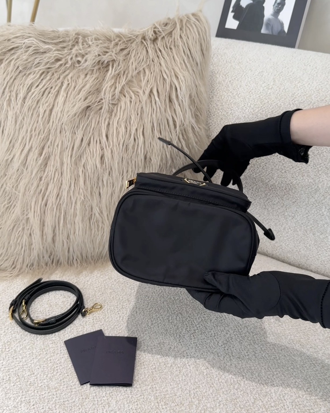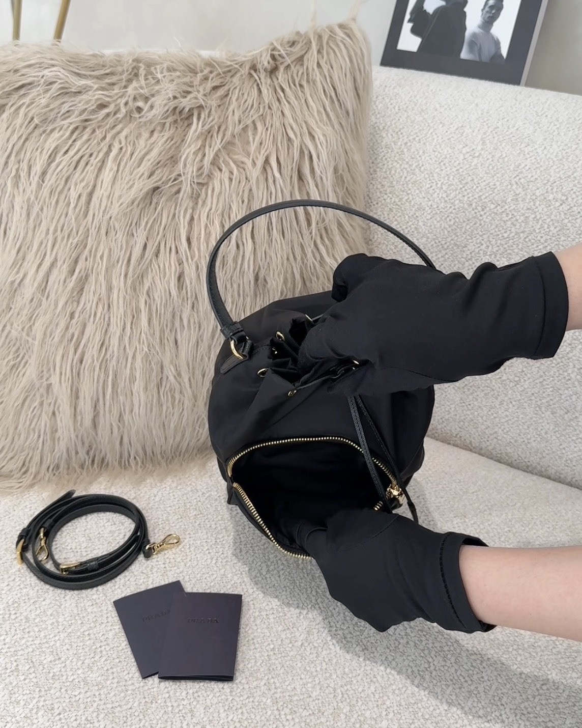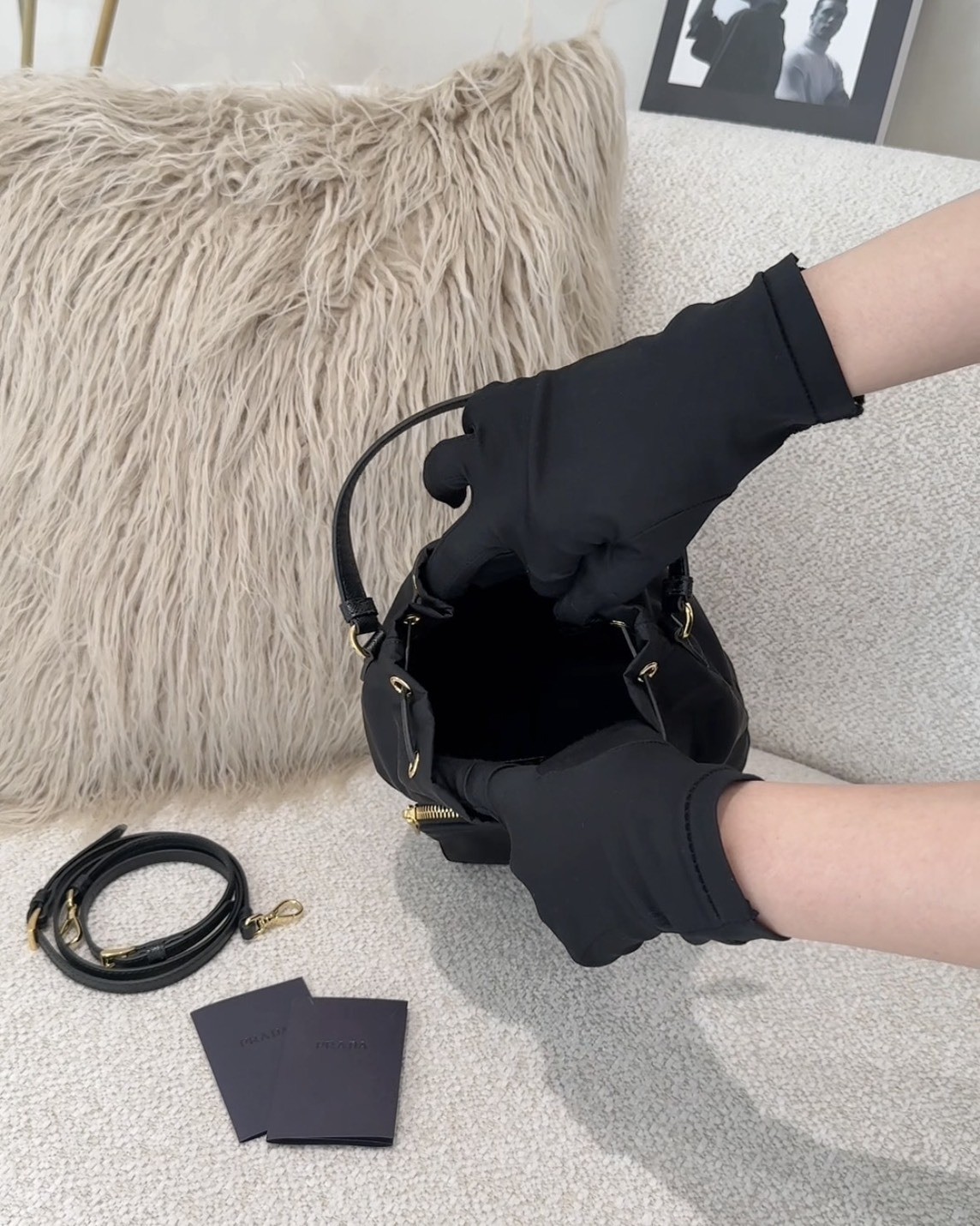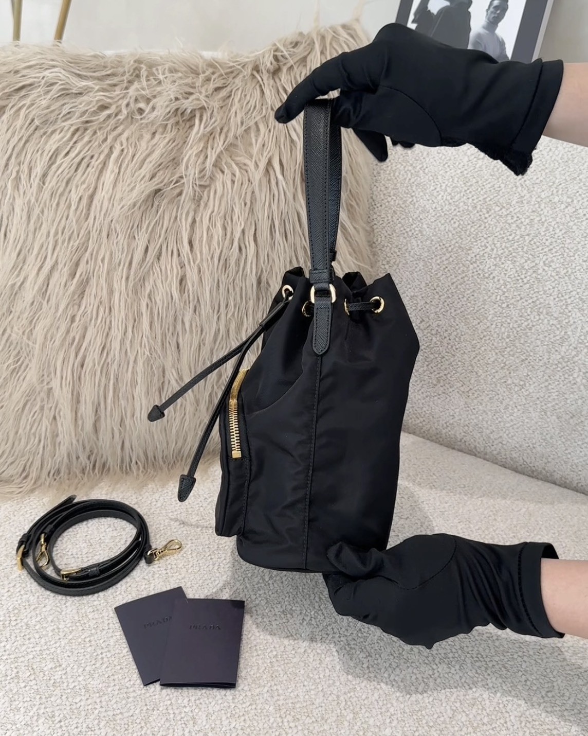 【PRADA】DUET 尼龍抽繩水桶包 黑色