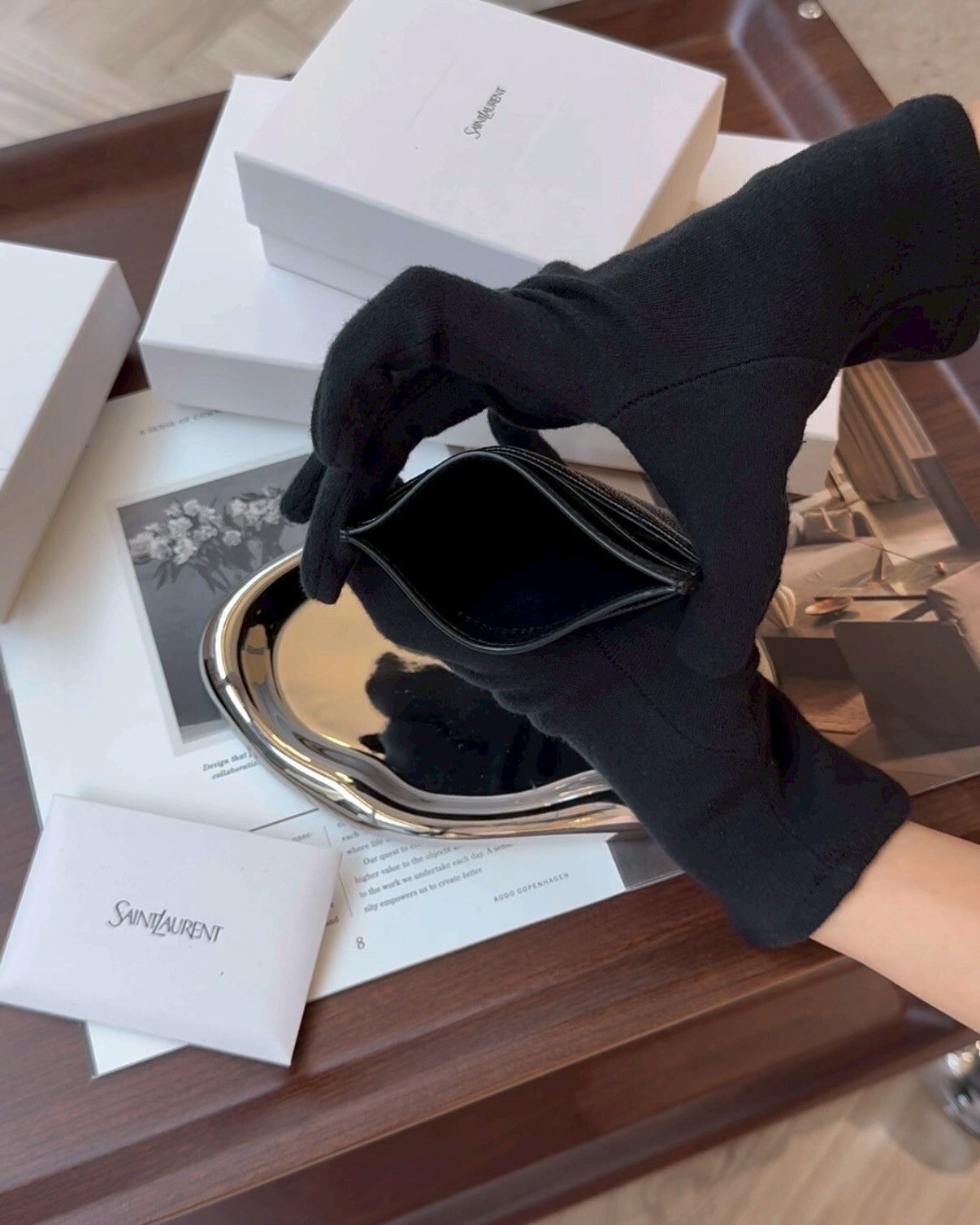 【YSL】經典魚子醬LOGO粒面卡夾 全黑