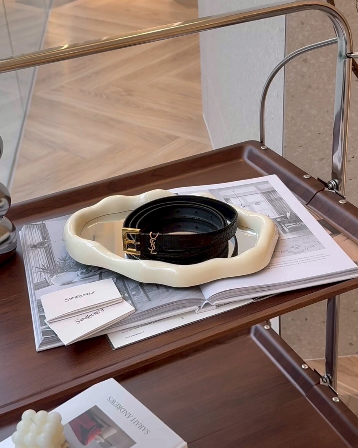 【YSL】鱷魚紋皮帶 寬2CM 黑金