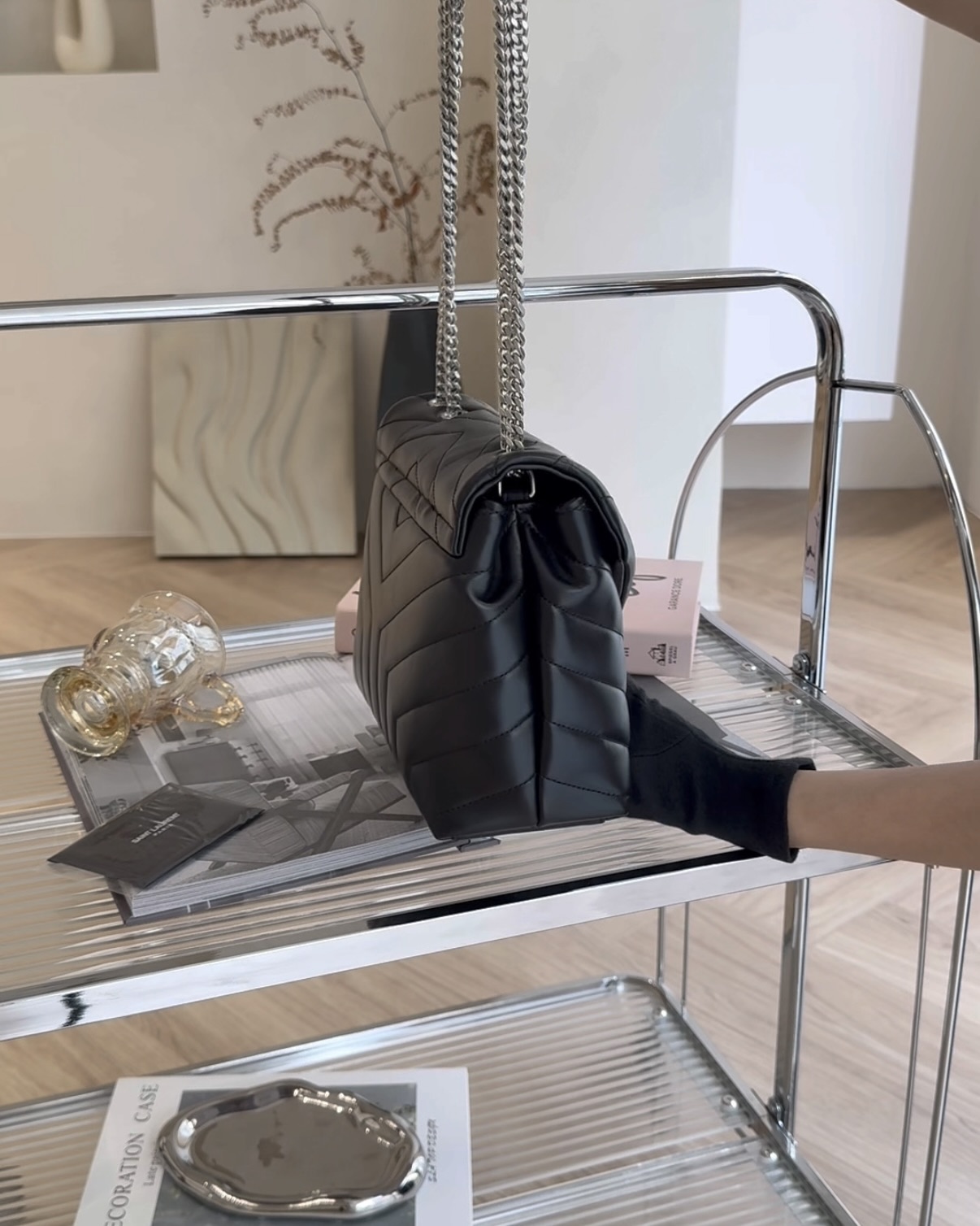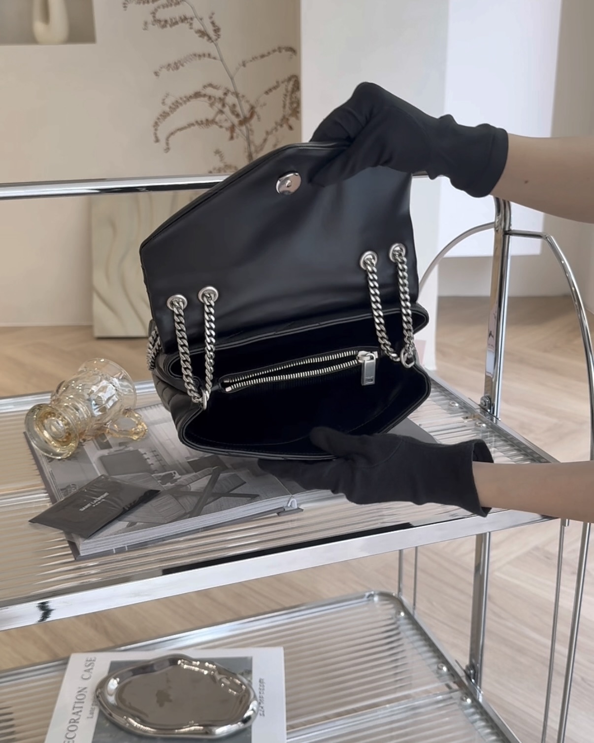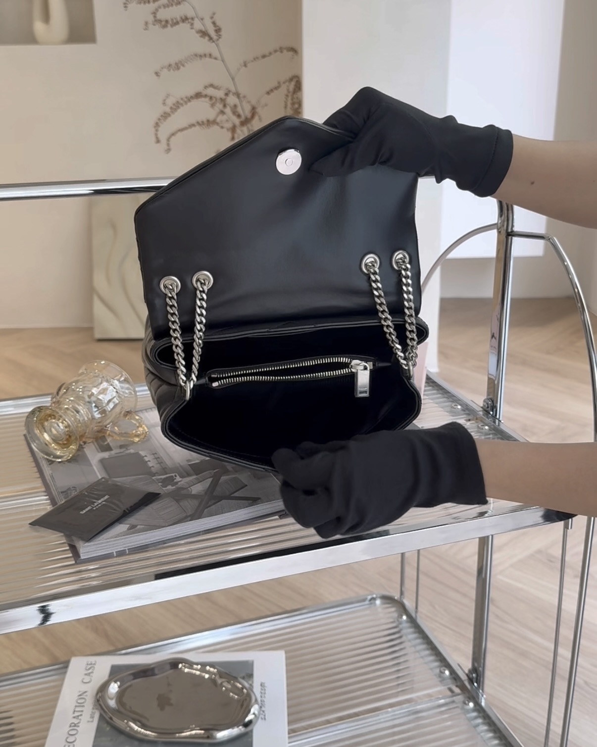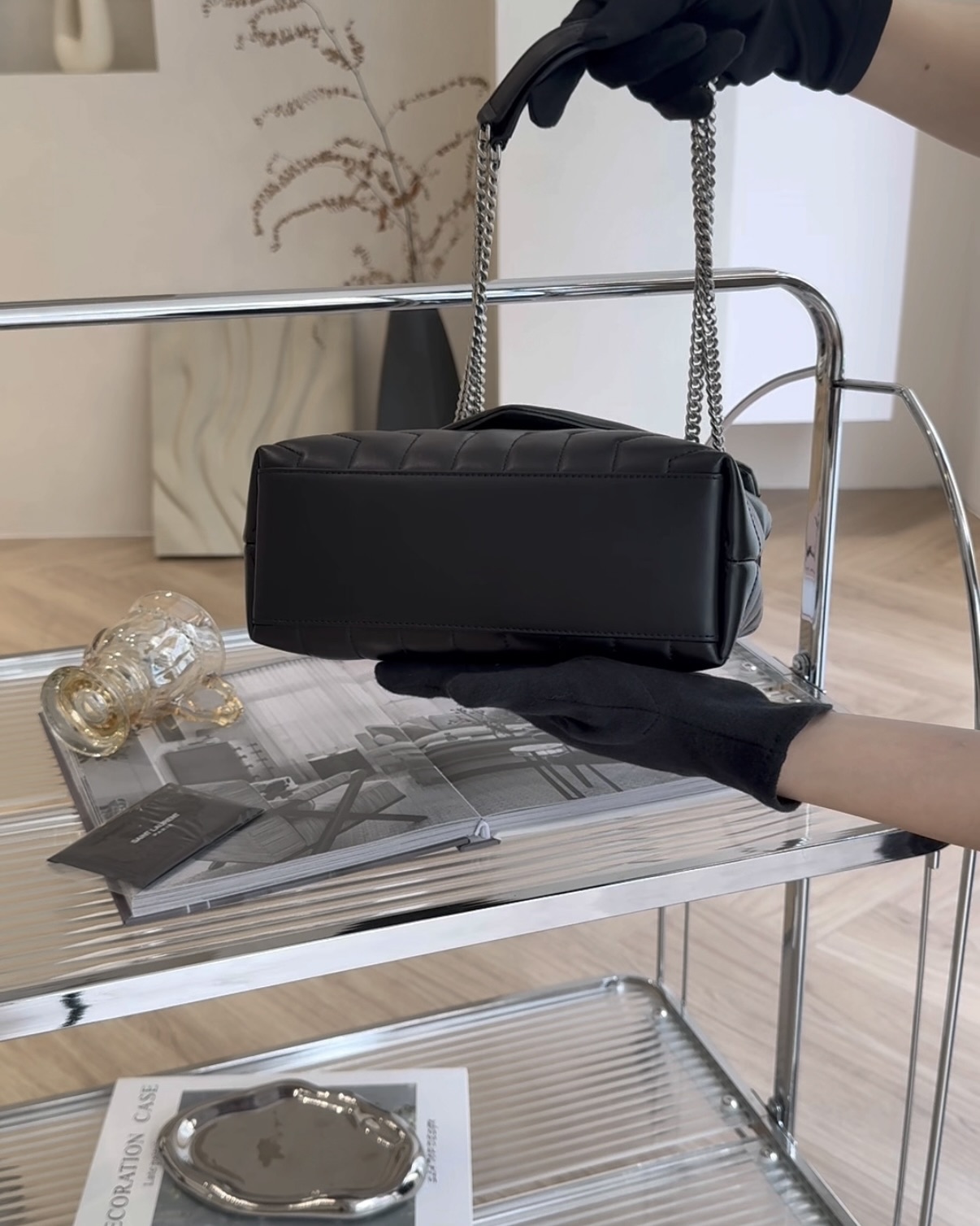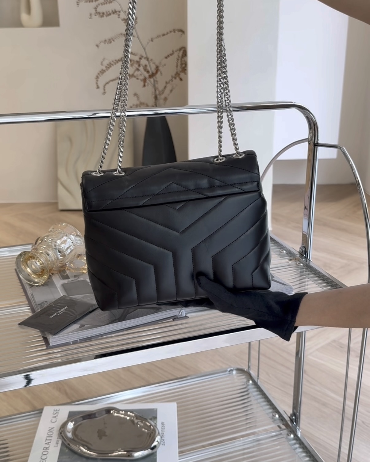 【YSL】LOULOU 方胖 小號 黑銀