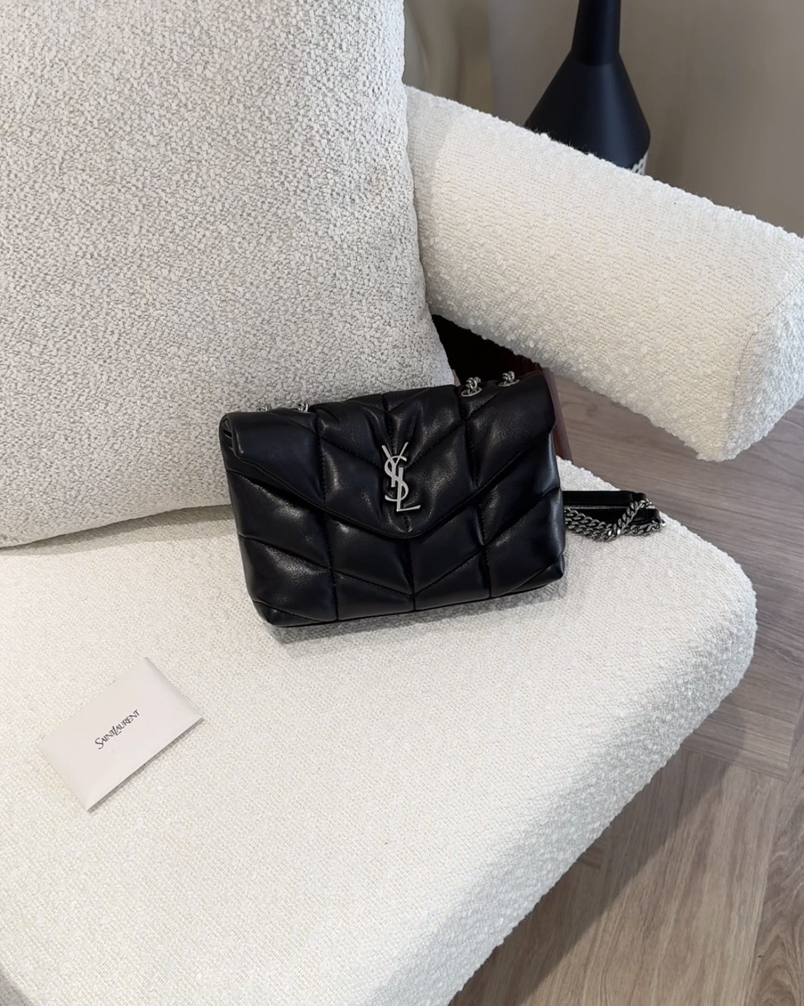 【YSL】PUFFER 迷你鏈條包 黑銀