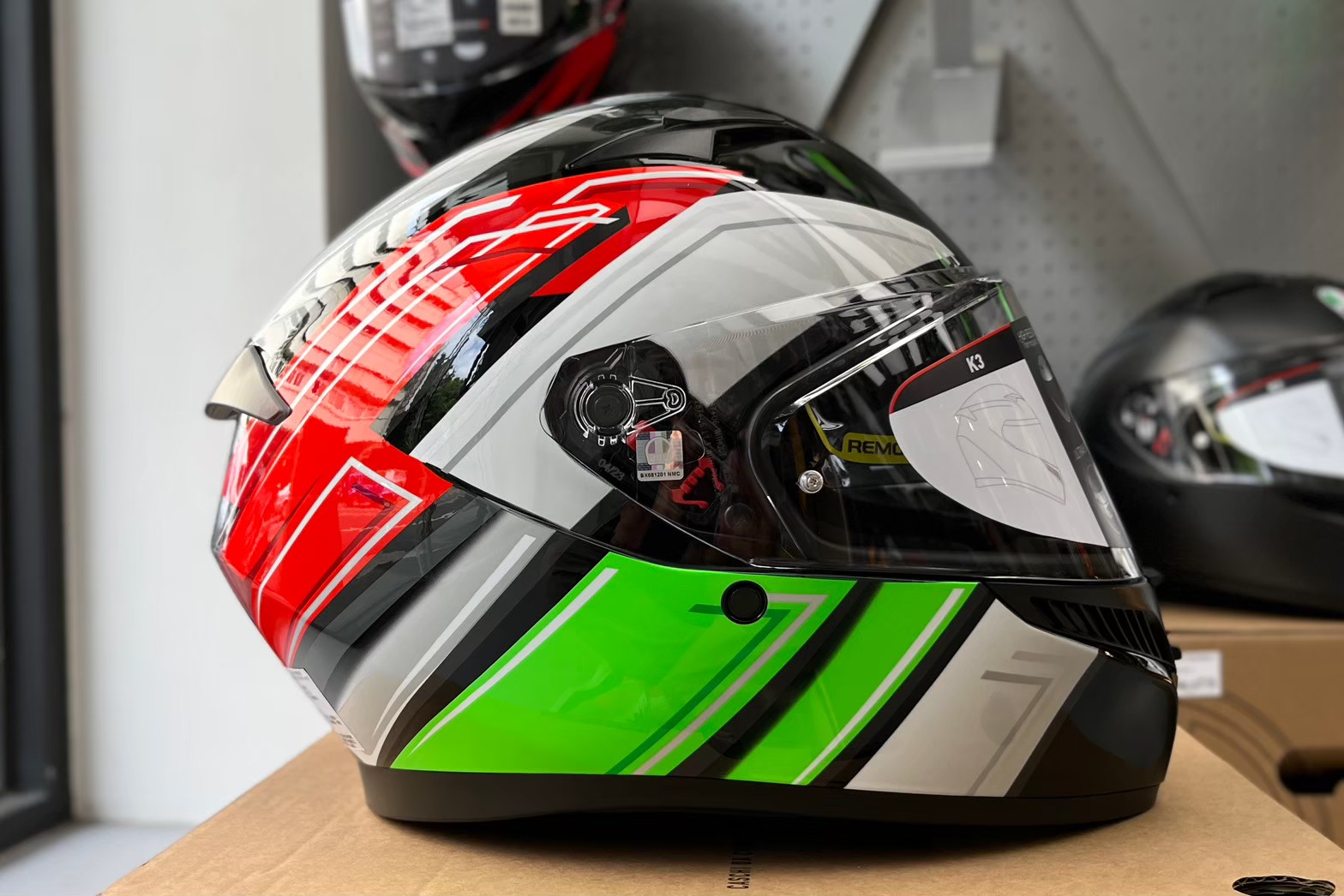 。簡約線條設計減少風阻,經過空洞力學測試,時速達到130KM時感受不到安全帽重量,鴨尾可提昇高速穩定性