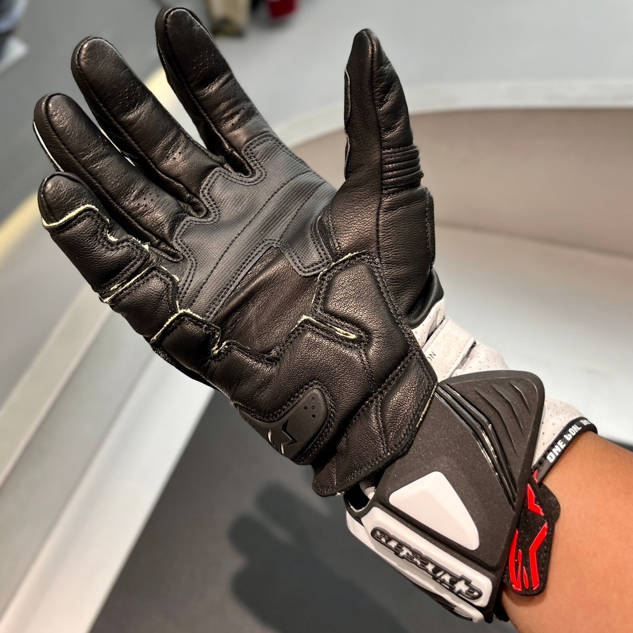·使用各種皮革混製而成:手背處使用牛皮及山羊皮,手掌及手指處則使用袋鼠皮。結合了柔軟、舒適、防護性佳等特點,帶給這雙手套出眾的表現。