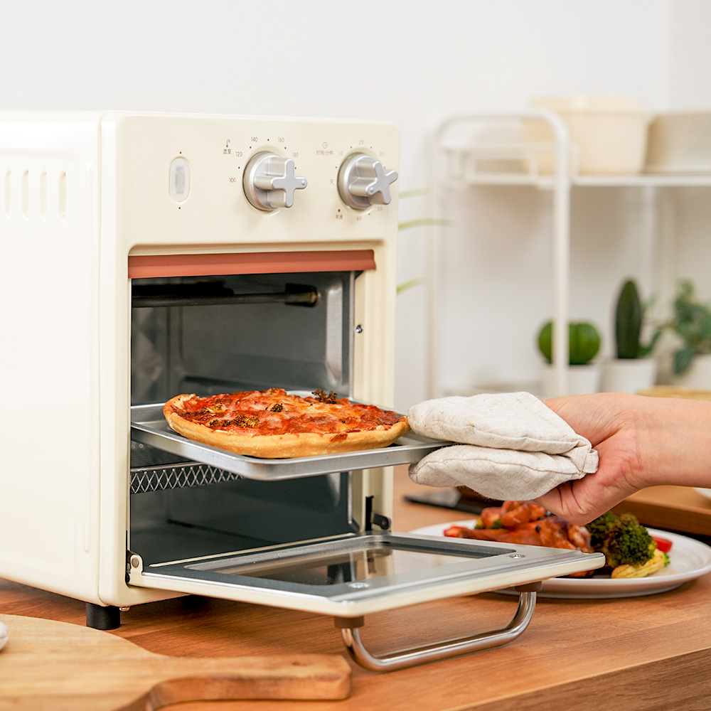 專為 小家庭 / 租屋族 / 單身貴族 設計,屋內空間再小,也能美味上桌! 。3D全方位無油氣炸:360°強勁熱風循環,少油、口感酥脆多汁 。8.5L大容量雙層同烤:烤盤、炸籃可同時料理烘烤 。透明玻璃視窗:隨時觀察烹調狀況 。溫控 / 定時 直觀設計