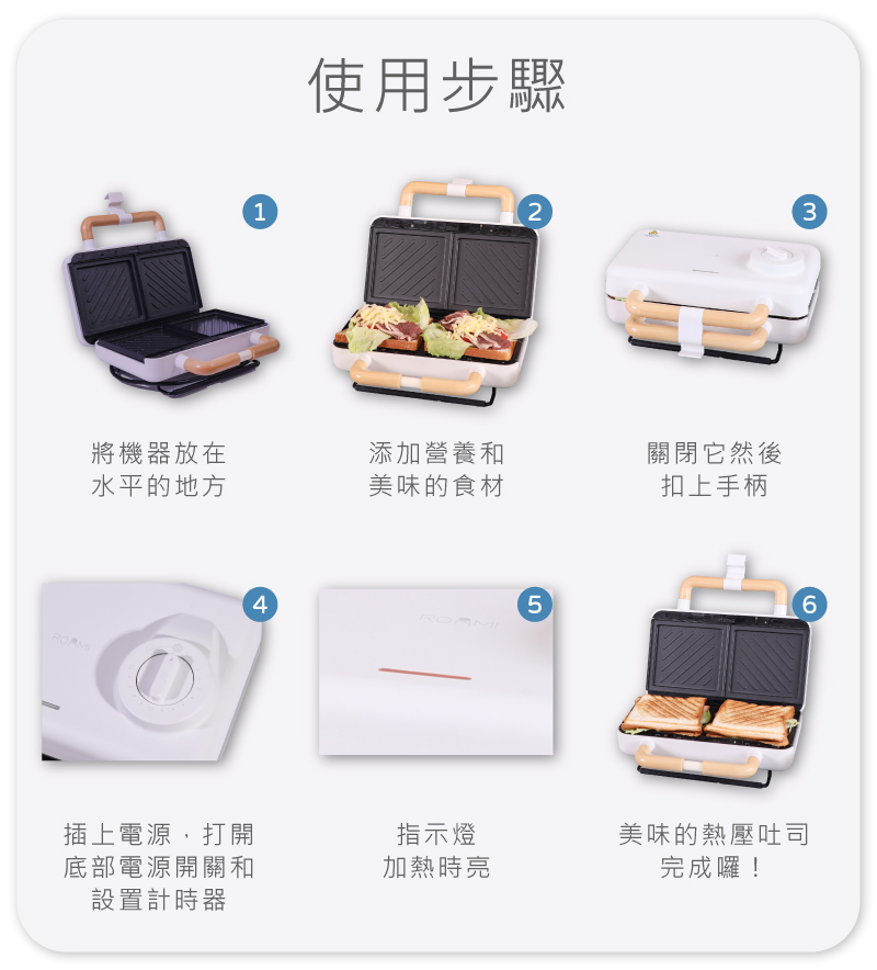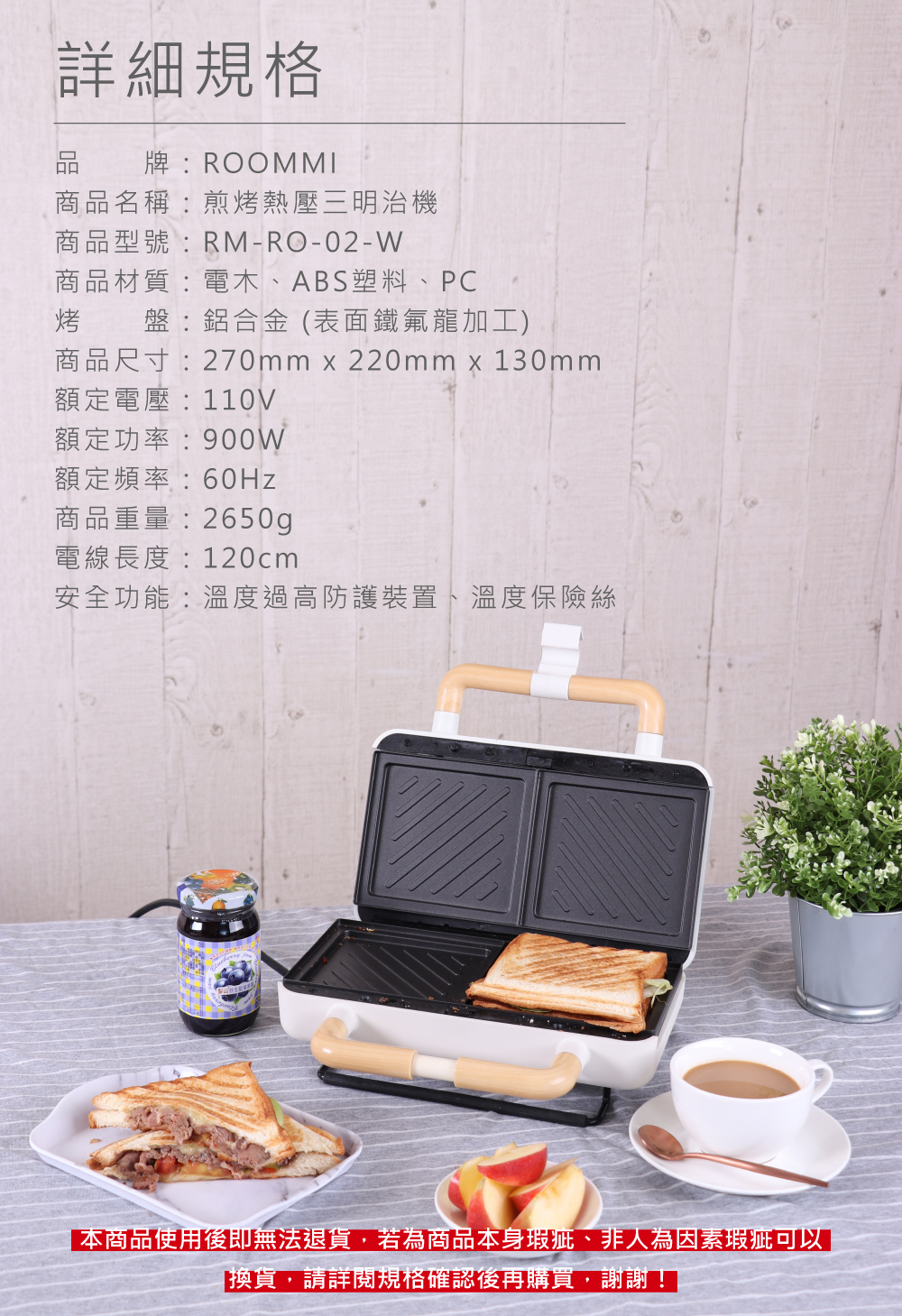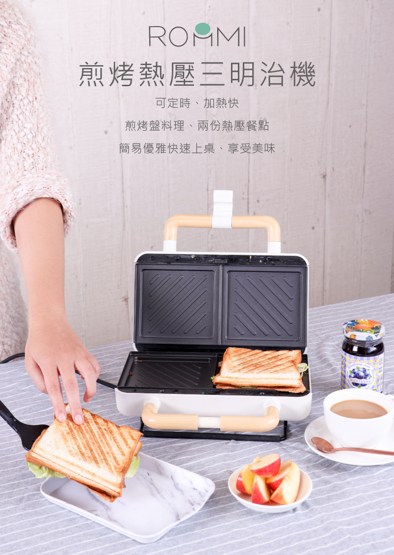 【ROOMMI】煎烤熱壓三明治機|熱壓三明治、煎烤料理一機多用
