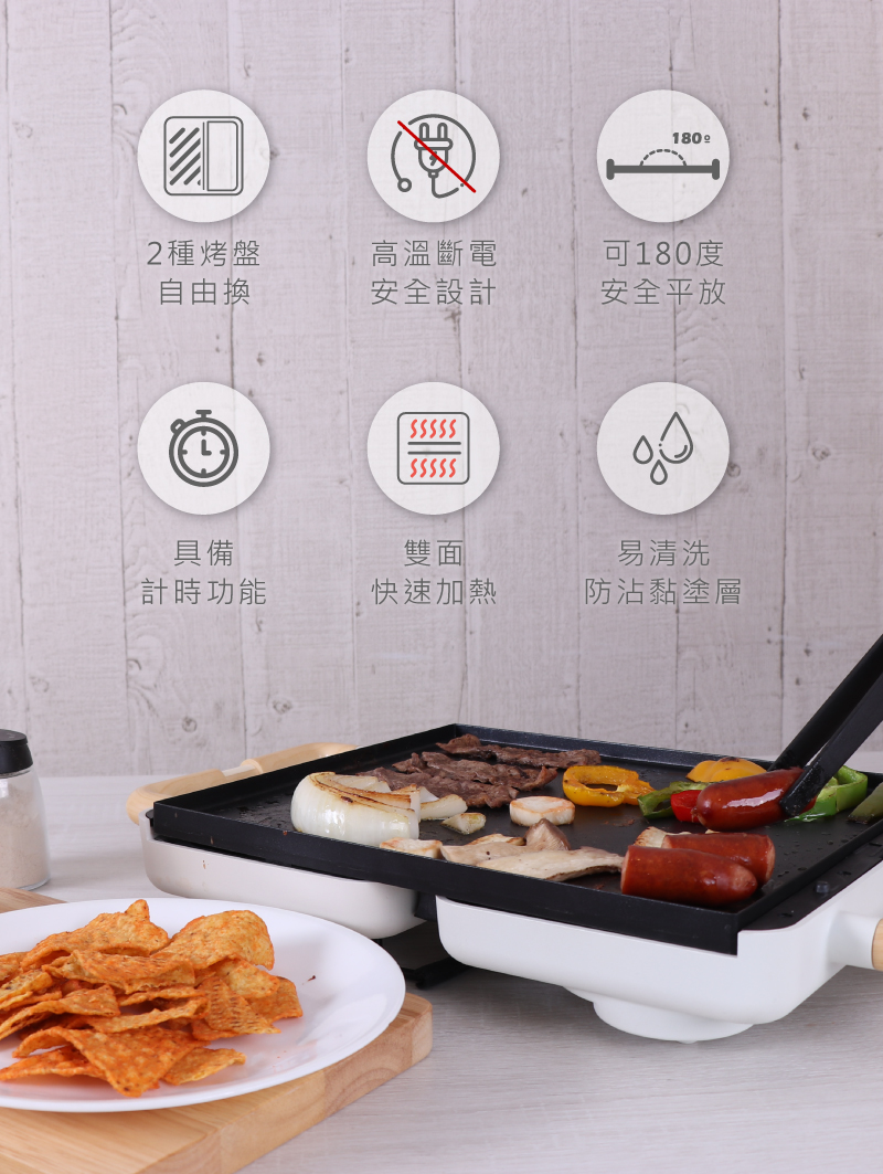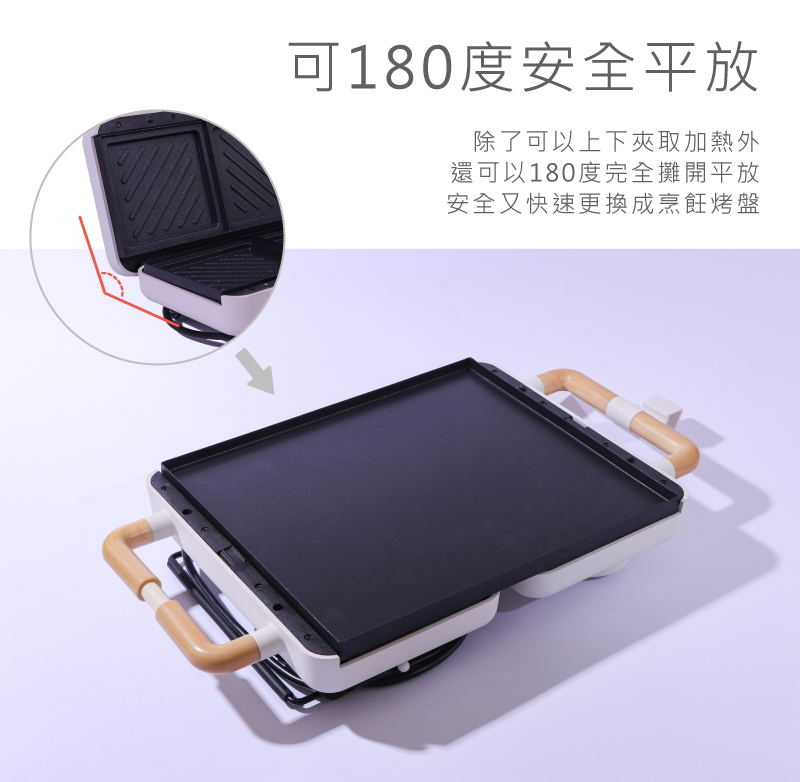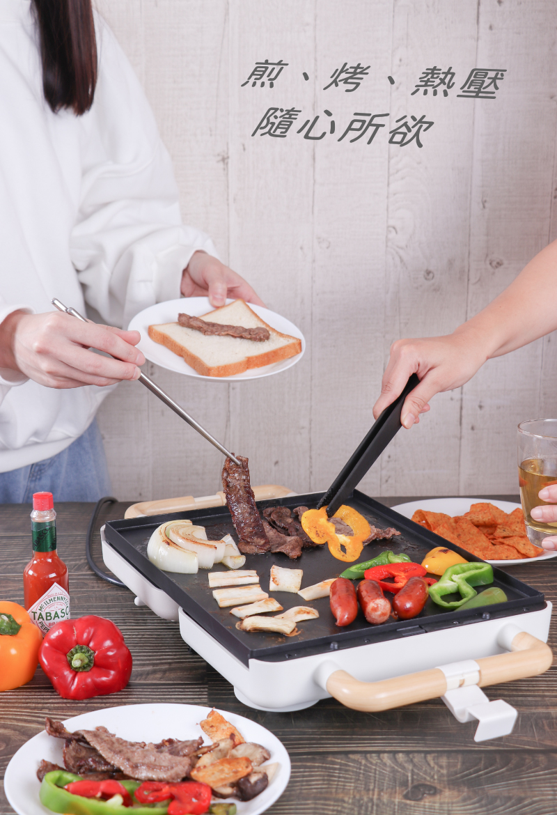 Roommi煎烤熱壓三明治機,讓熱壓吐司機再升級!除了可一次完成兩份餐點之外,還加入了定時、與大烤盤的功能。攤開三明治機,馬上變成電烤盤,中秋的烤肉派對、點心小鬆餅、早餐、煎烤料理⋯用它也可輕鬆完成。