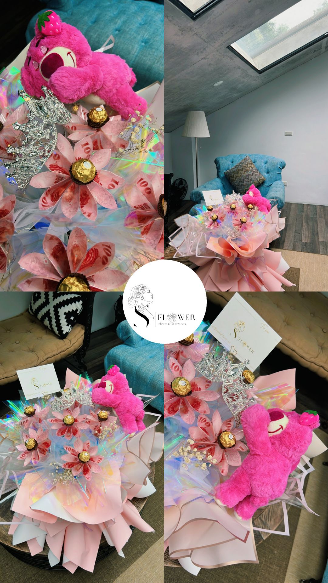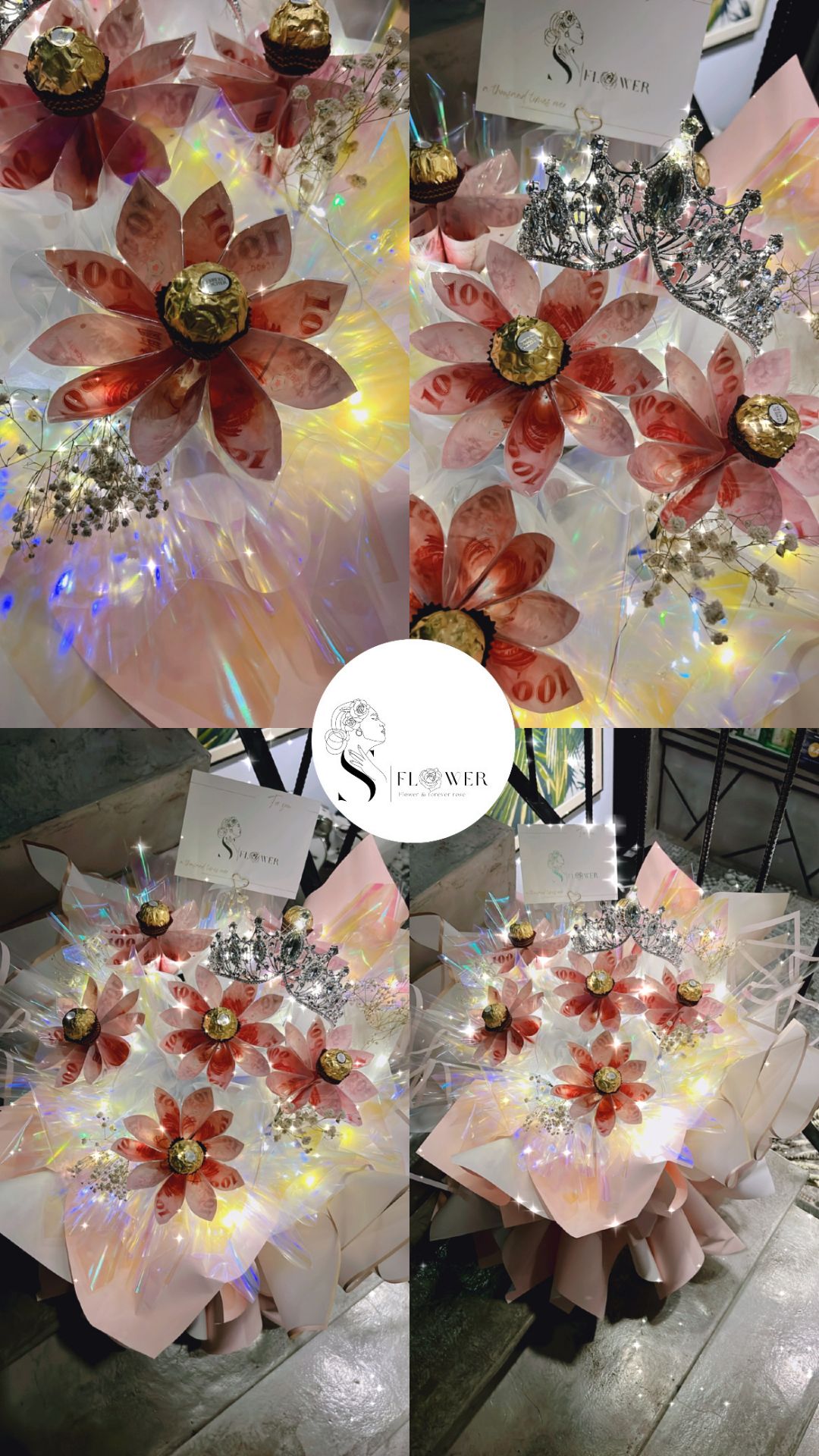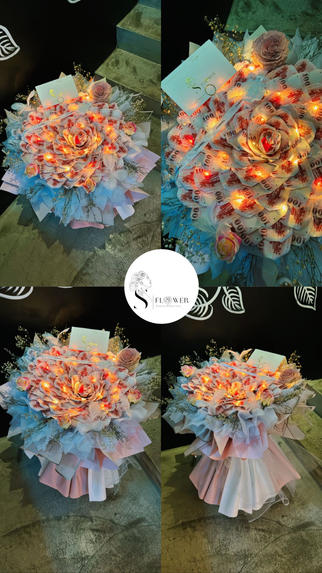 5.其中有錢花款式,需自行攜帶3600的百鈔現金製作,因為真鈔跟假鈔的回彈力不同,所以需要攜帶真鈔,其他的款式皆用假鈔製作