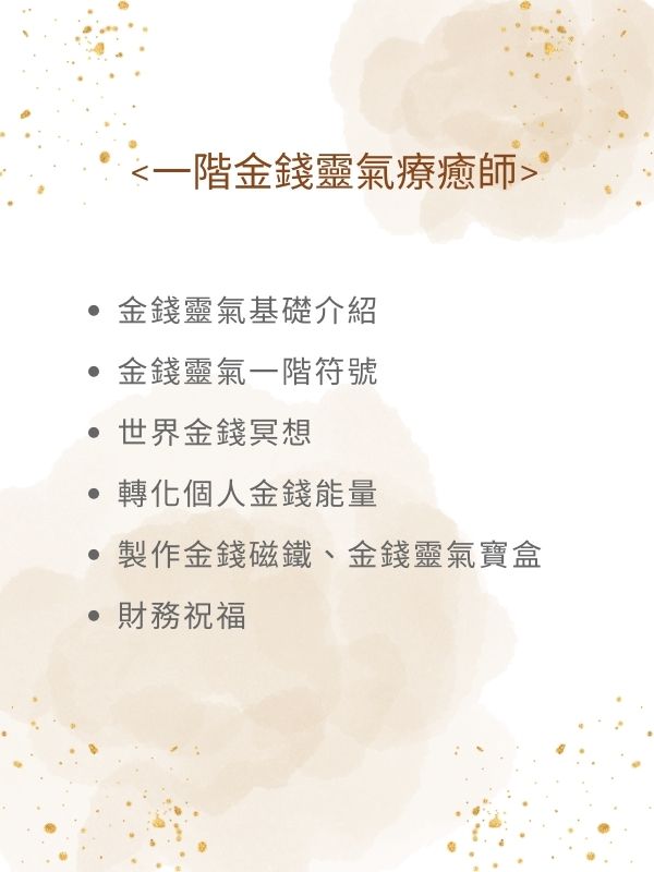 這門課不需要任何基礎,沒有學過任何靈氣或是身心靈療癒課程,都可以來學習金錢靈氣。