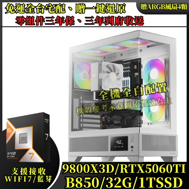 【R7-9800X3D】M1白魂戰鬥電競機 (9800X3D/B850 /32G/1T/RTX5060TI)